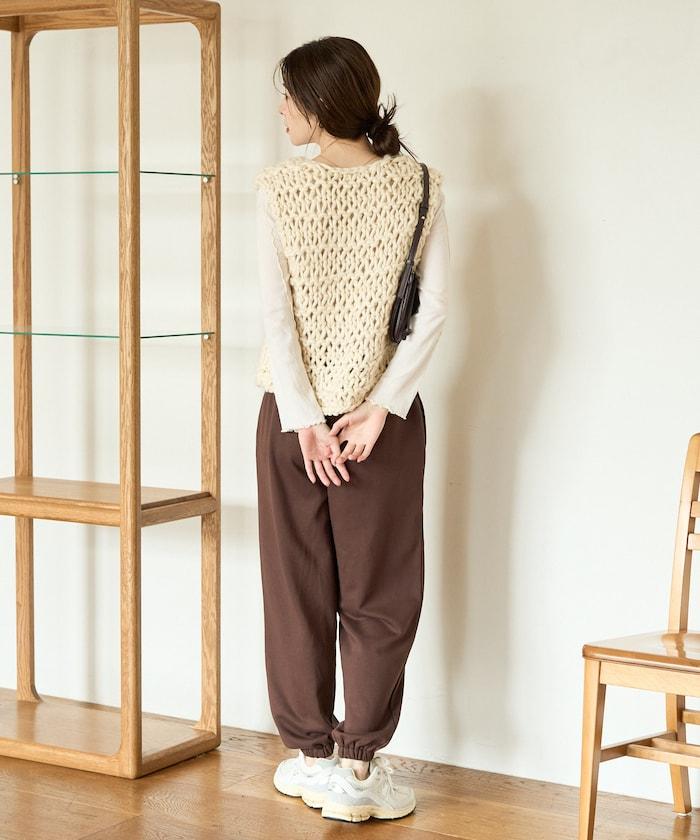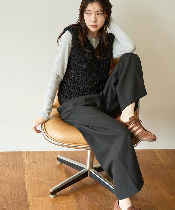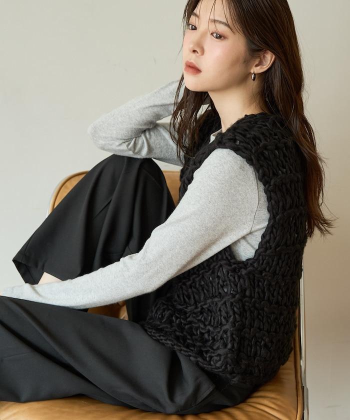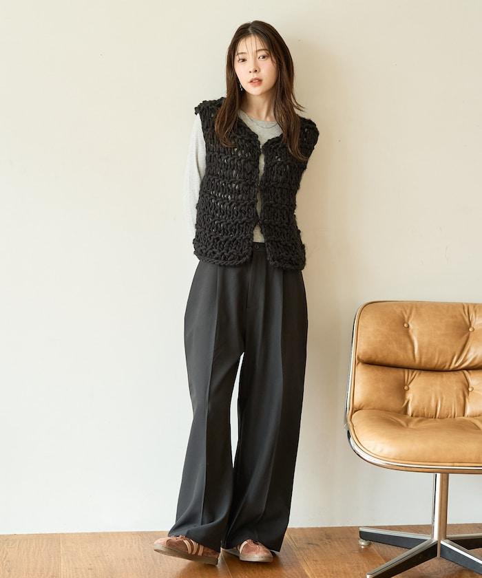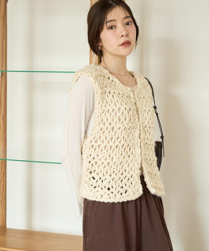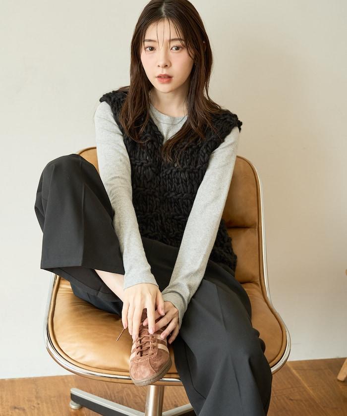 蓬鬆的針織讓馬甲充滿了韓式風情。