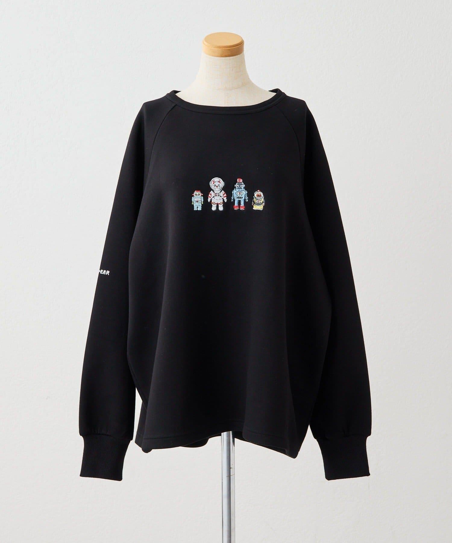 黑色款胸前有一隻貓和一個機器人玩具,右臂上繡有 sampo×ear 徽標。