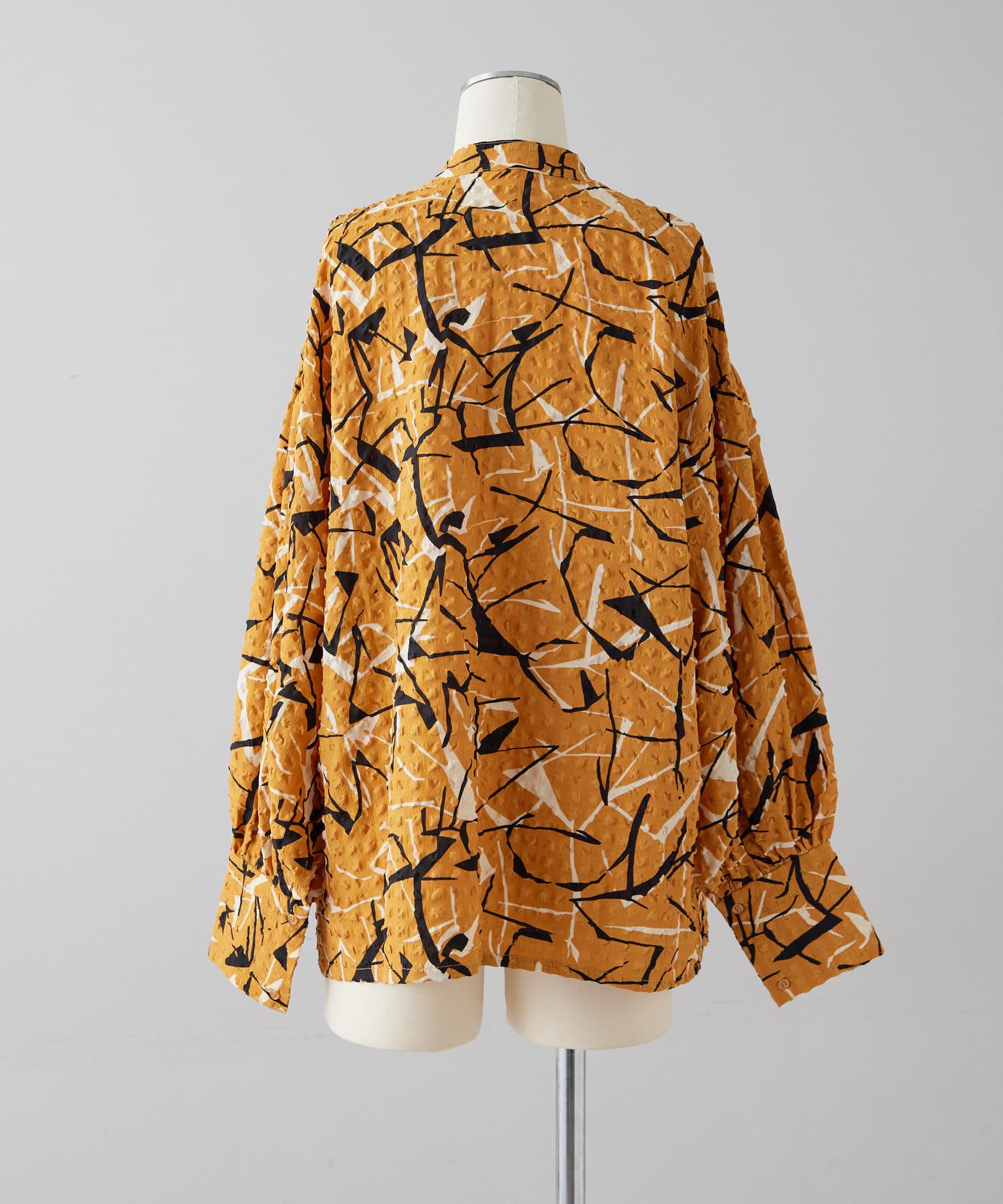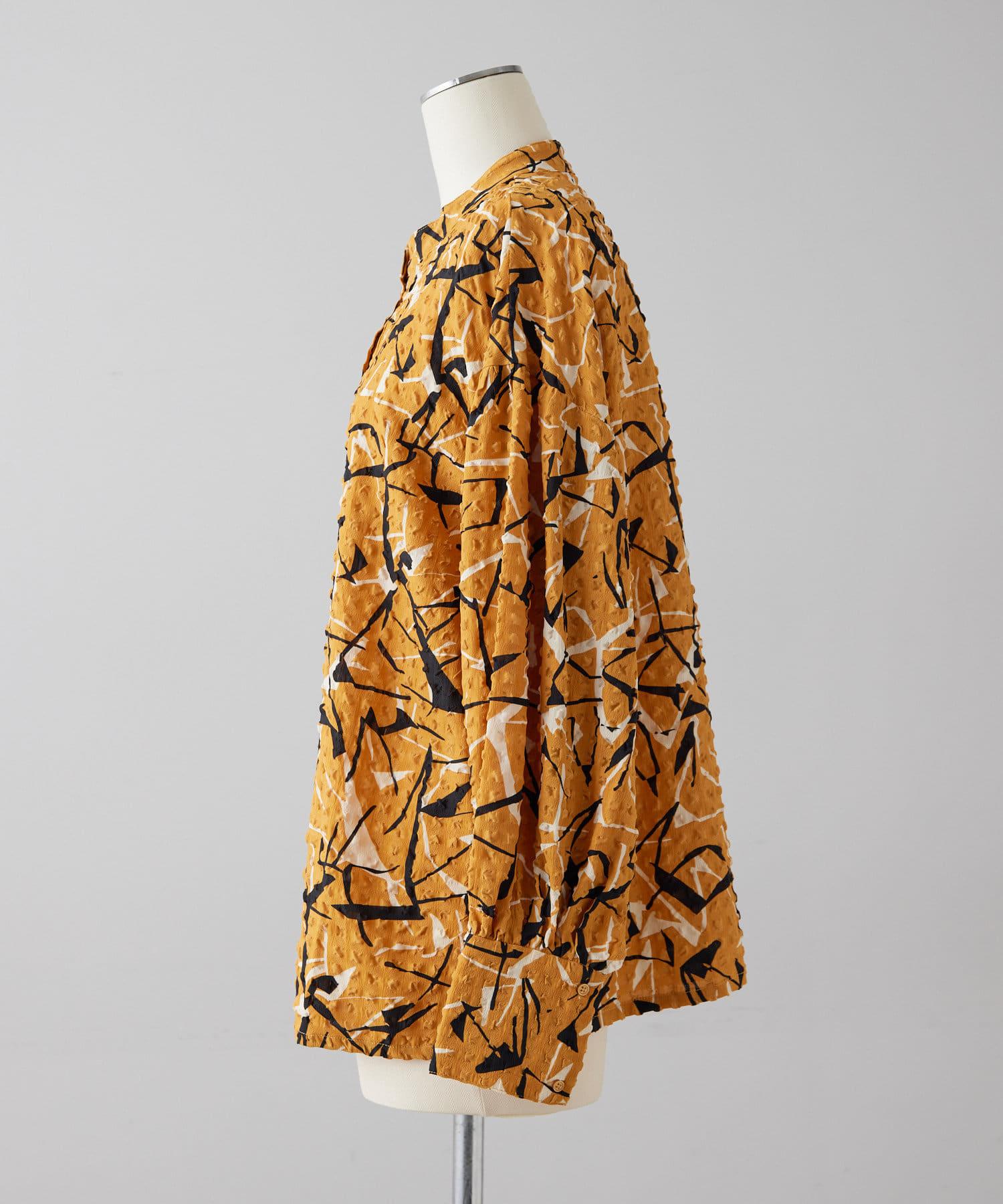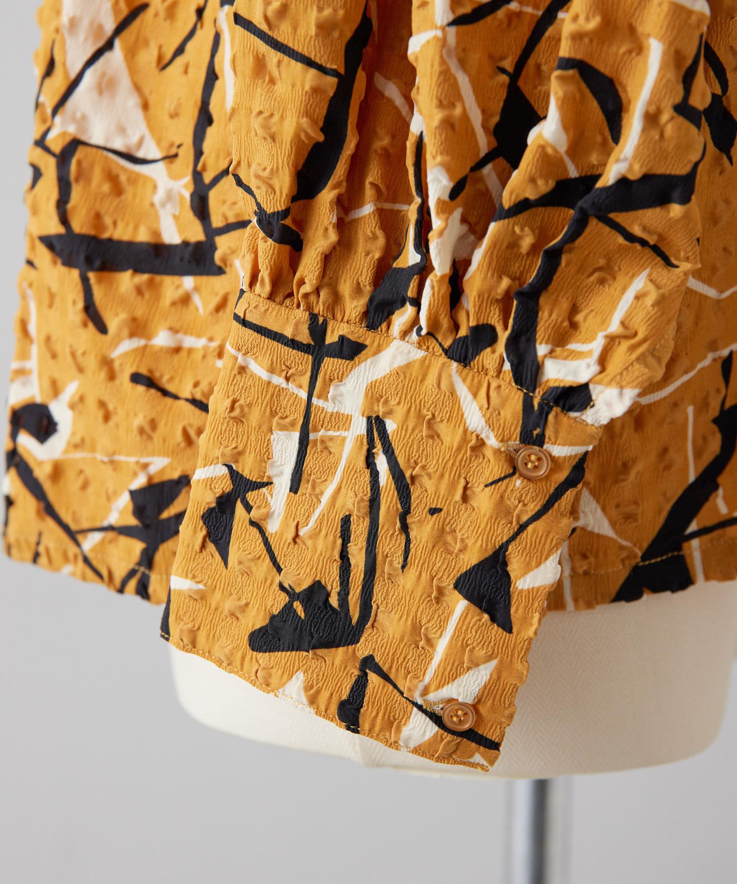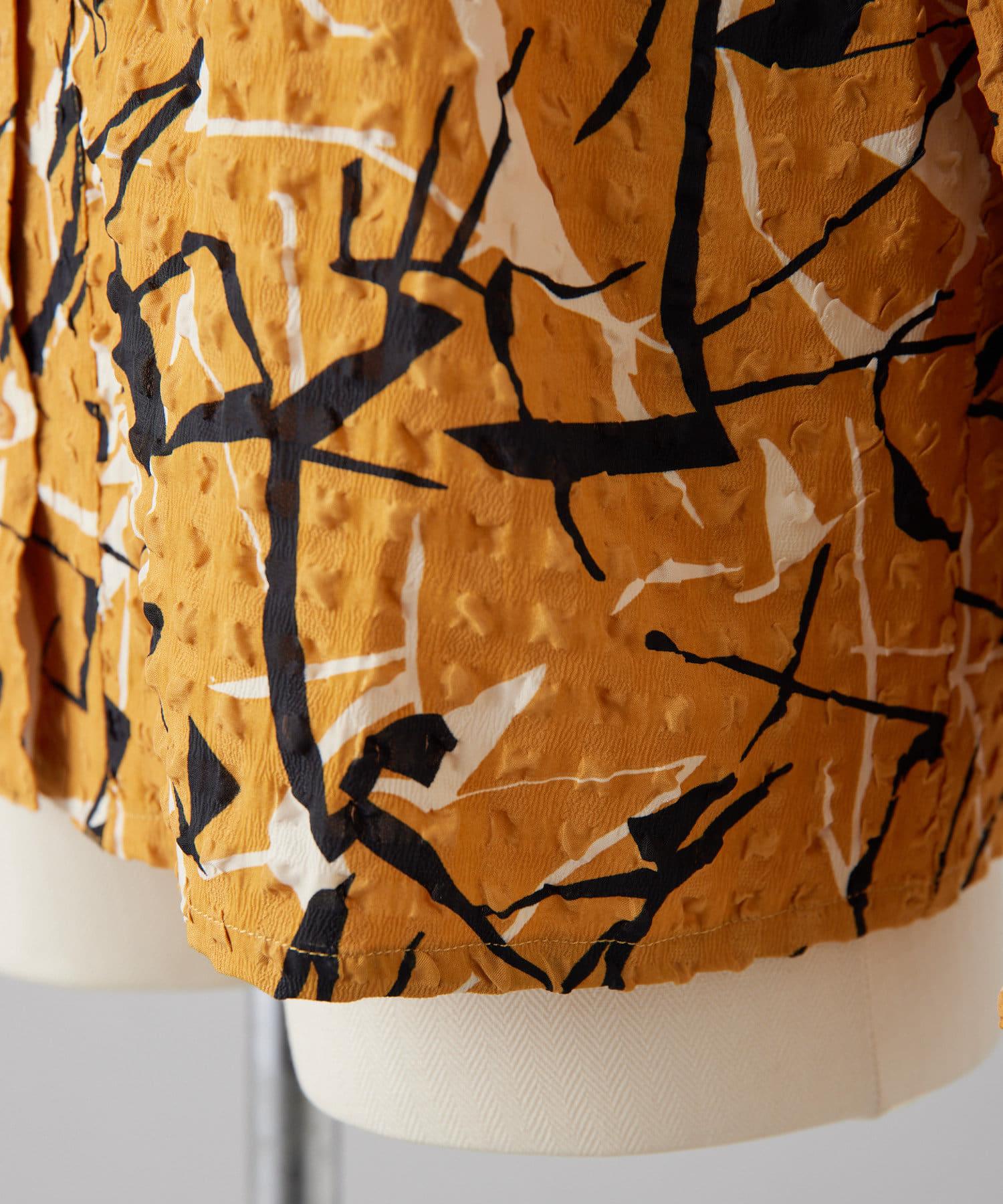 單件時尚上衣,袖子寬大,佈滿圖案。