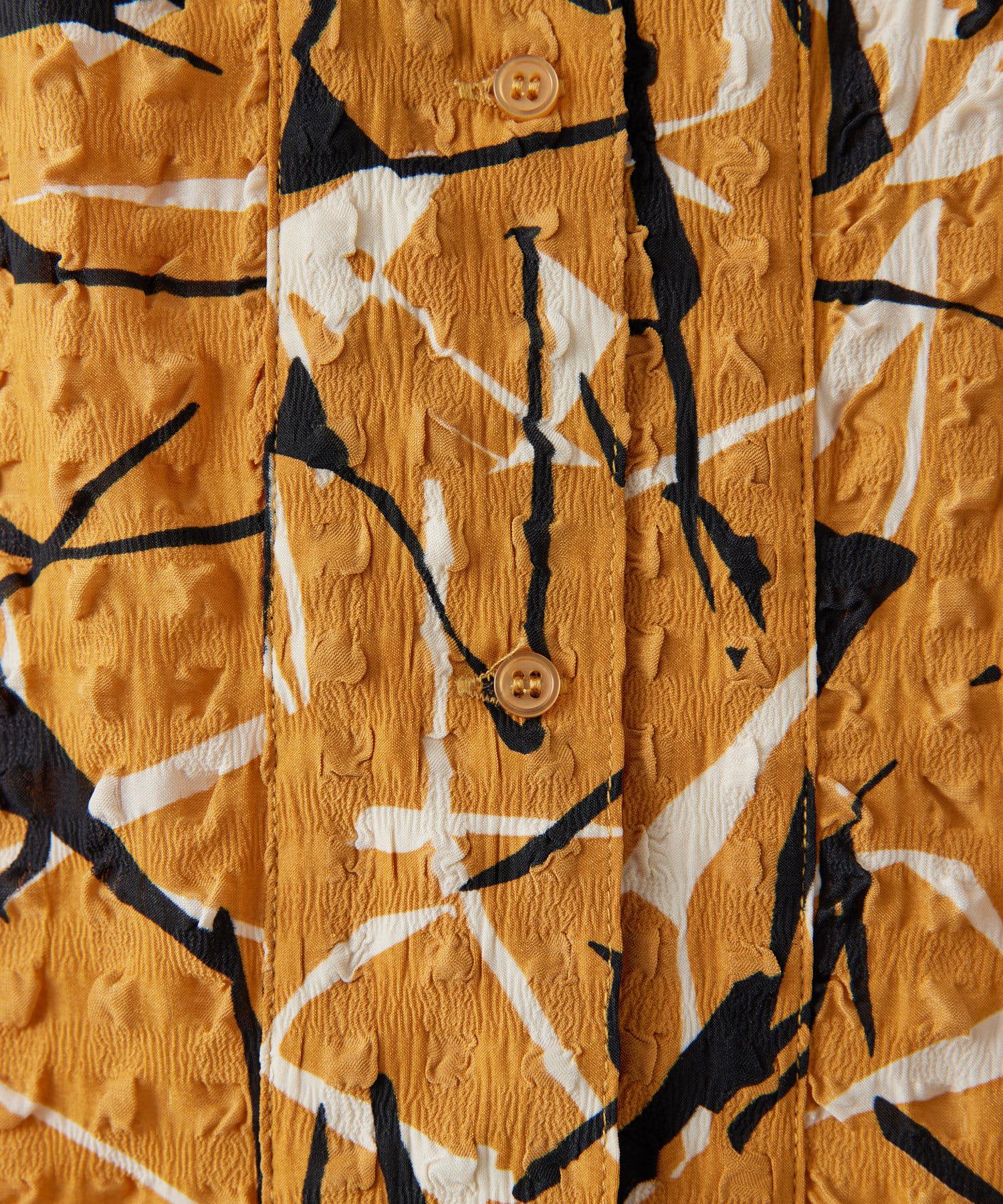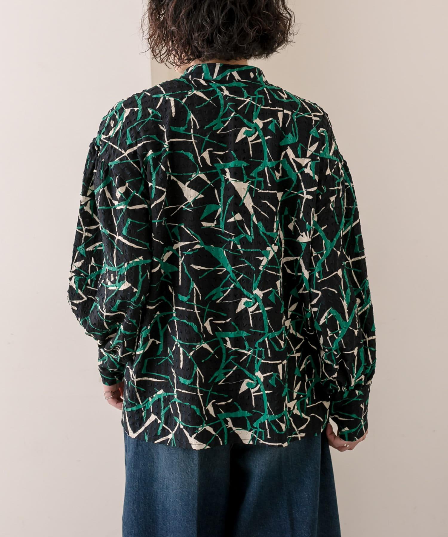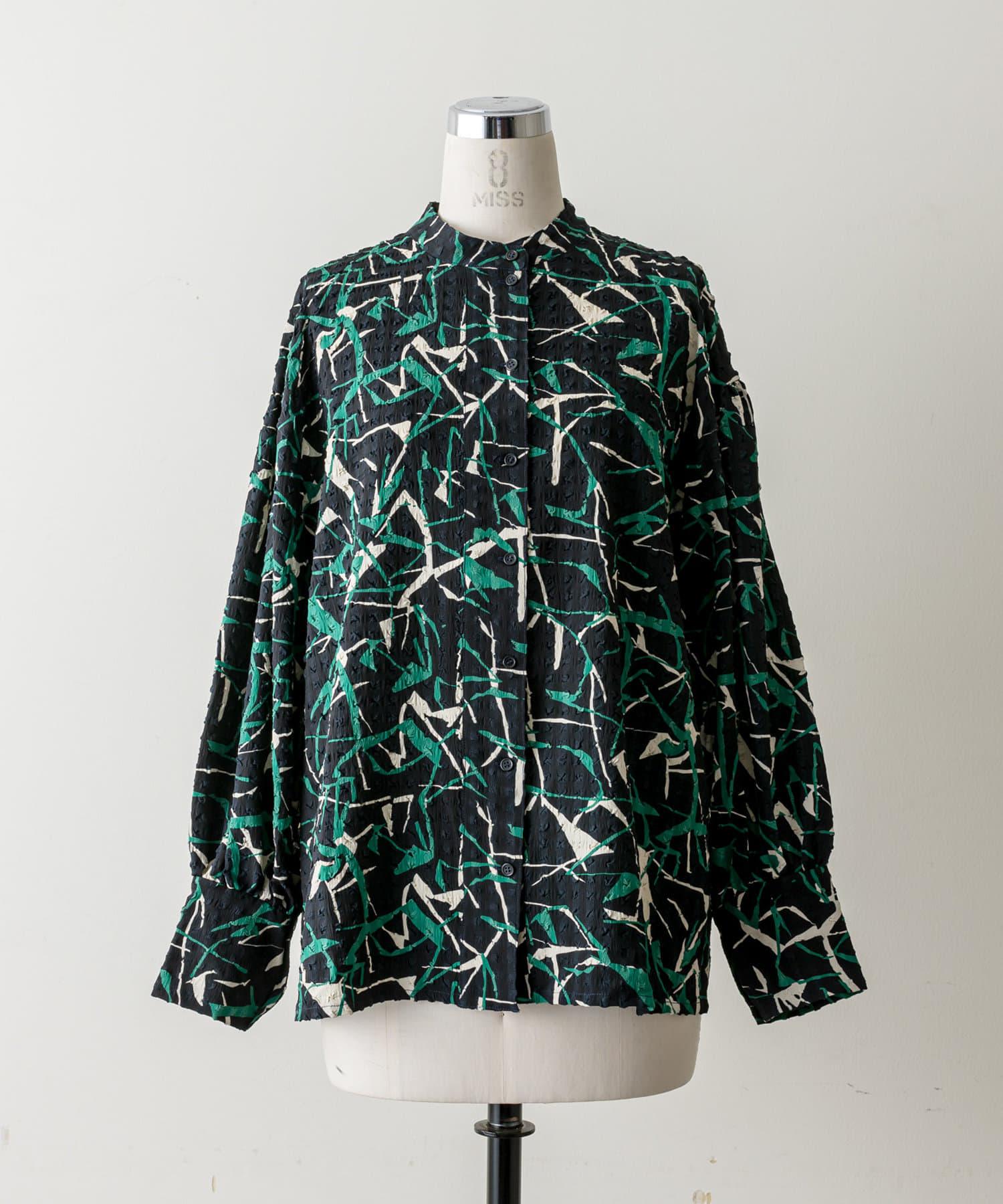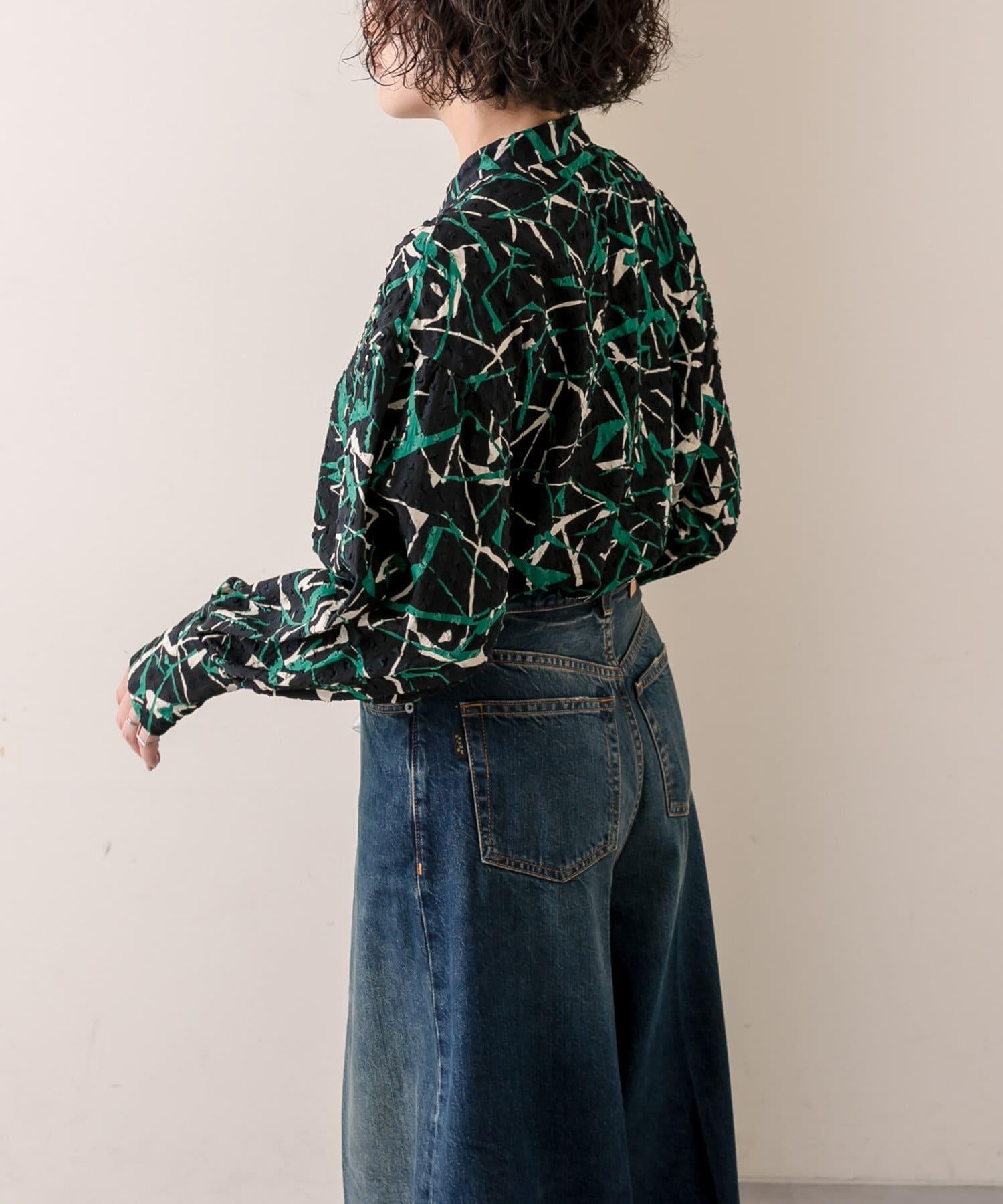 單件時尚上衣,袖子寬大,佈滿圖案。