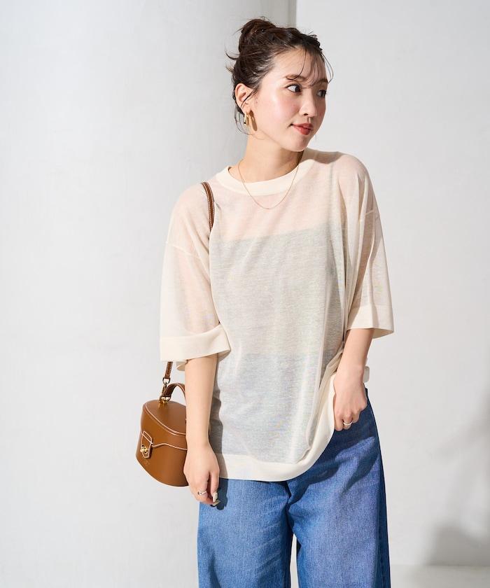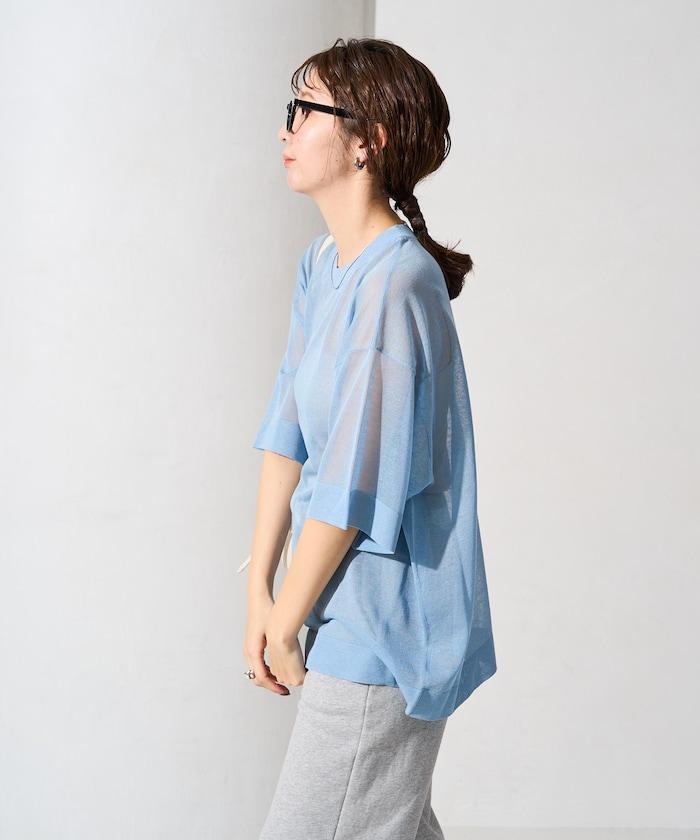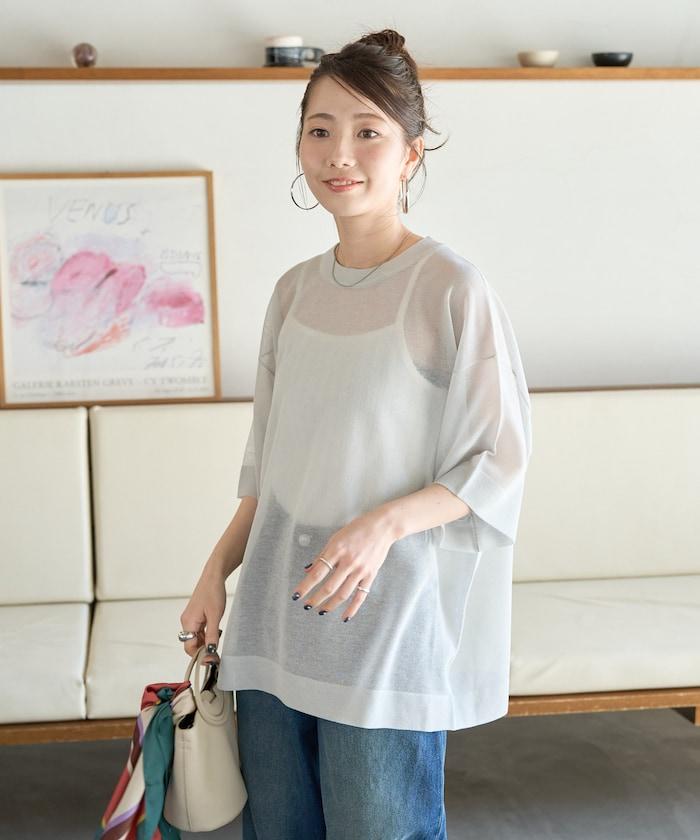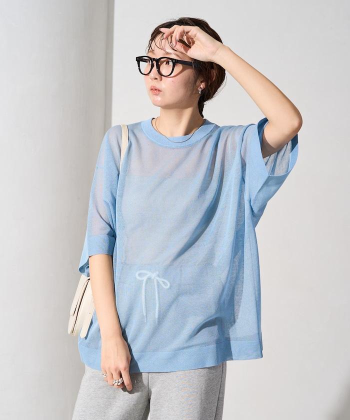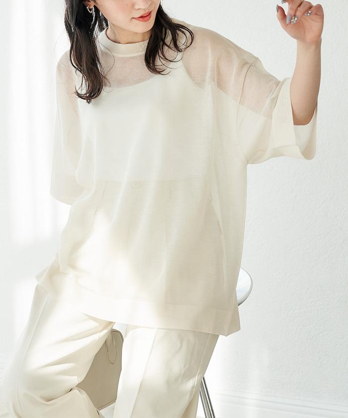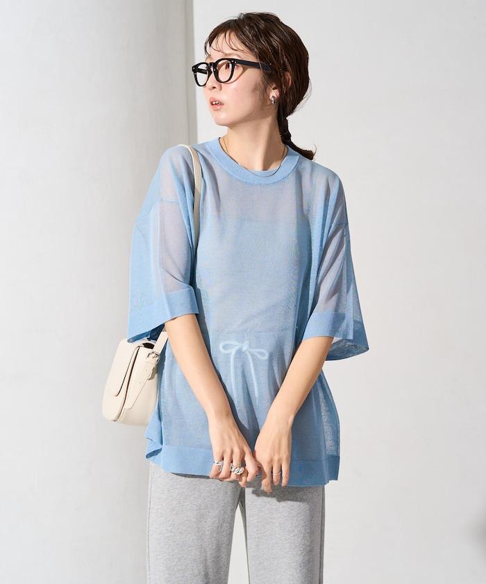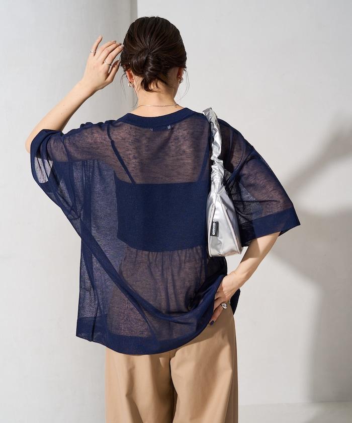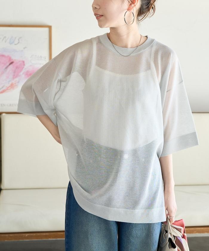 透明短袖針織衫,給人優雅精緻的印象。