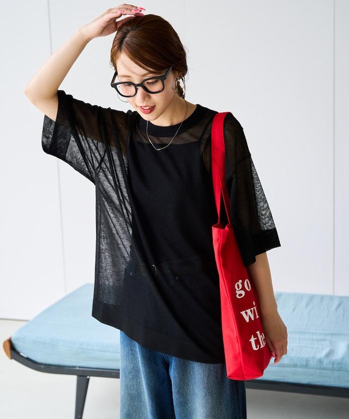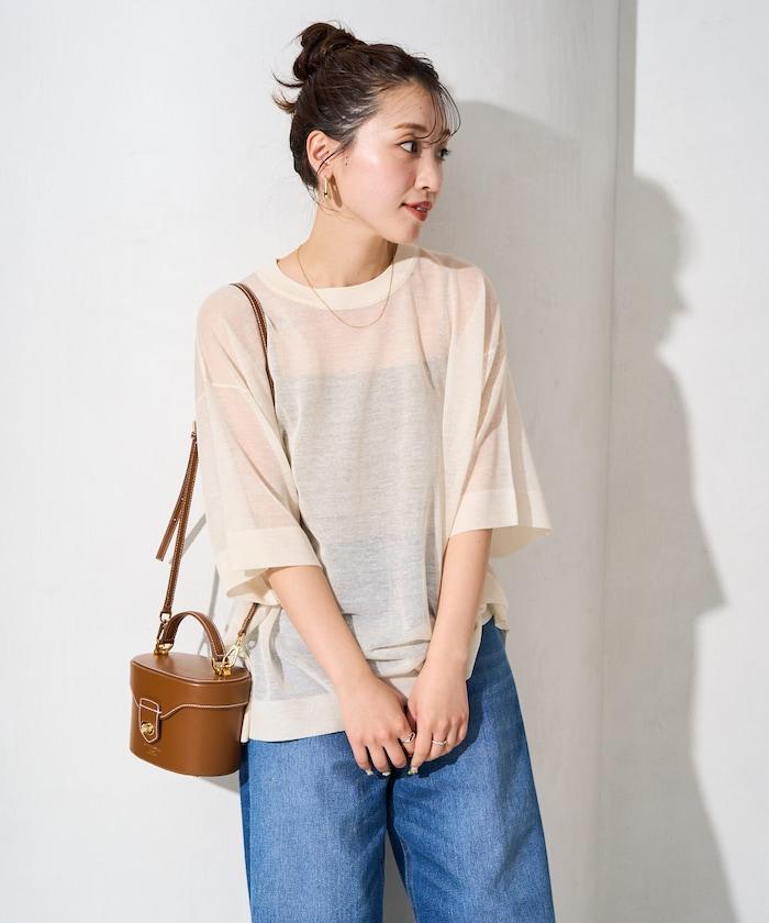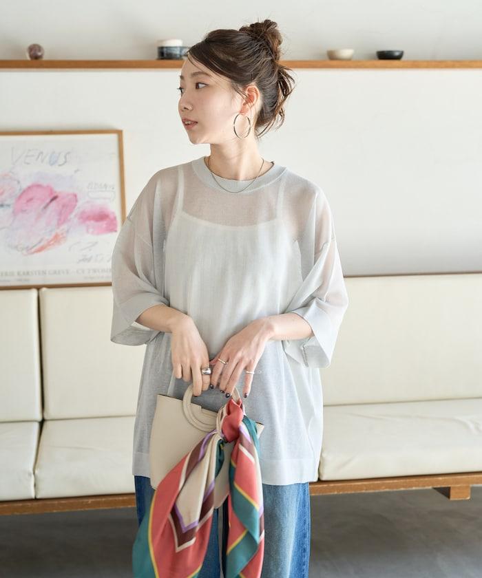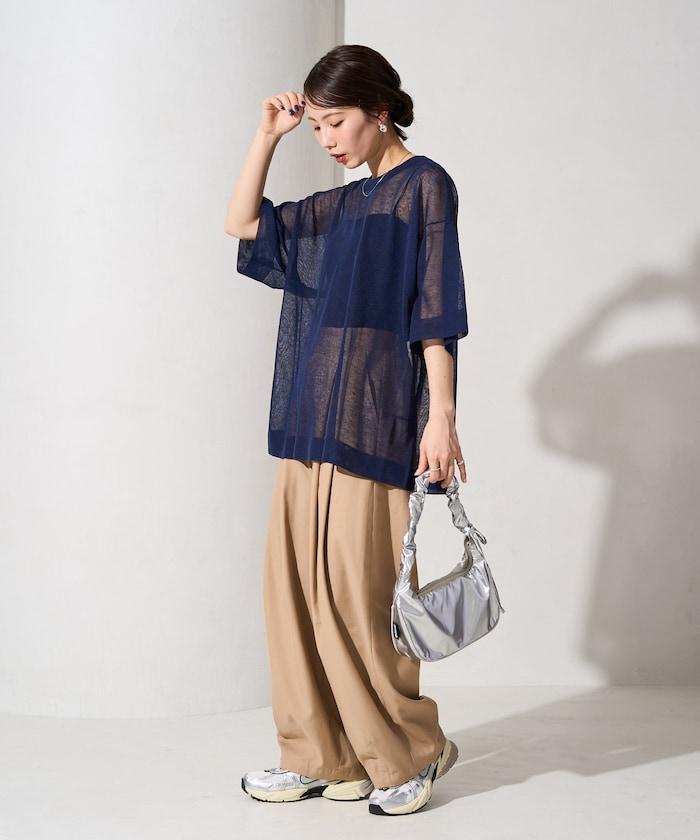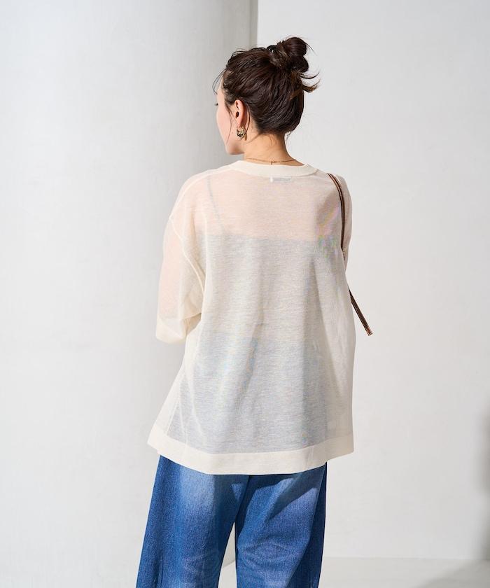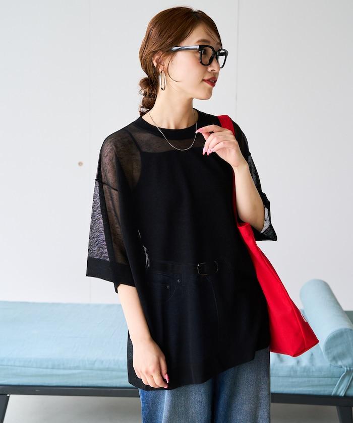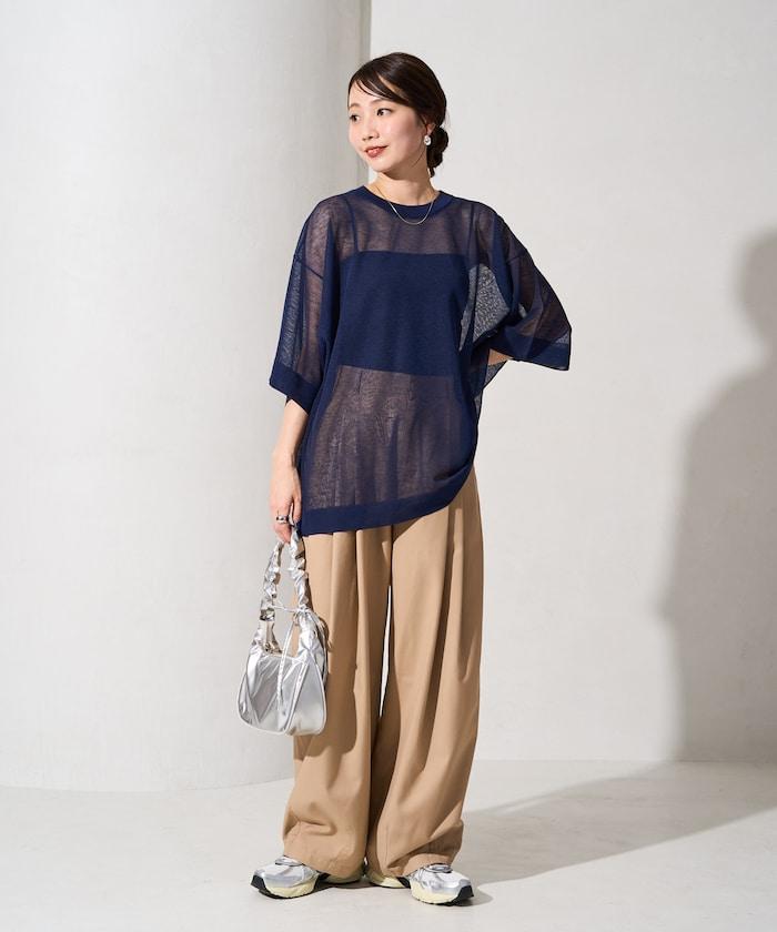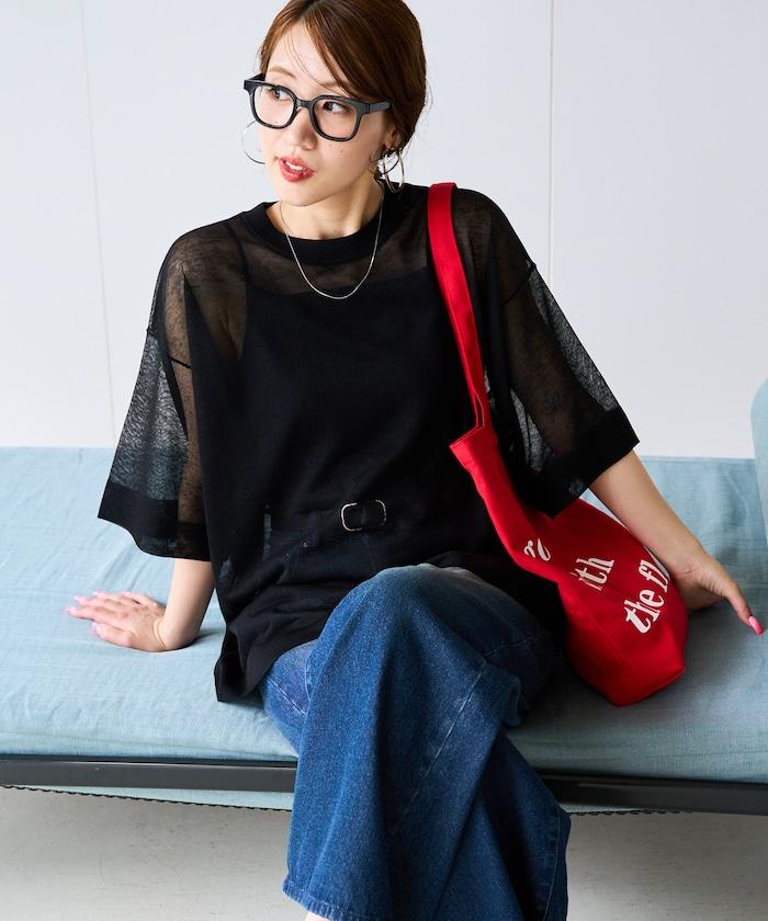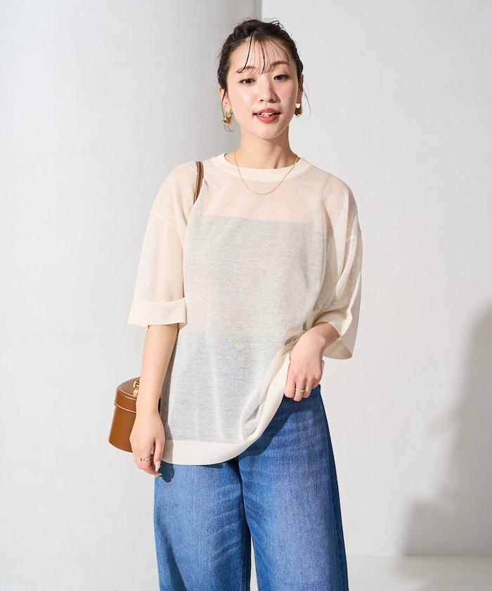 透明短袖針織衫,給人優雅精緻的印象。