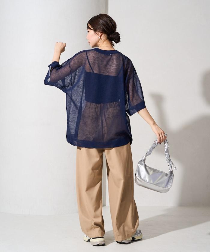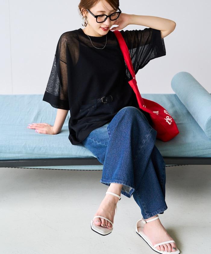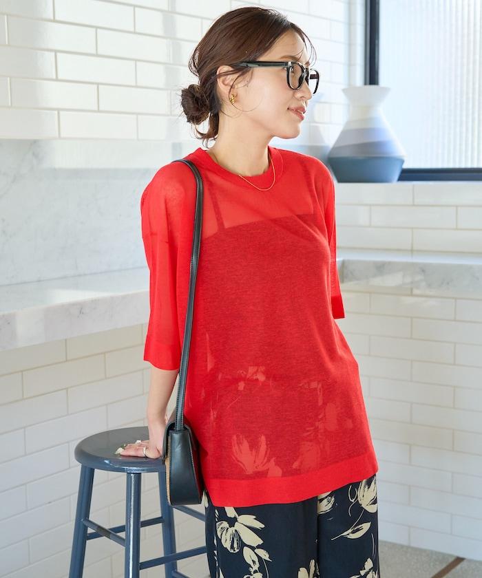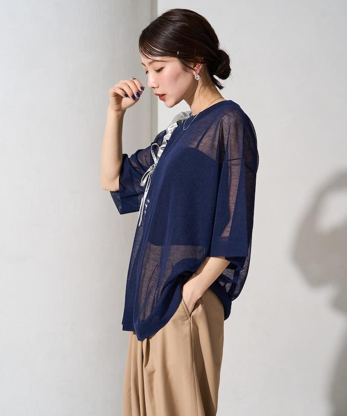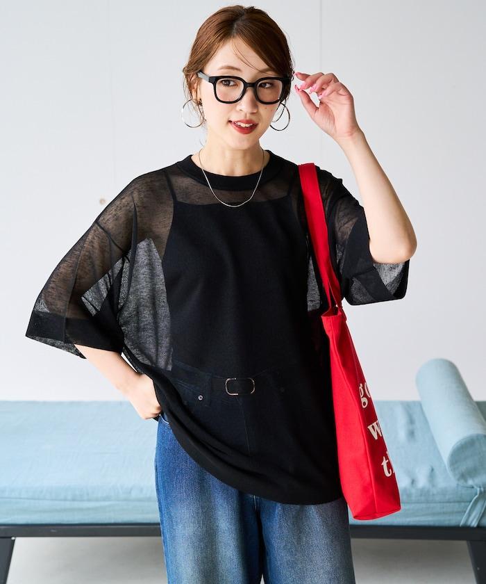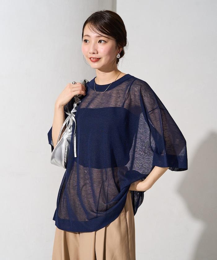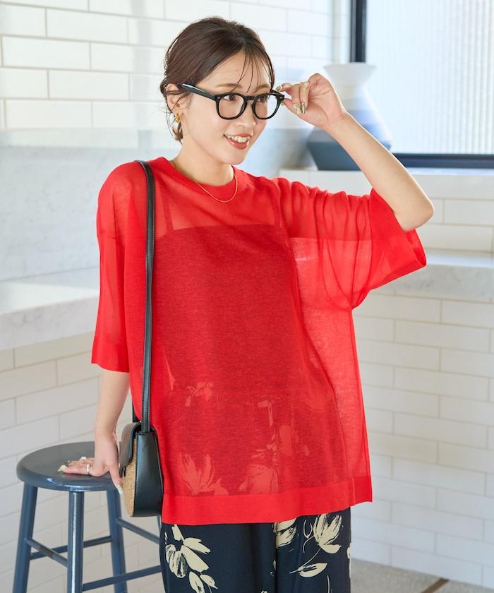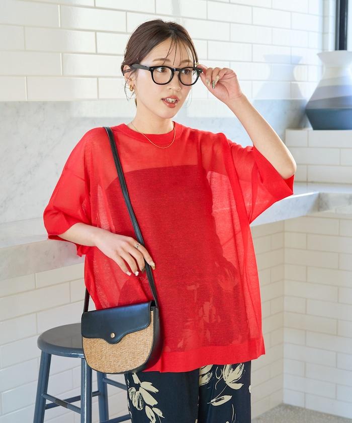 透明短袖針織衫,給人優雅精緻的印象。