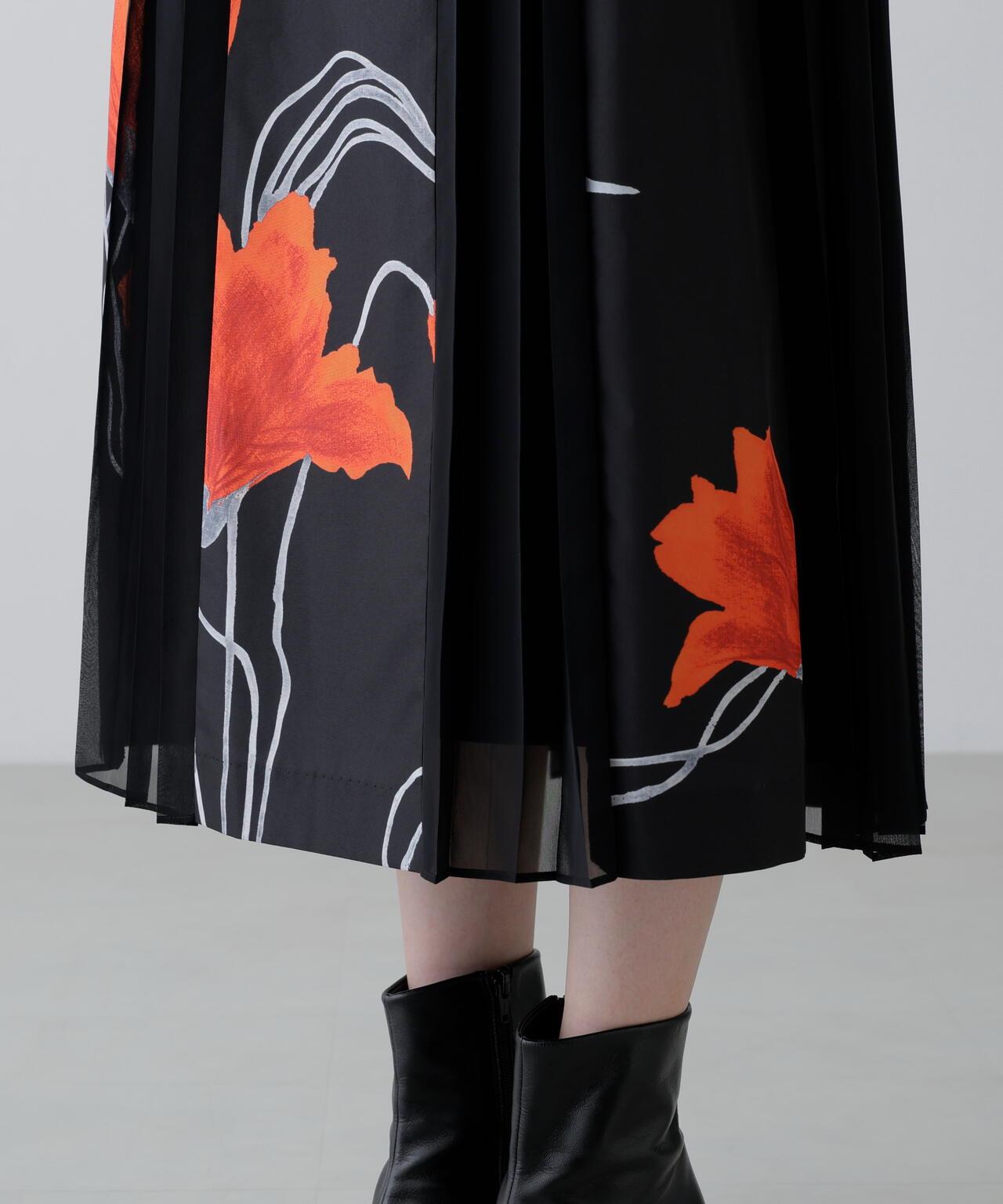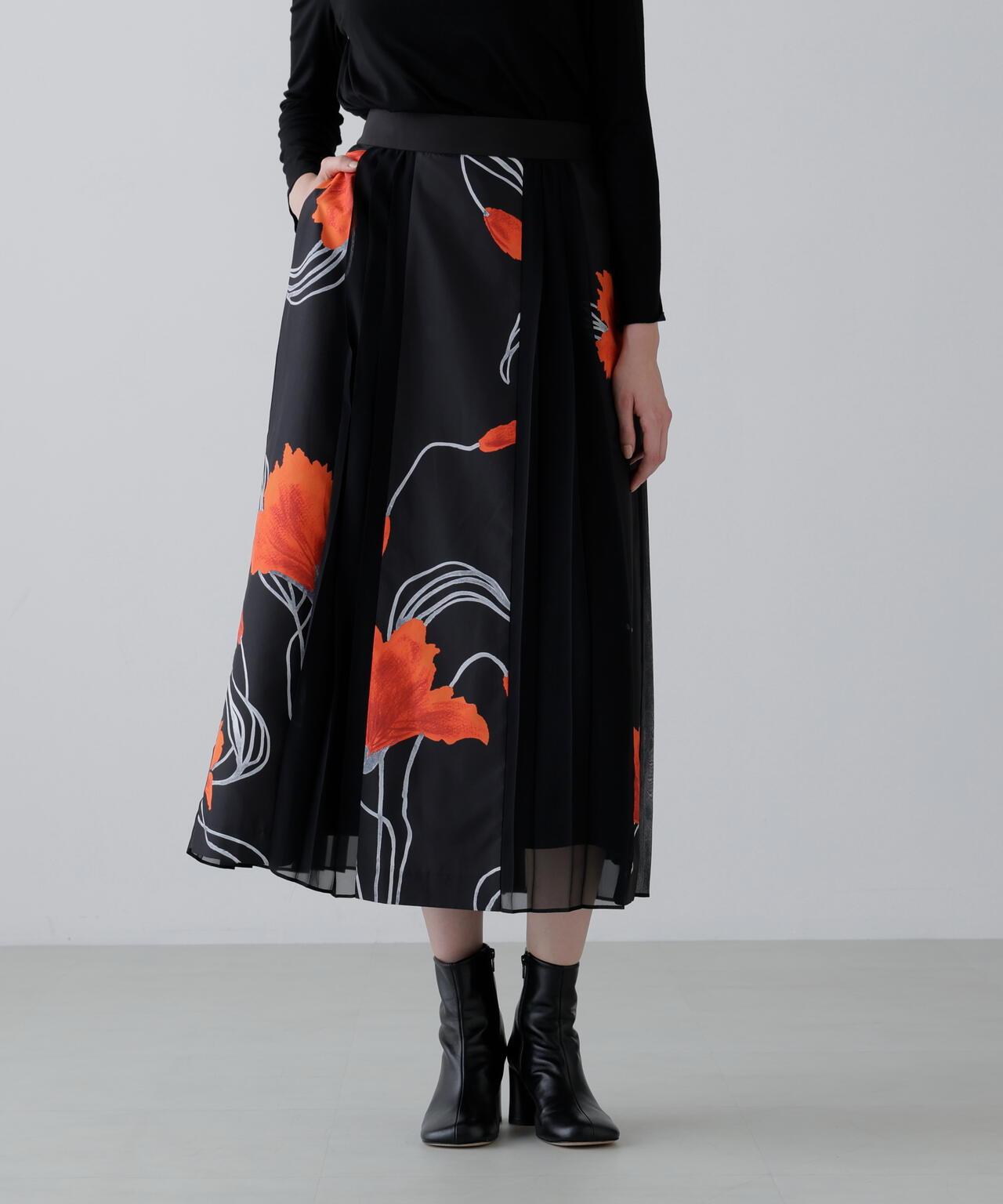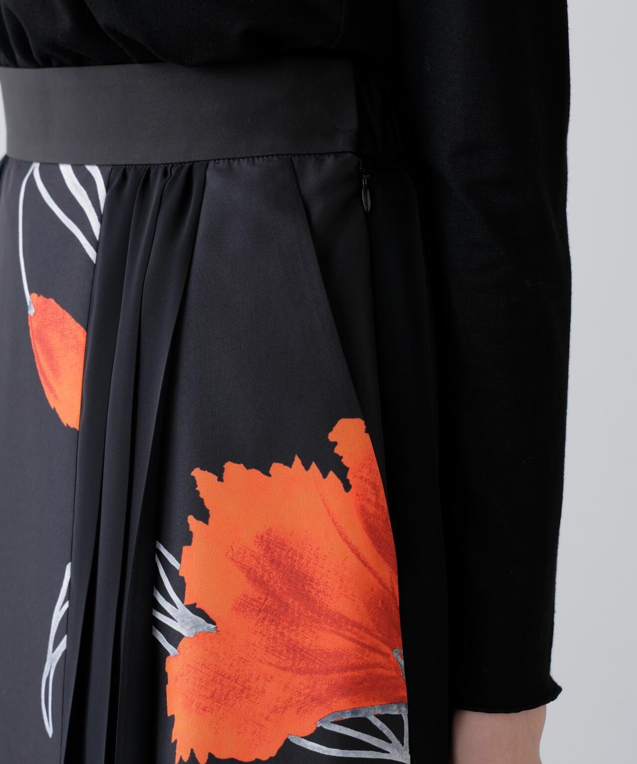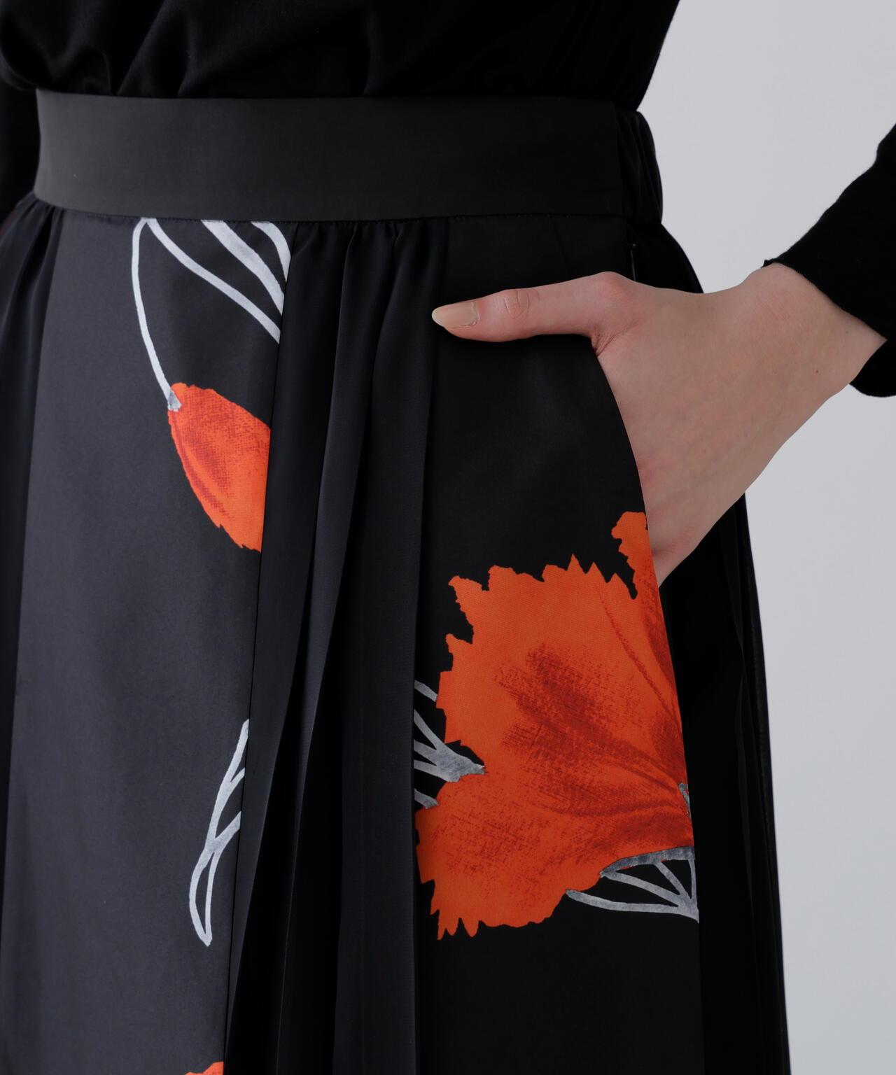 圖畫花卉印花裙,醒目大膽的印花充滿藝術氣息,印花圖案像鑲板一樣插入,與不同的材料交叉使用。透明面料採用褶皺設計,部分用於正面,全部用於背面。這款裙子即使與簡單的上衣搭配,也能彰顯出強大的氣場,因為它是一件華麗的單品。採用表面平整的輕薄新面料,底面印有鑲板圖案花紋,並採用張力適中的輕塔夫綢面料。
