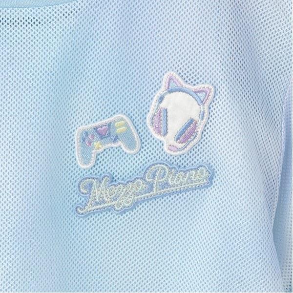 網眼 T 恤肩部開衩,更顯娘娘腔。