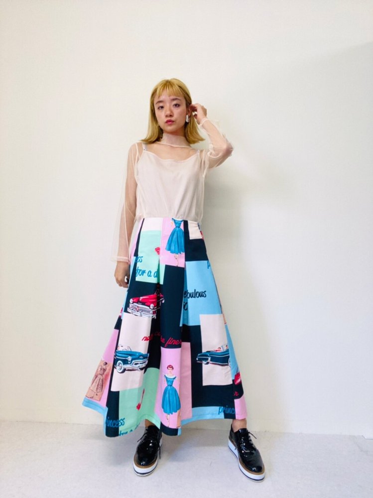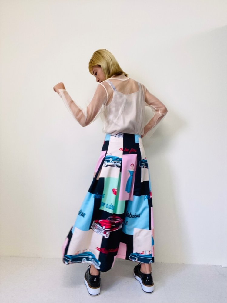 流行色的搭配給人一種懷舊的感覺。 一躍回到 50 年代!這款長裙既可美美地穿,也可隨意地穿。