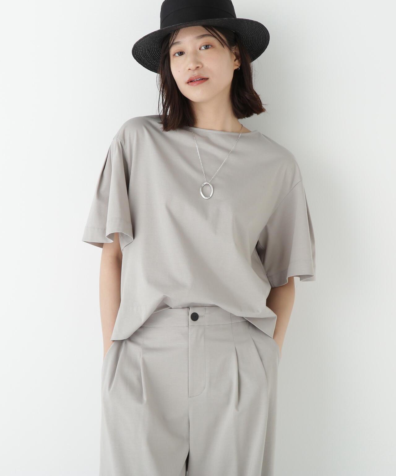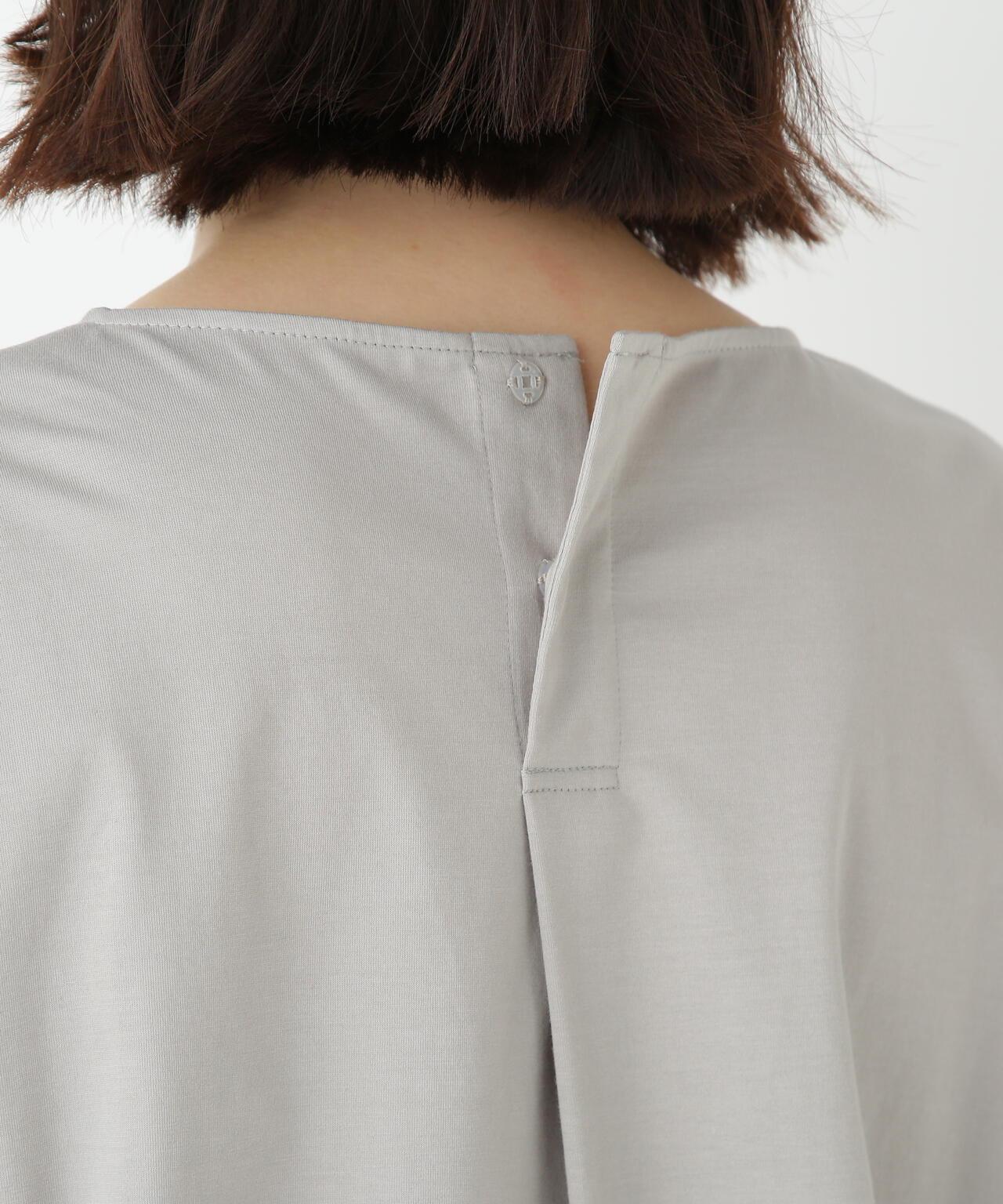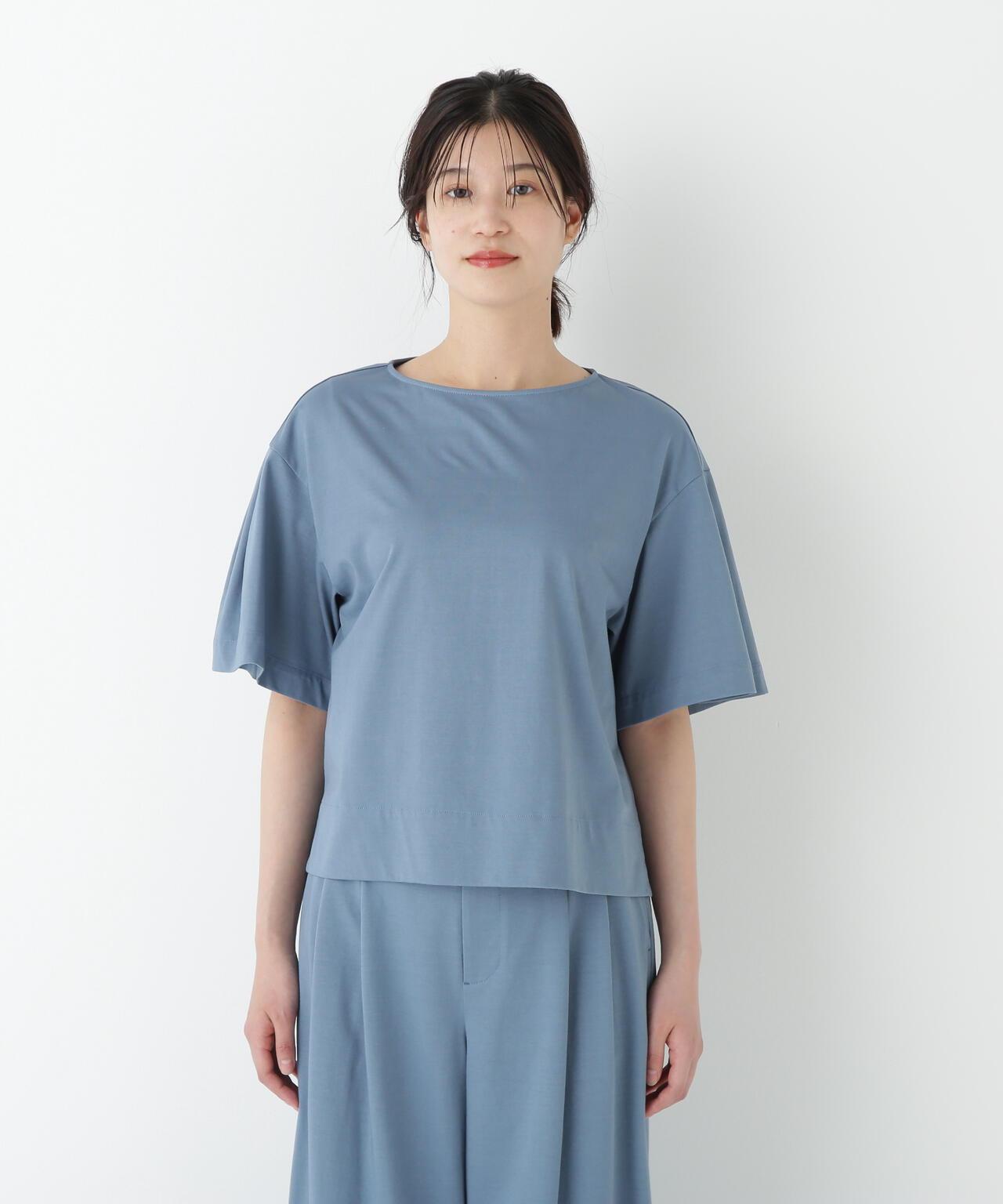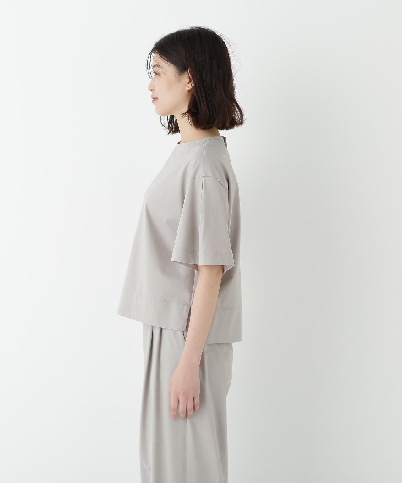 船領套頭衫,美觀大方,穿著舒適 [設計特色] 一件式船領套頭衫,採用透膚剪裁。內收的喇叭袖是一大特色。面料採用有機鍍棉針織布與回收聚酯混紡製成,既有梭織面料的彈力,又有針織布的舒適。該面料是一種可持續材料,還具有接觸式冷卻感。推薦搭配】作為一款舒適的連體夏裝,這款上衣既可以穿得漂亮,也可以穿得隨意。建議搭配同材質的長褲。