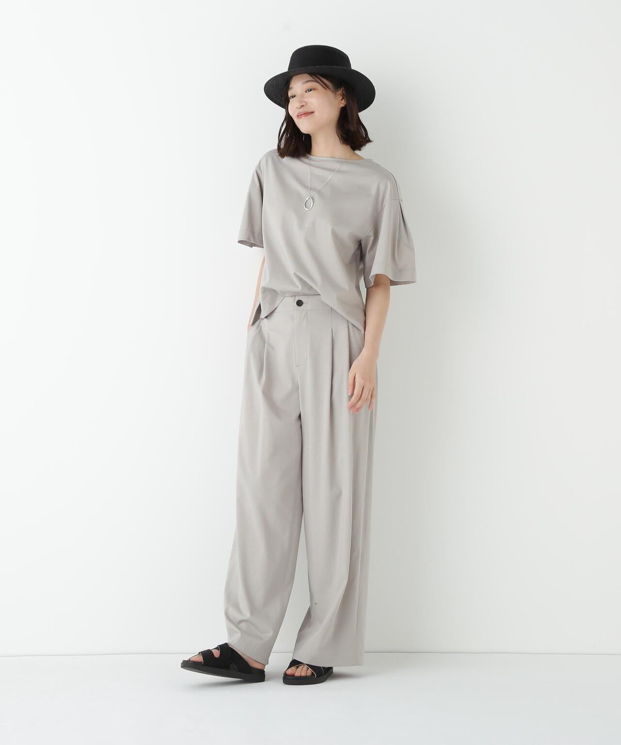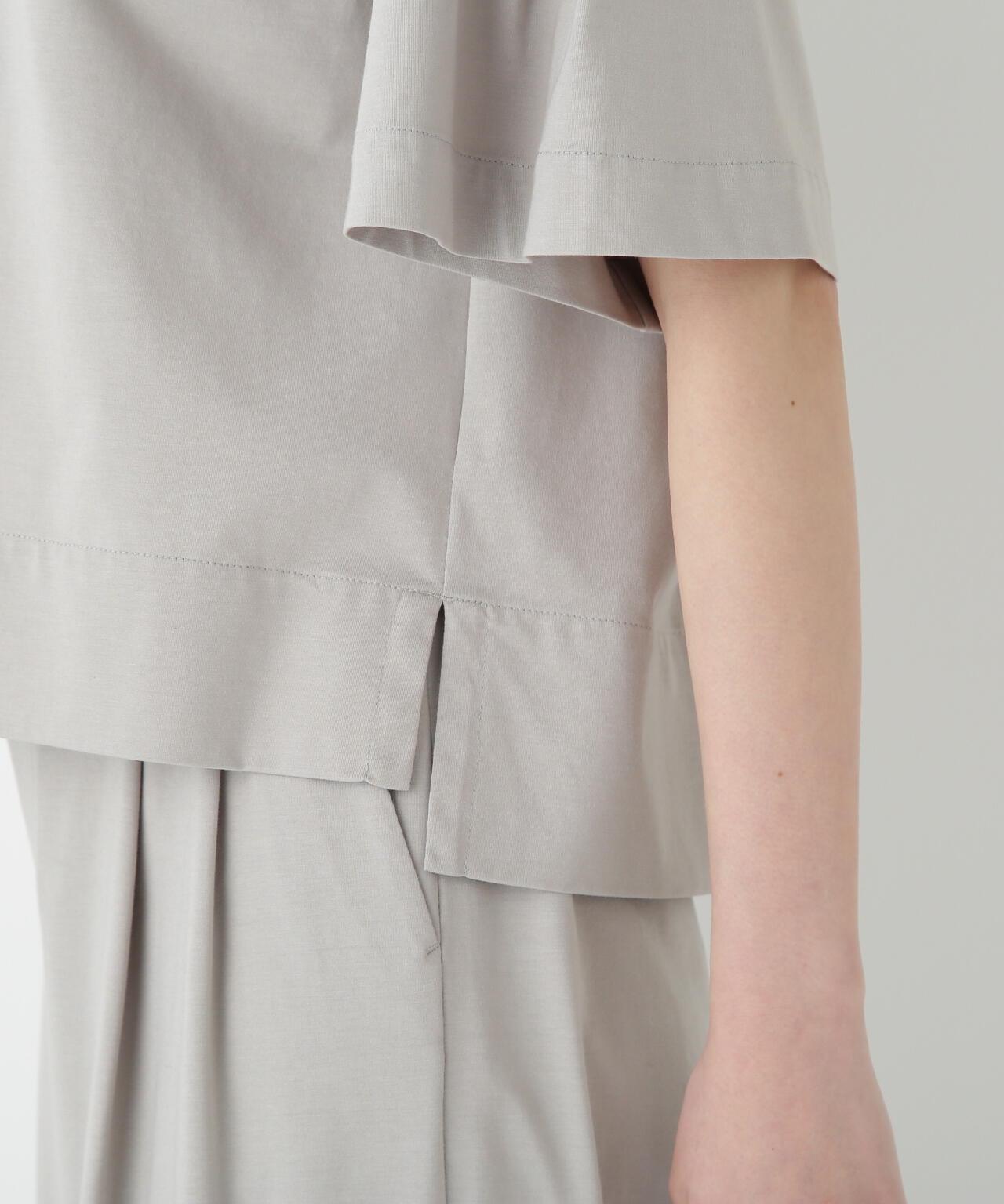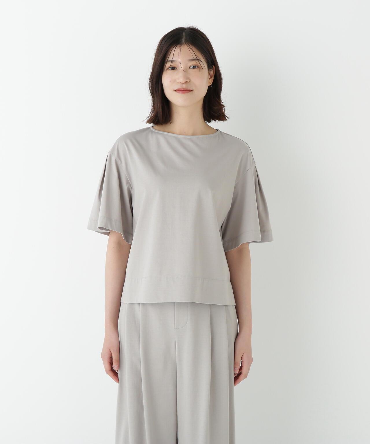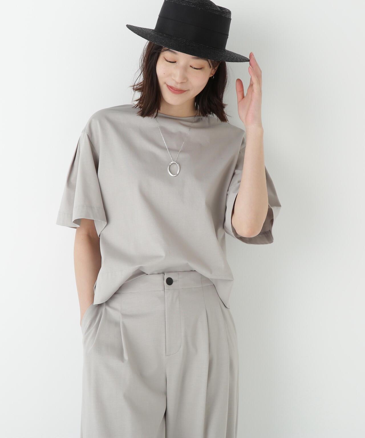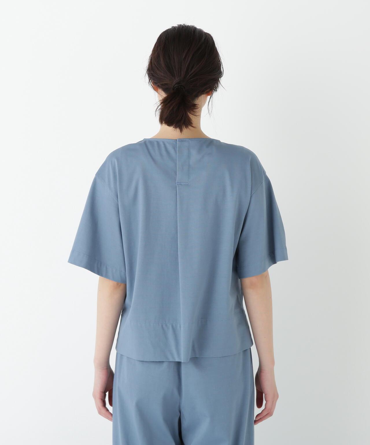 船領套頭衫,美觀大方,穿著舒適 [設計特色] 一件式船領套頭衫,採用透膚剪裁。內收的喇叭袖是一大特色。面料採用有機鍍棉針織布與回收聚酯混紡製成,既有梭織面料的彈力,又有針織布的舒適。該面料是一種可持續材料,還具有接觸式冷卻感。推薦搭配】作為一款舒適的連體夏裝,這款上衣既可以穿得漂亮,也可以穿得隨意。建議搭配同材質的長褲。