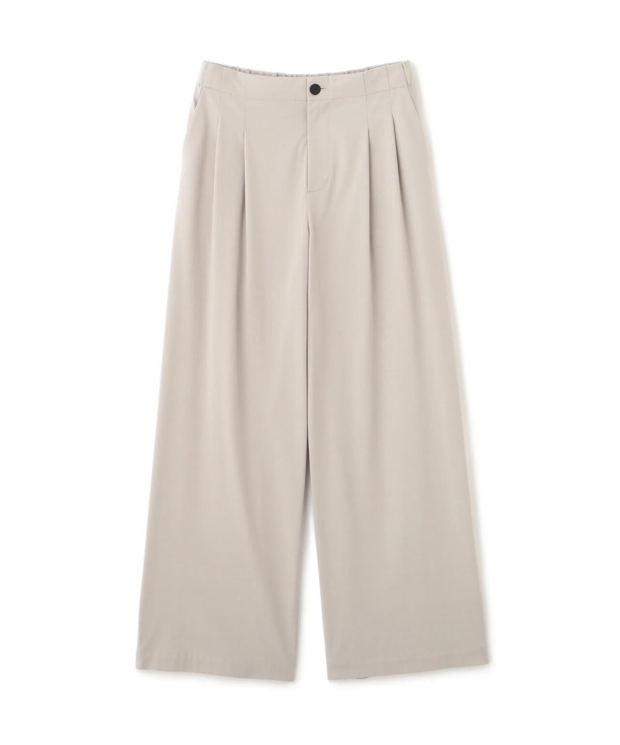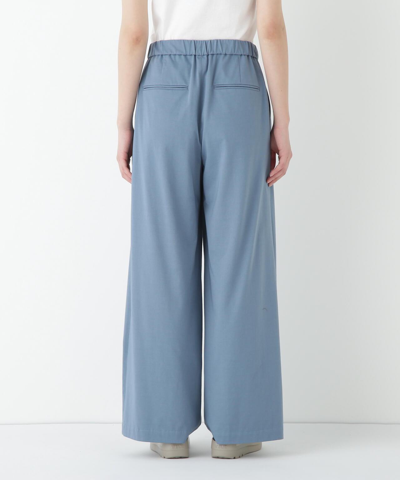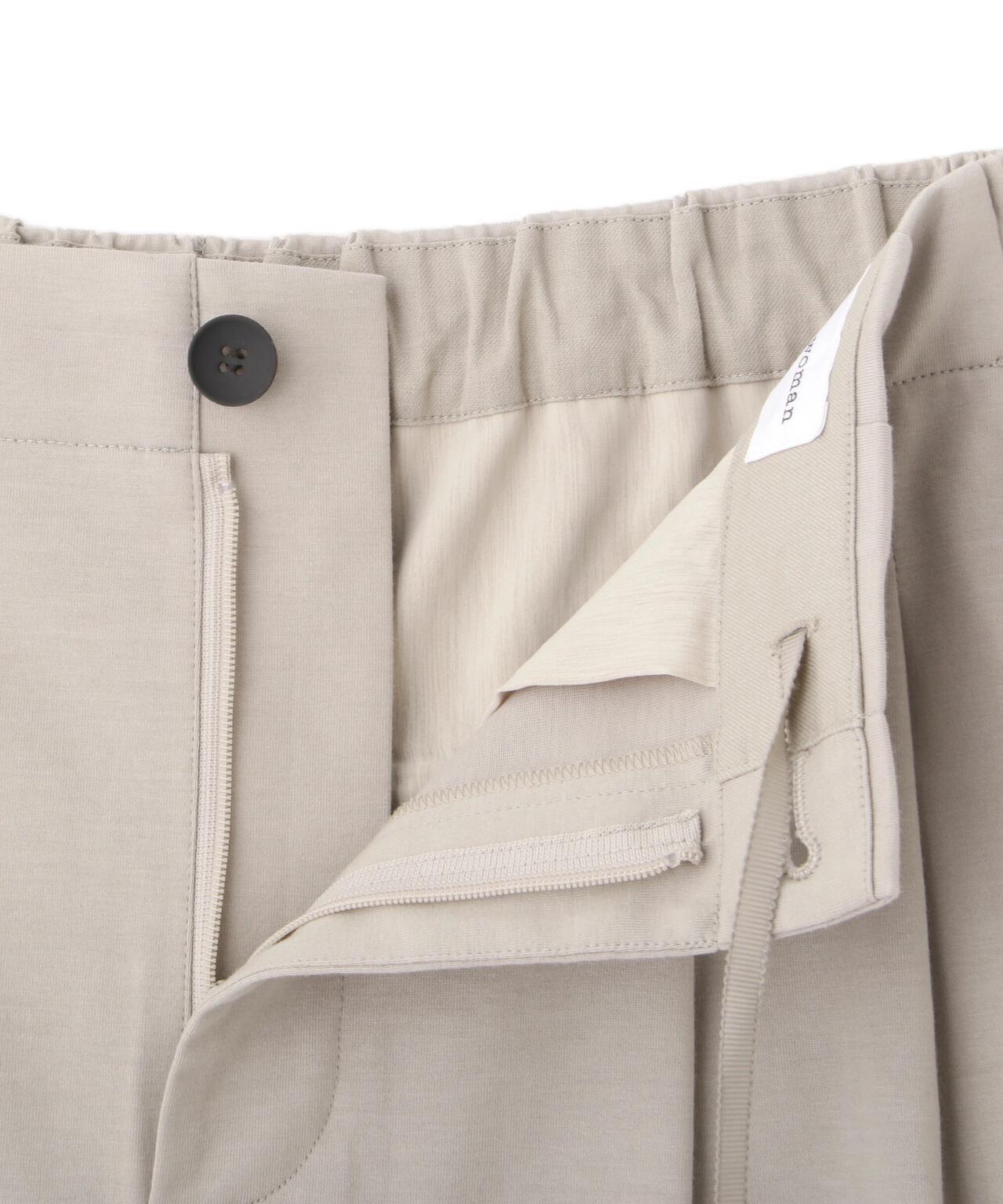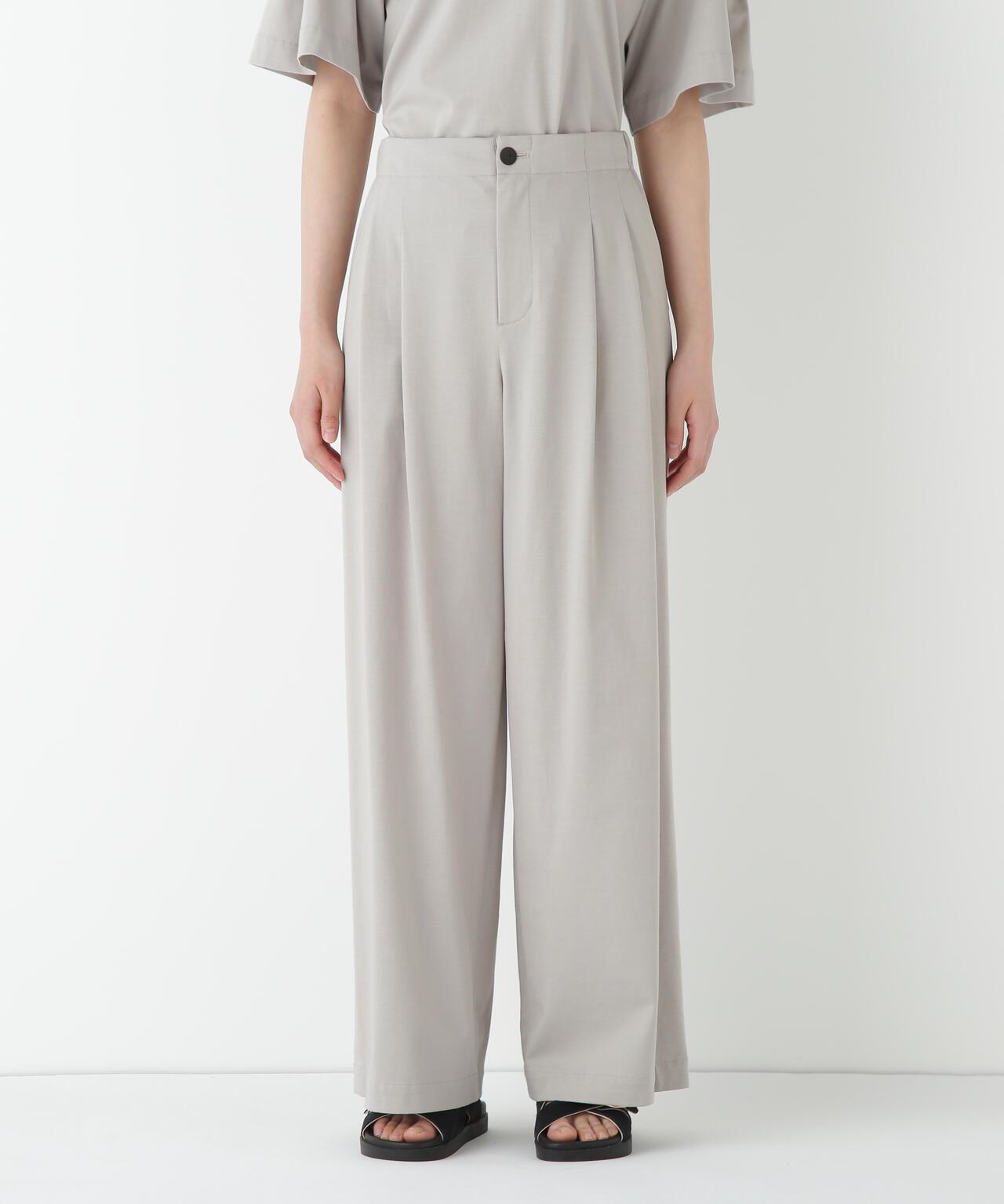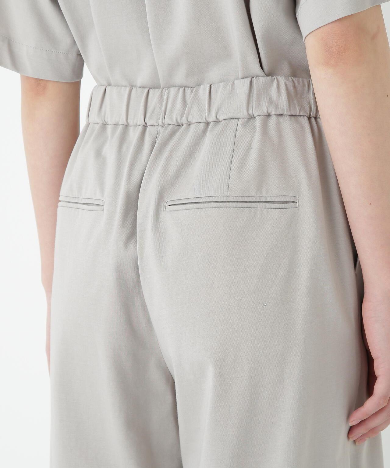 兼具簡潔外觀和舒適剪裁的半寬長褲 [設計特點] 雙襉半寬長褲的輪廓給人一種皮膚分離的感覺。腰部配有腰帶,外觀簡潔。面料採用有機鍍棉針織布與回收聚酯混紡製成,既有梭織面料的彈力,又有針織布的舒適。這種面料還具有可持續發展和接觸冷卻的特性。推薦搭配:與同材質的套頭衫搭配。單穿也非常適合。