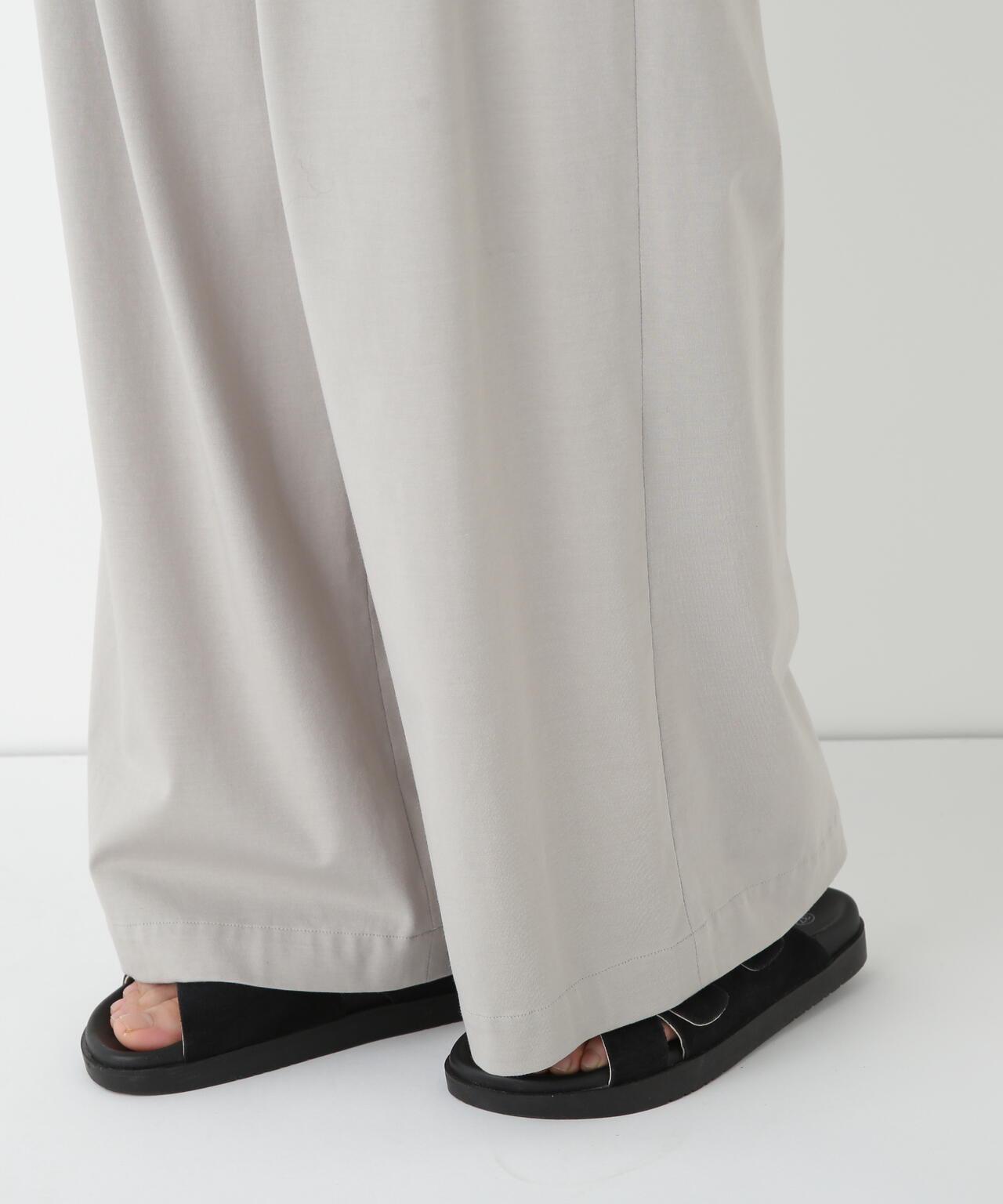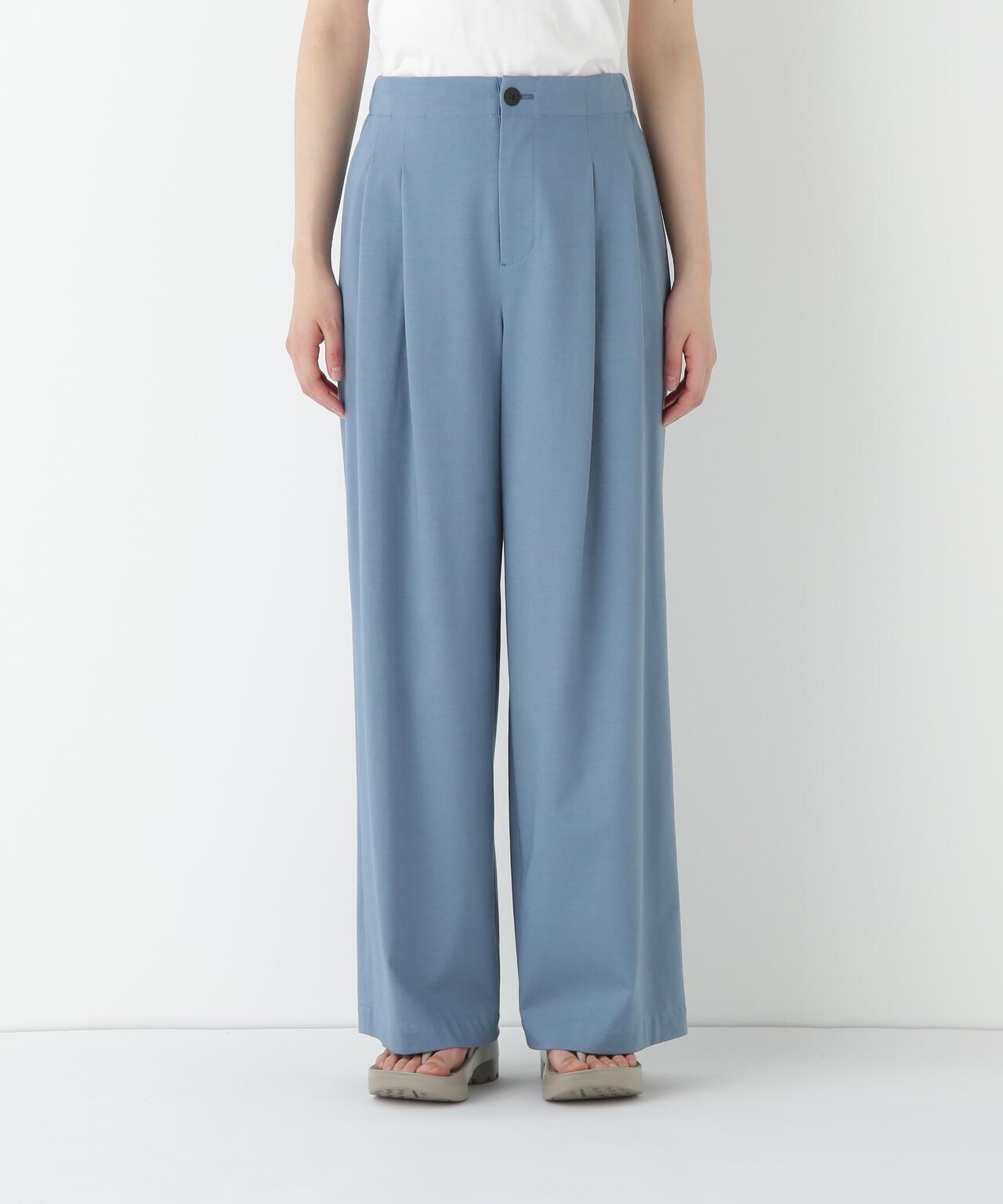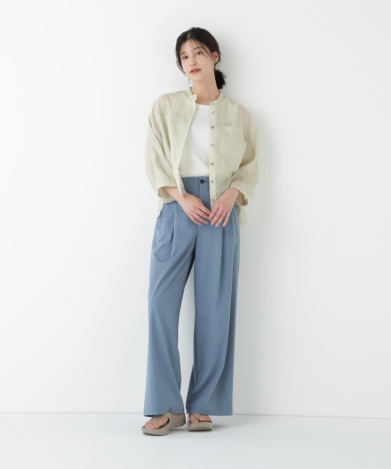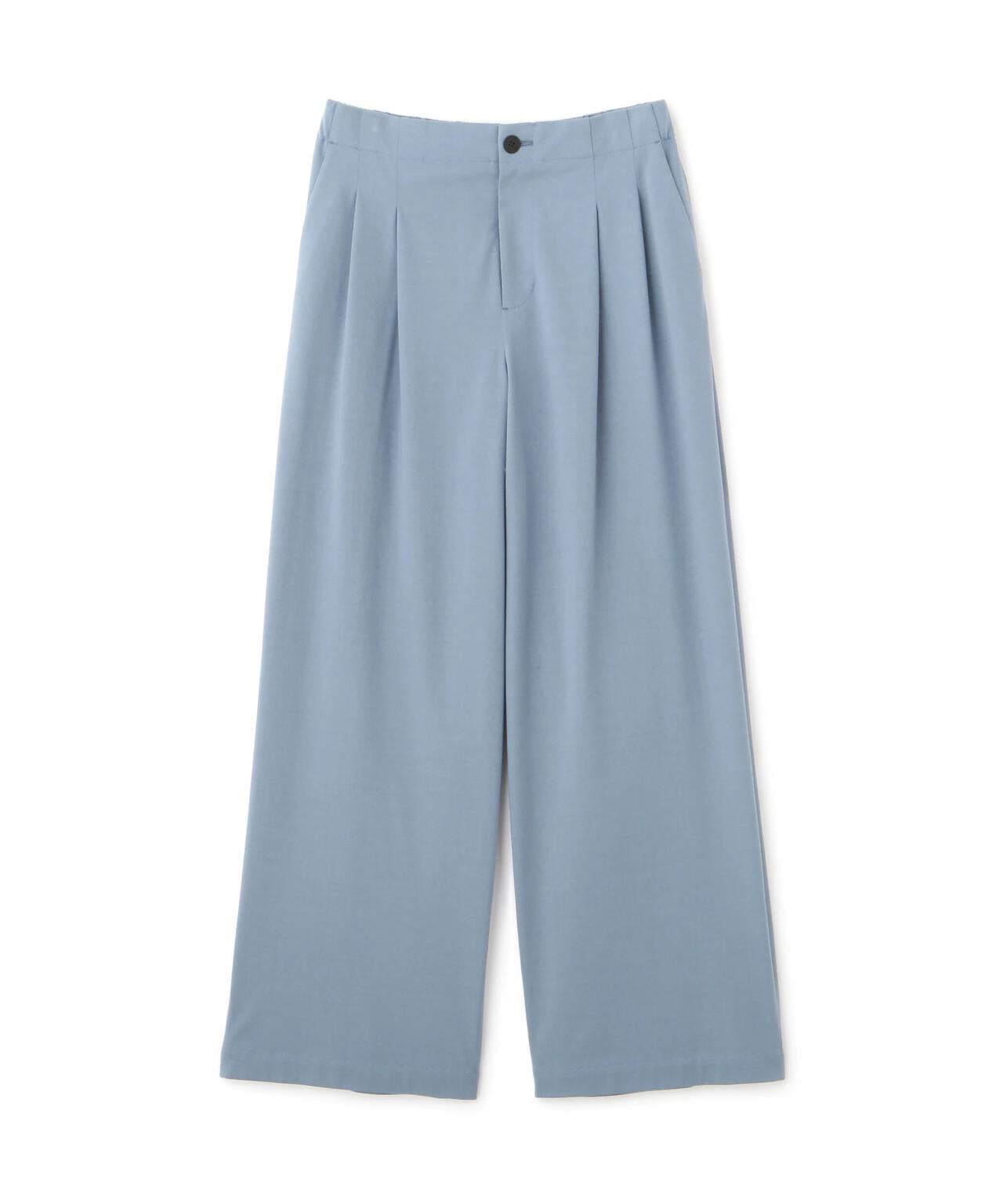 兼具簡潔外觀和舒適剪裁的半寬長褲 [設計特點] 雙襉半寬長褲的輪廓給人一種皮膚分離的感覺。腰部配有腰帶,外觀簡潔。面料採用有機鍍棉針織布與回收聚酯混紡製成,既有梭織面料的彈力,又有針織布的舒適。這種面料還具有可持續發展和接觸冷卻的特性。推薦搭配:與同材質的套頭衫搭配。單穿也非常適合。