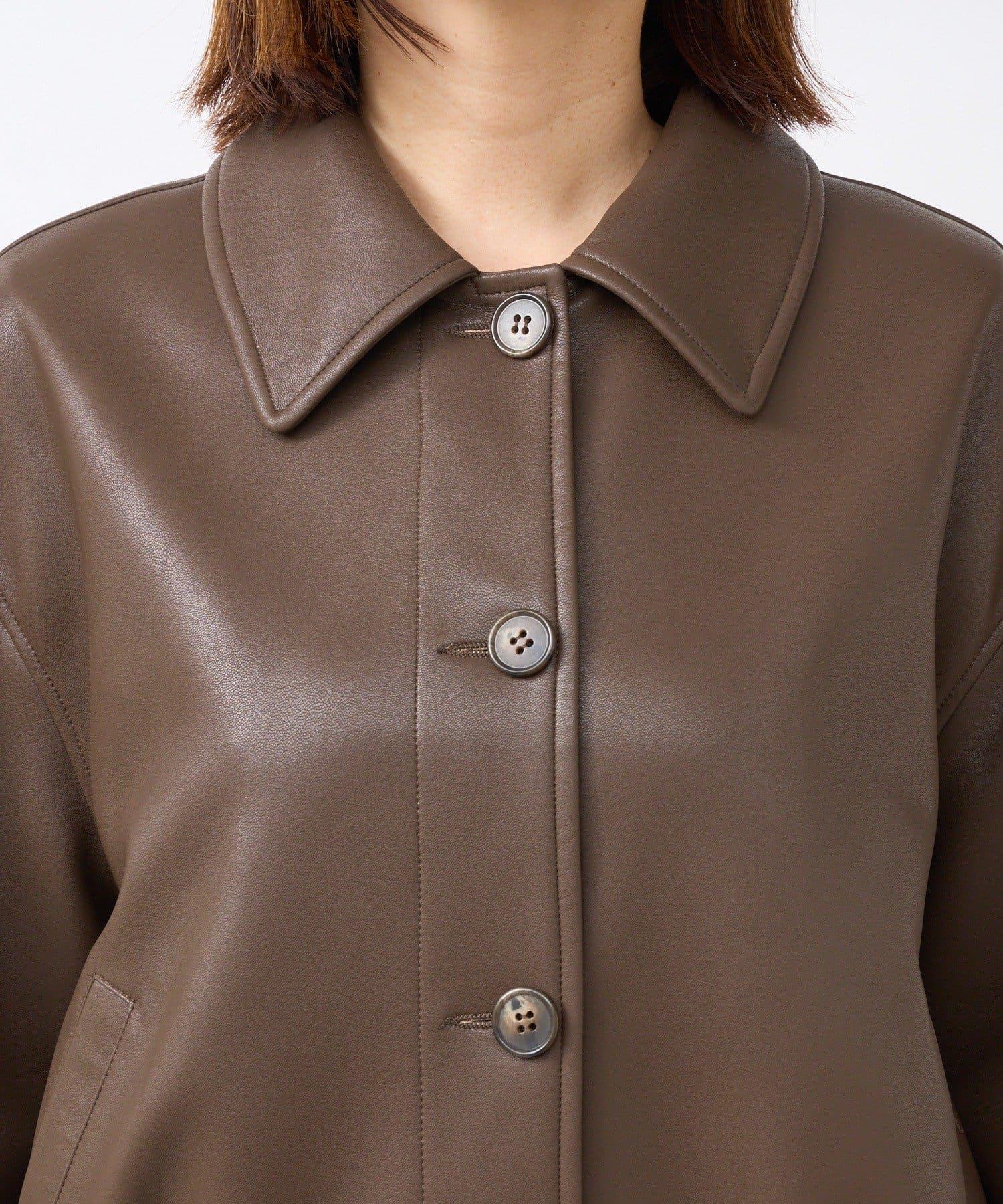 這是一款中長罩衫,由柔軟溼潤的合成皮革製成,讓人聯想到真皮。