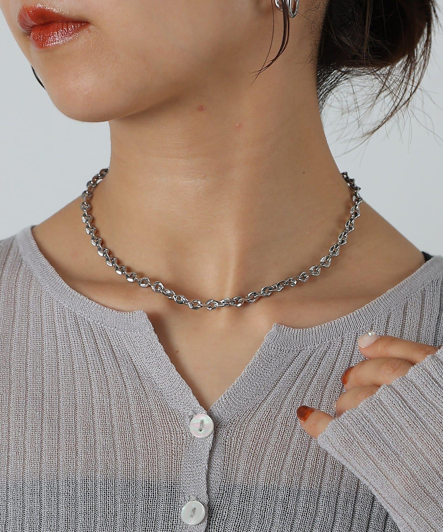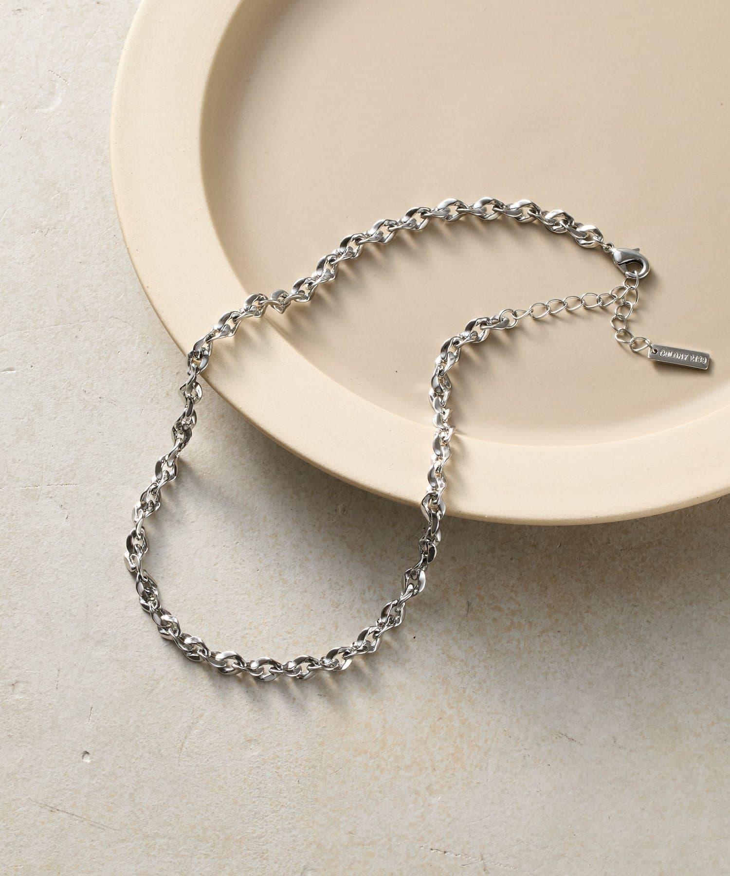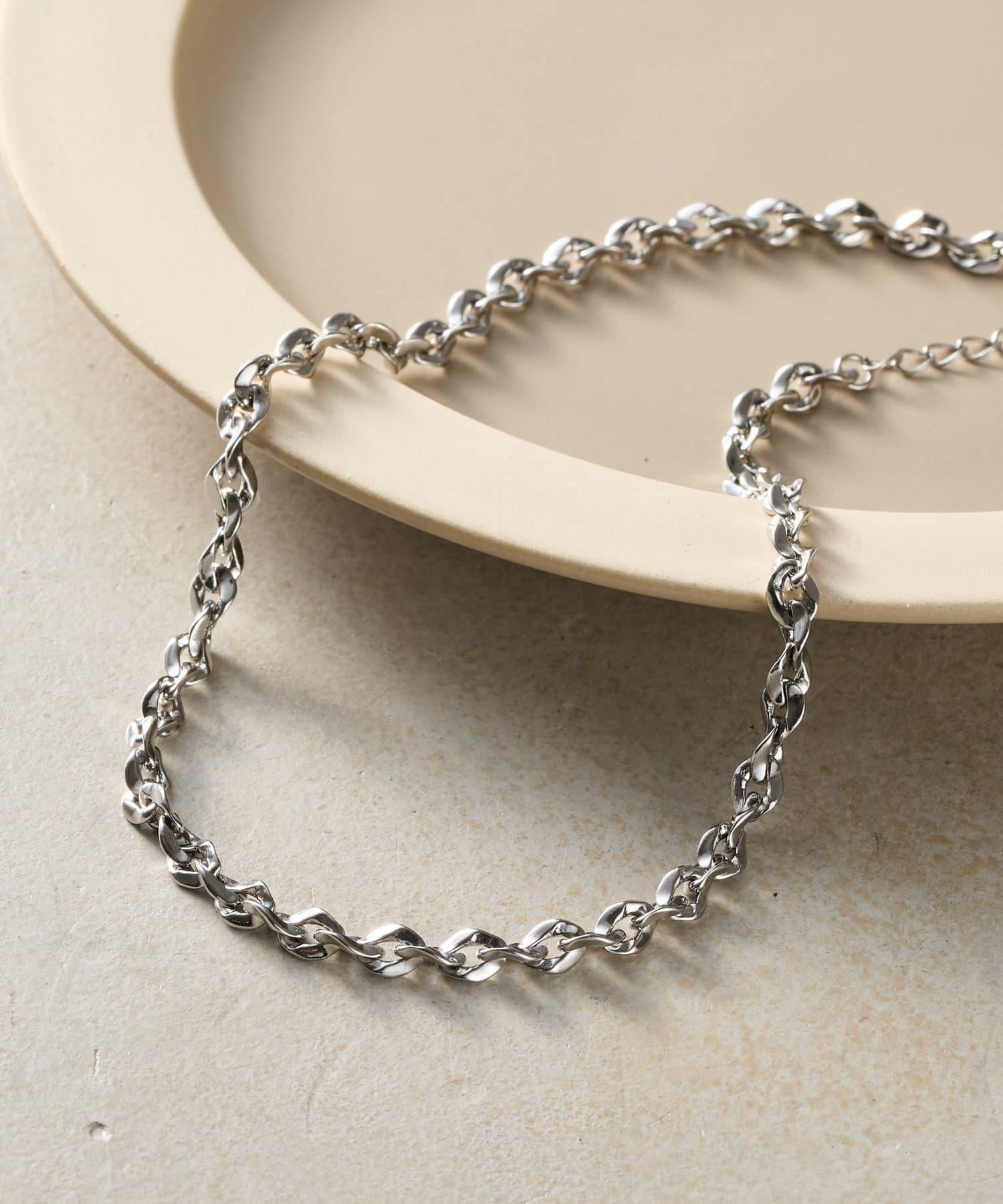 這款扭轉曲線鏈條項鍊由一系列美麗的立體扭轉鏈條組成,鏈條在移動過程中會反射出光線。