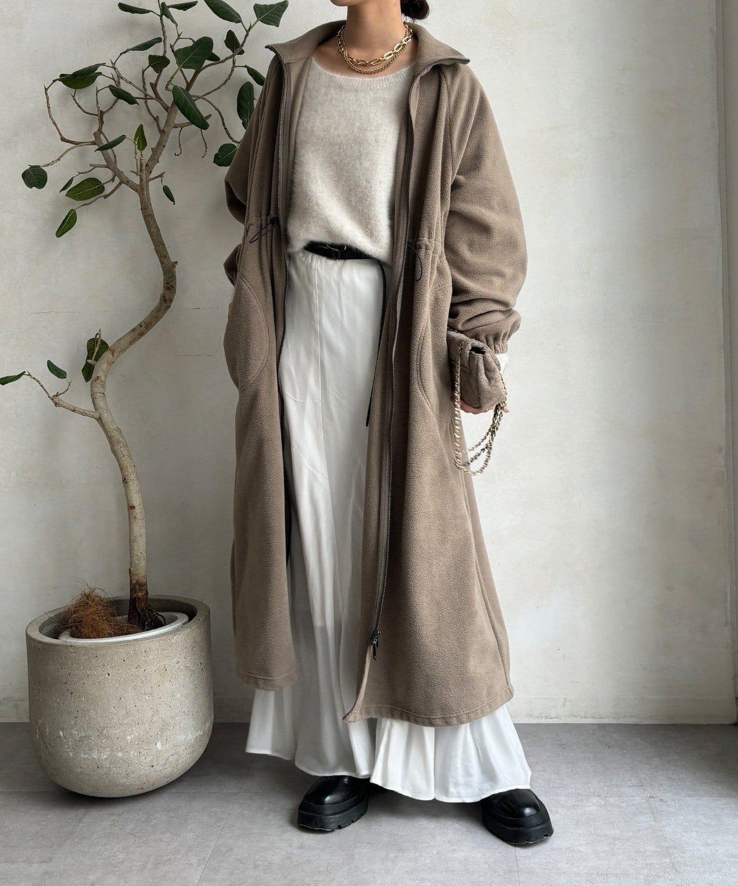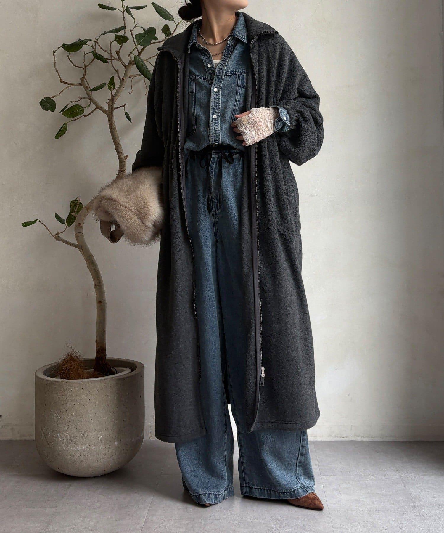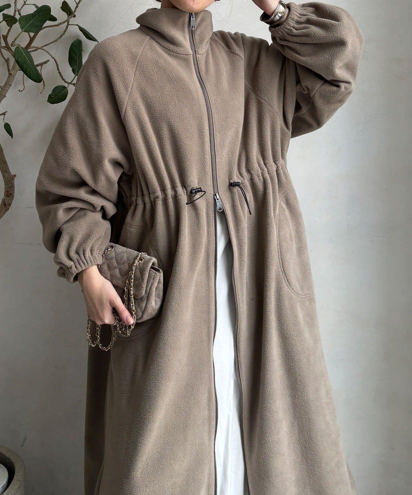 抓絨長款大衣