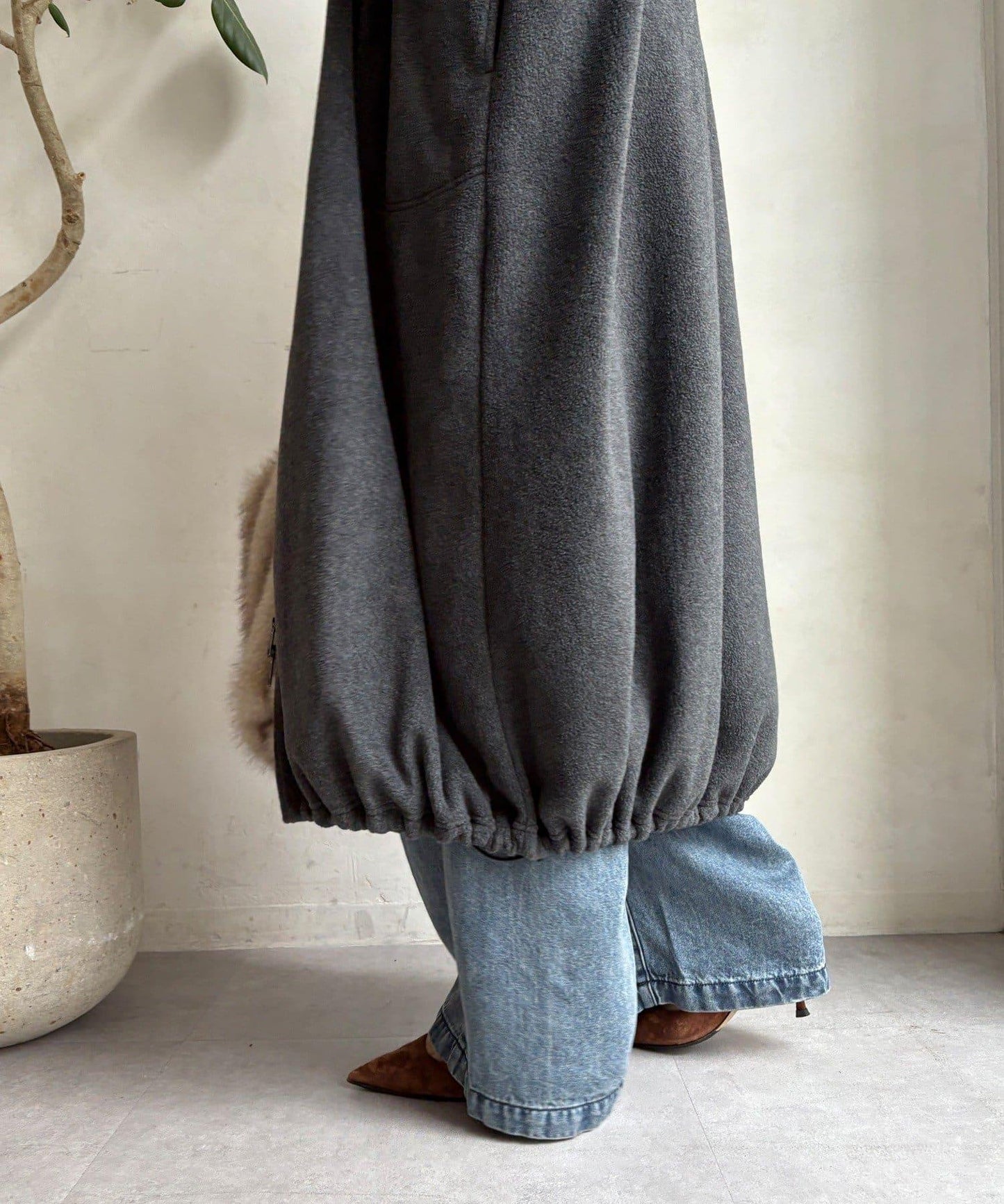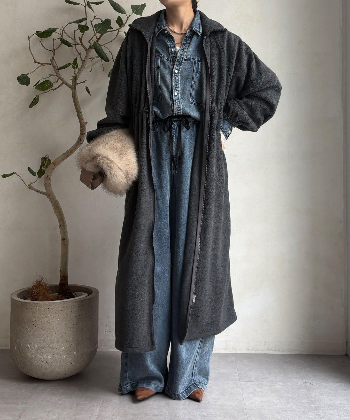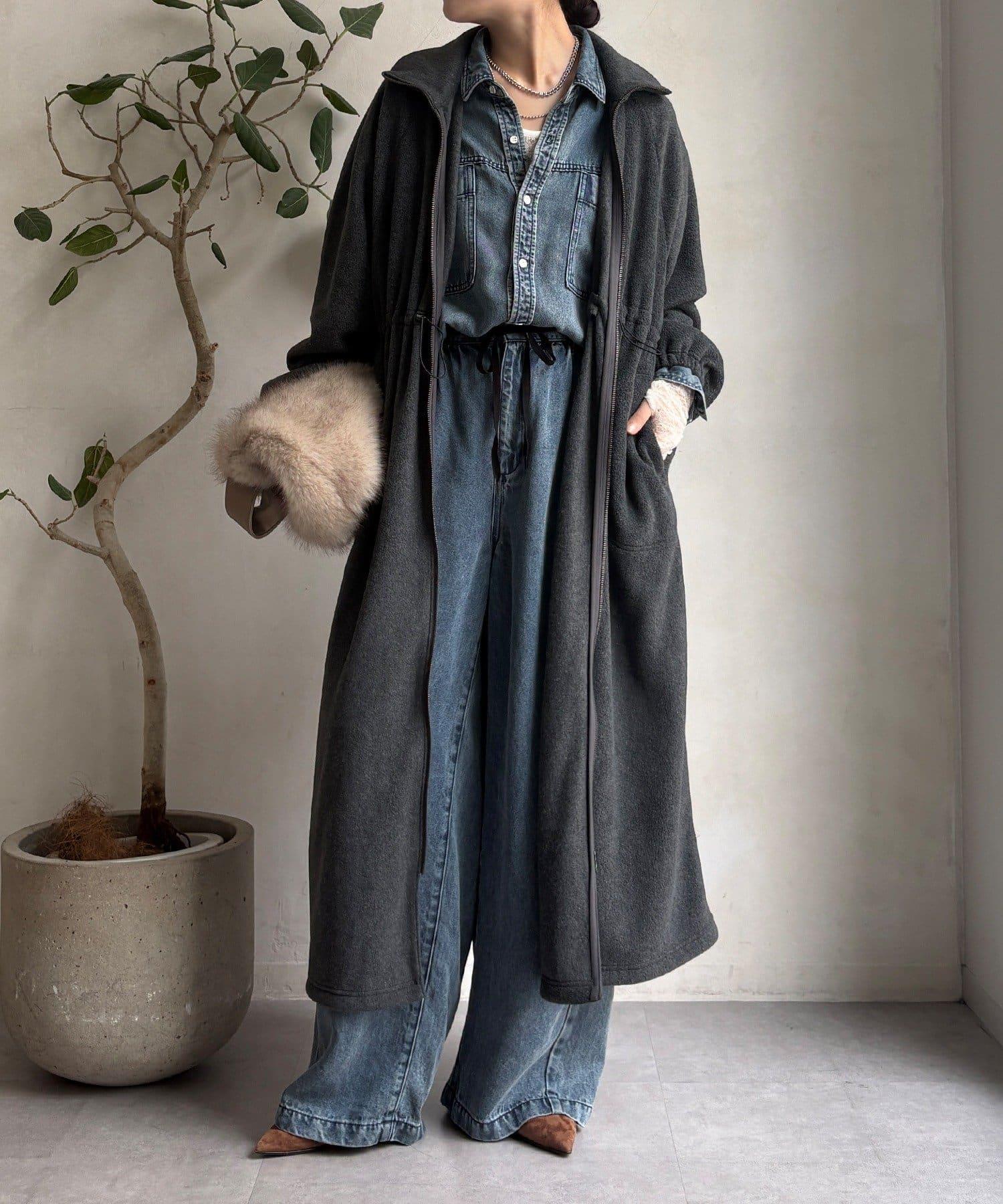 抓絨長款大衣