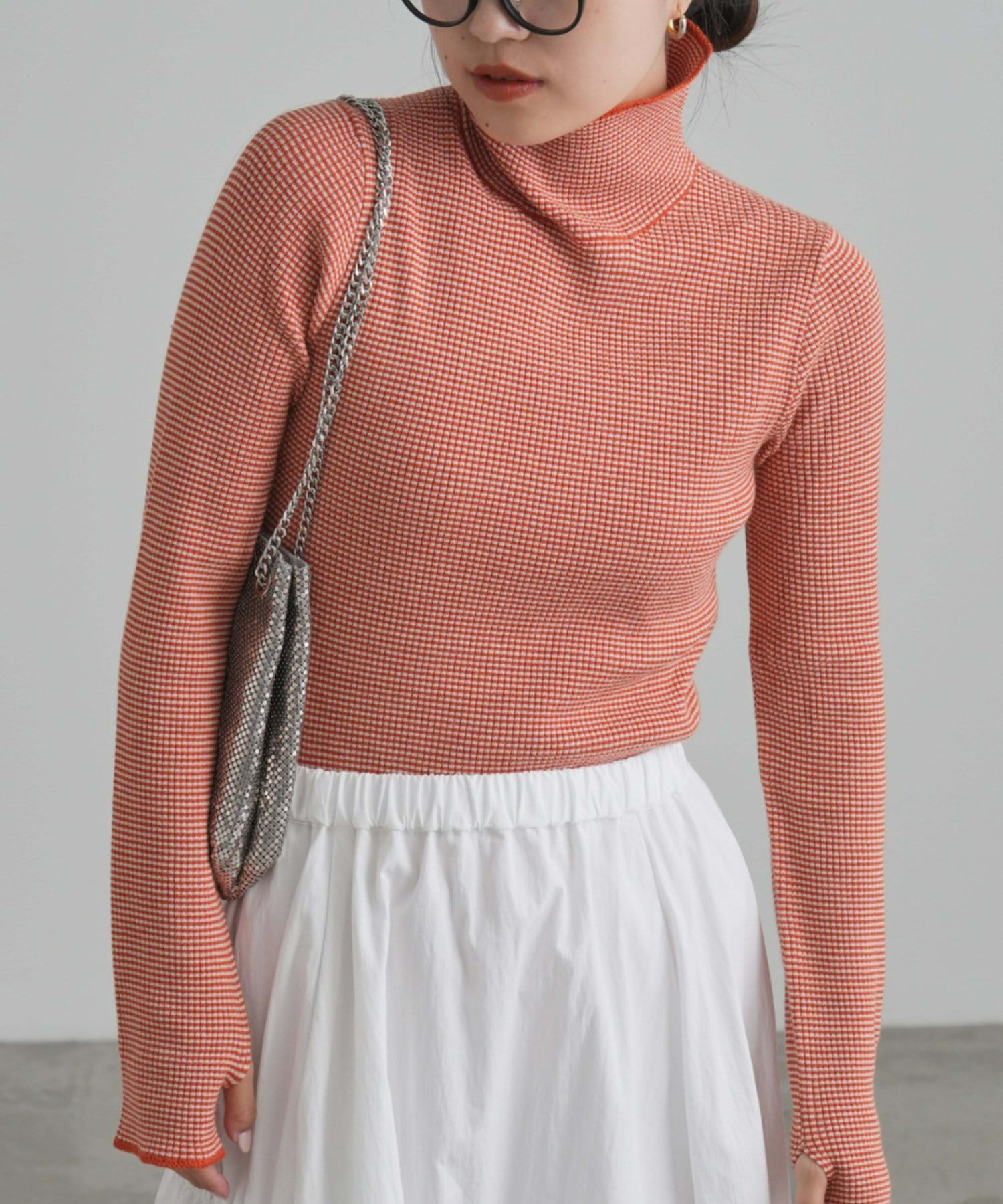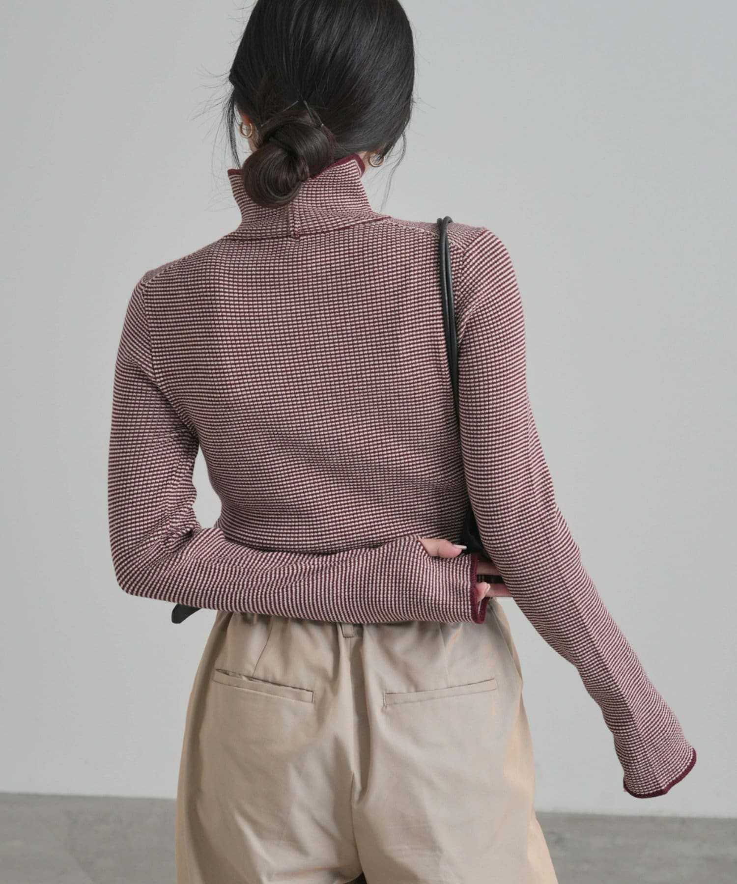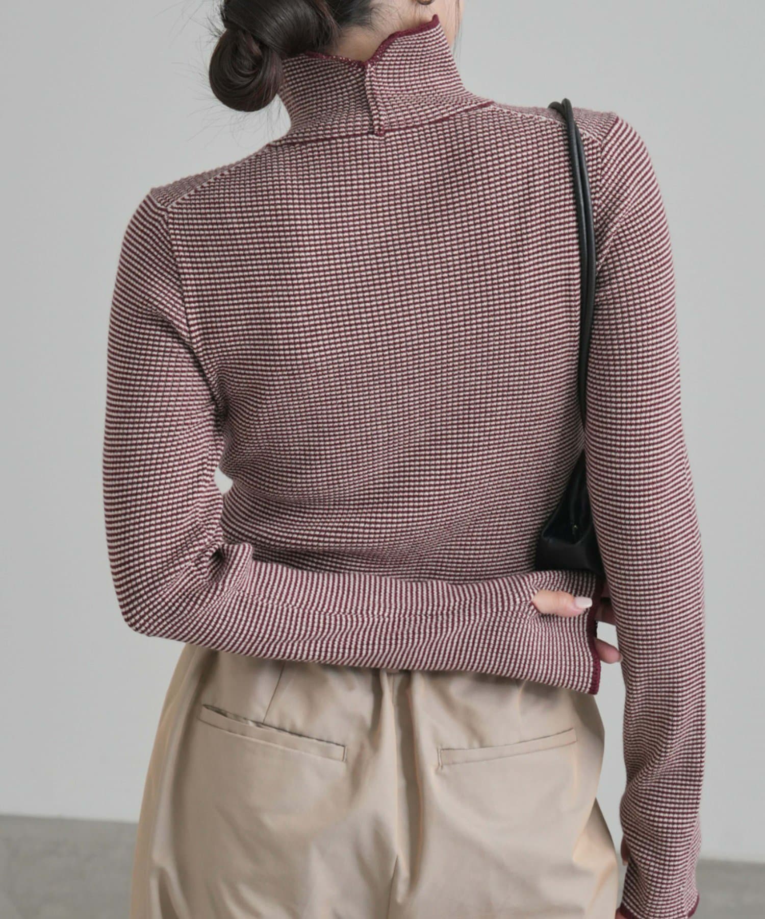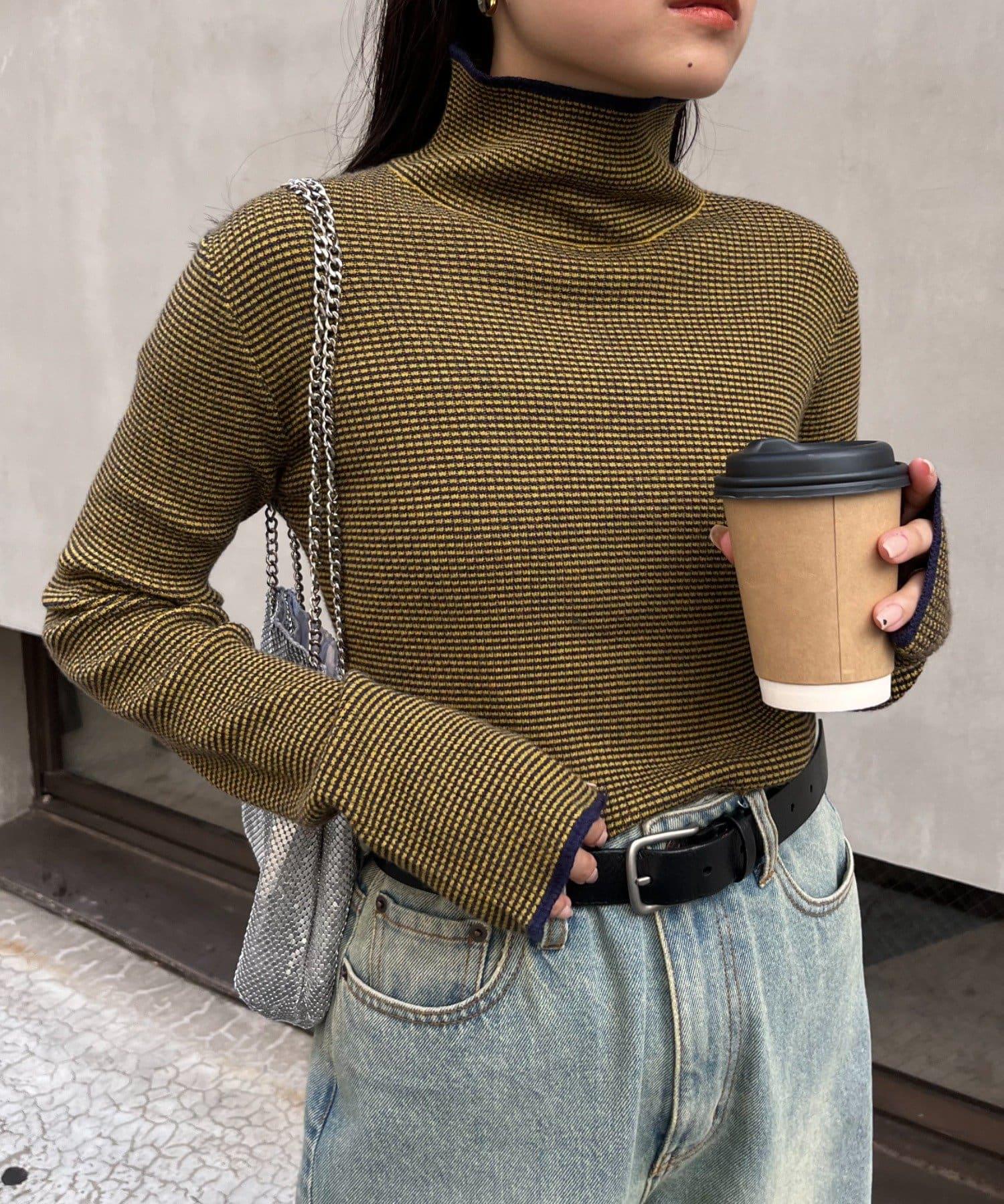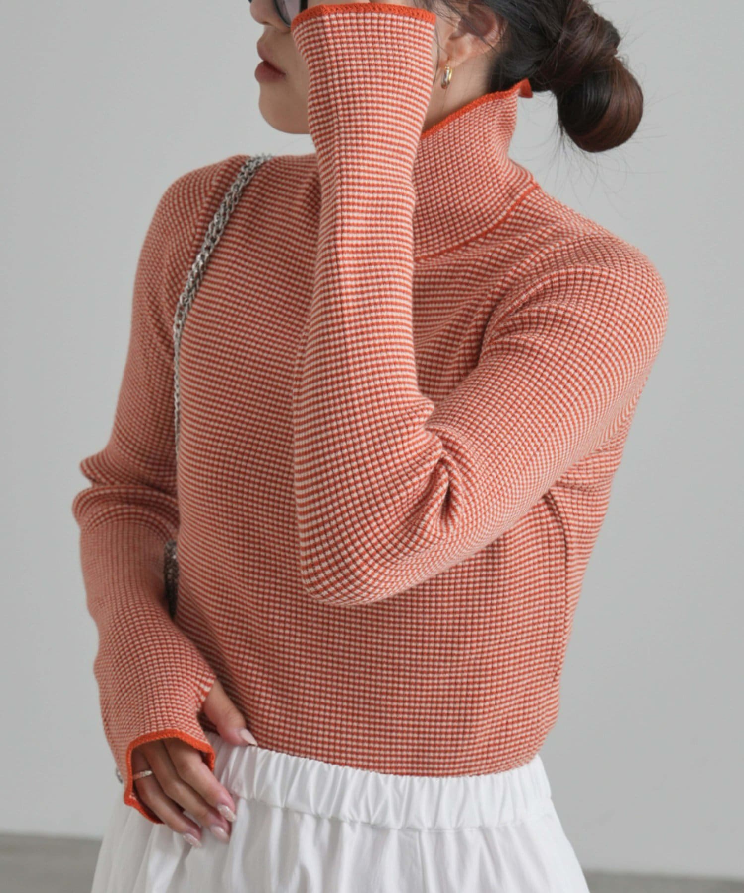 高領針織衫採用彩色縫線和邊框,即使單穿也很時尚。