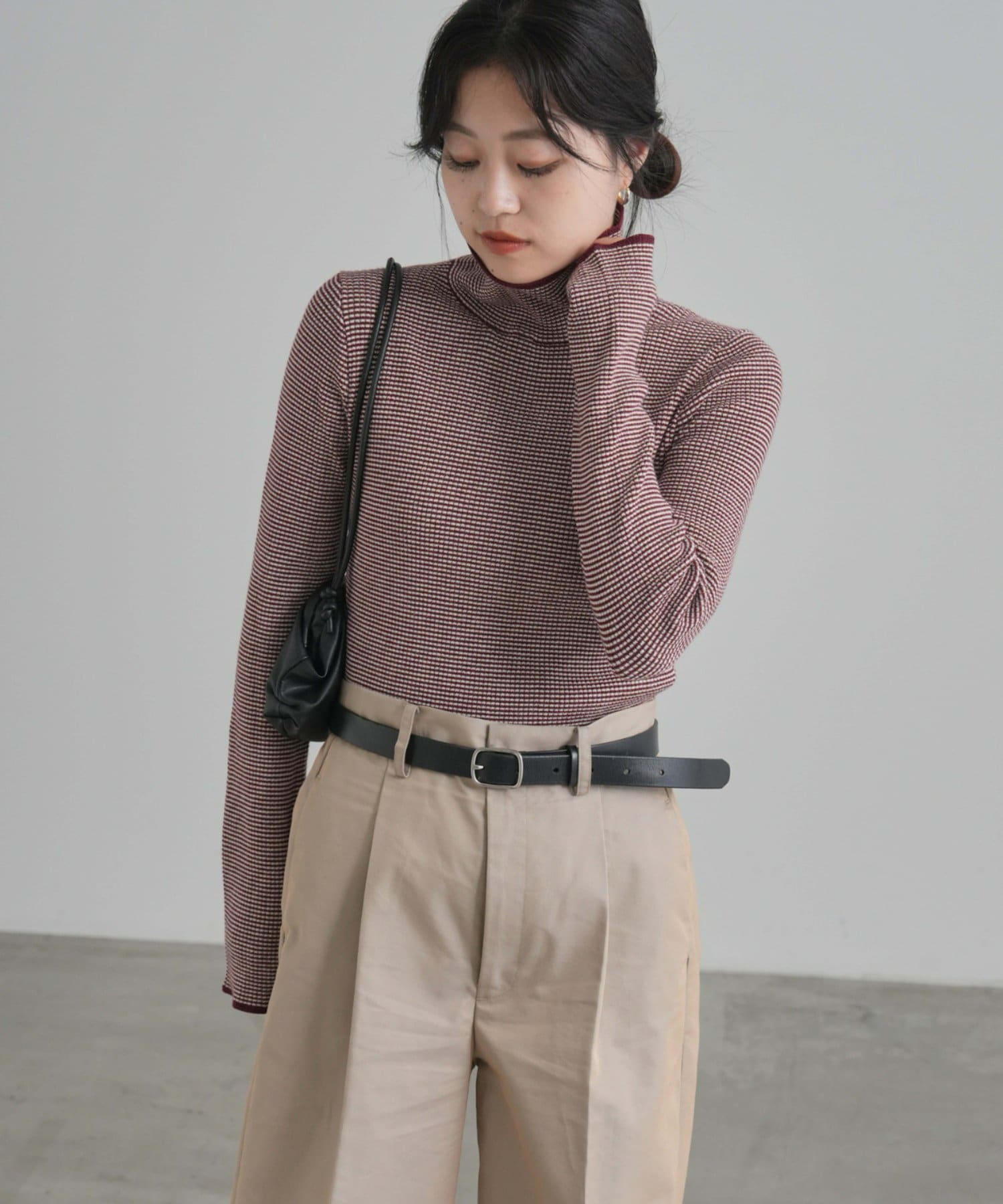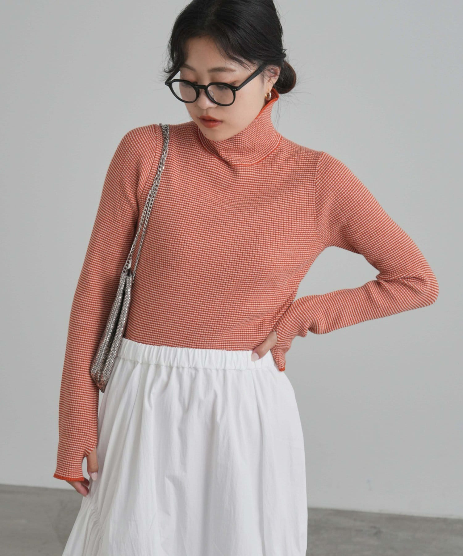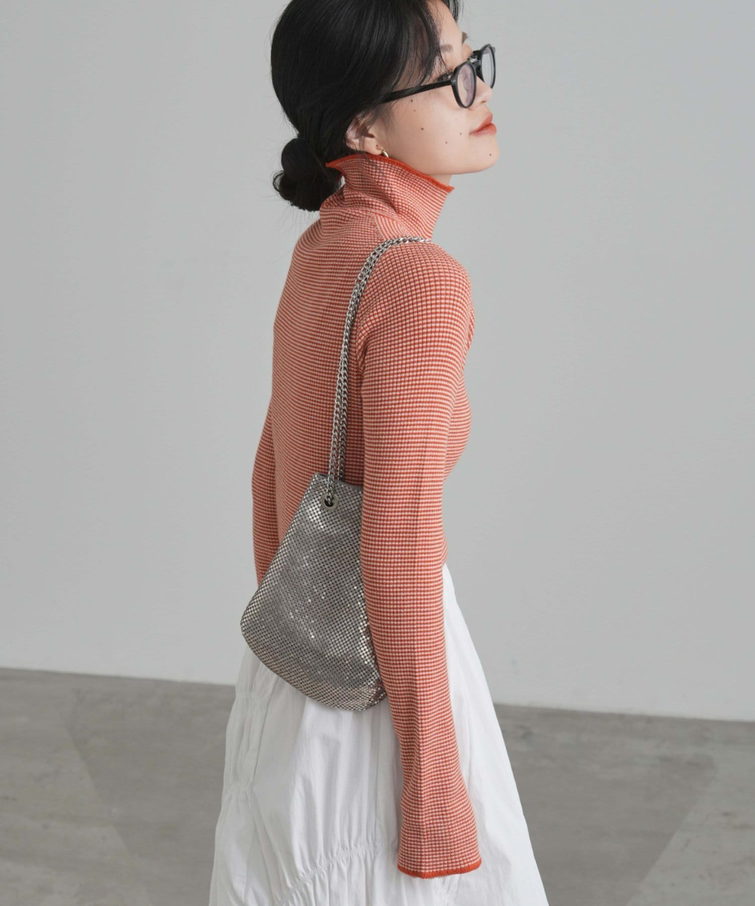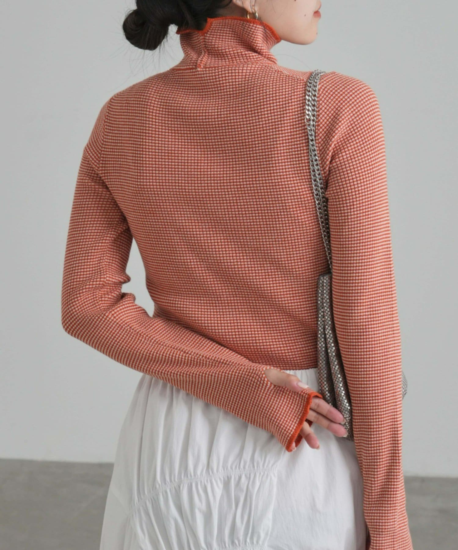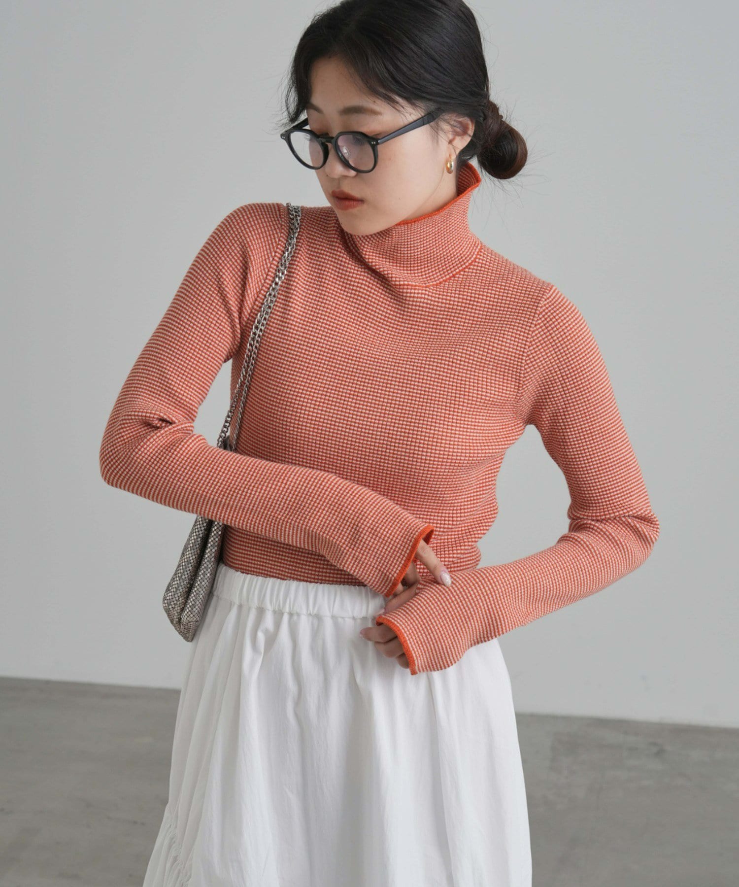 高領針織衫採用彩色縫線和邊框,即使單穿也很時尚。