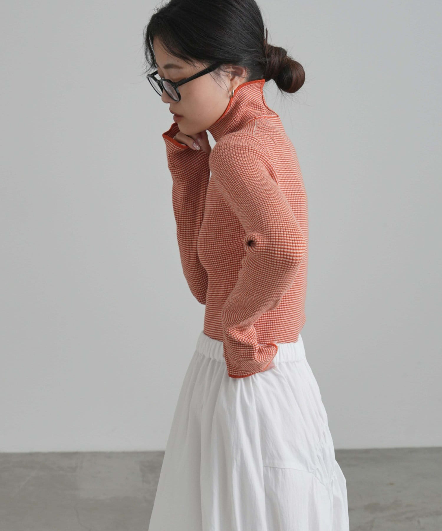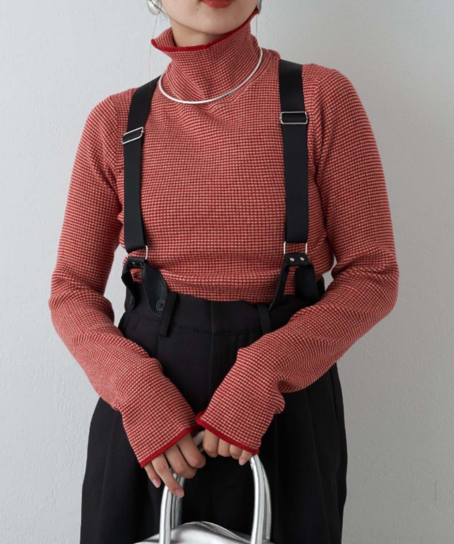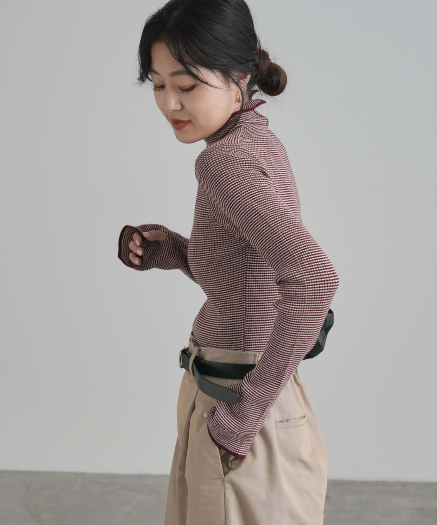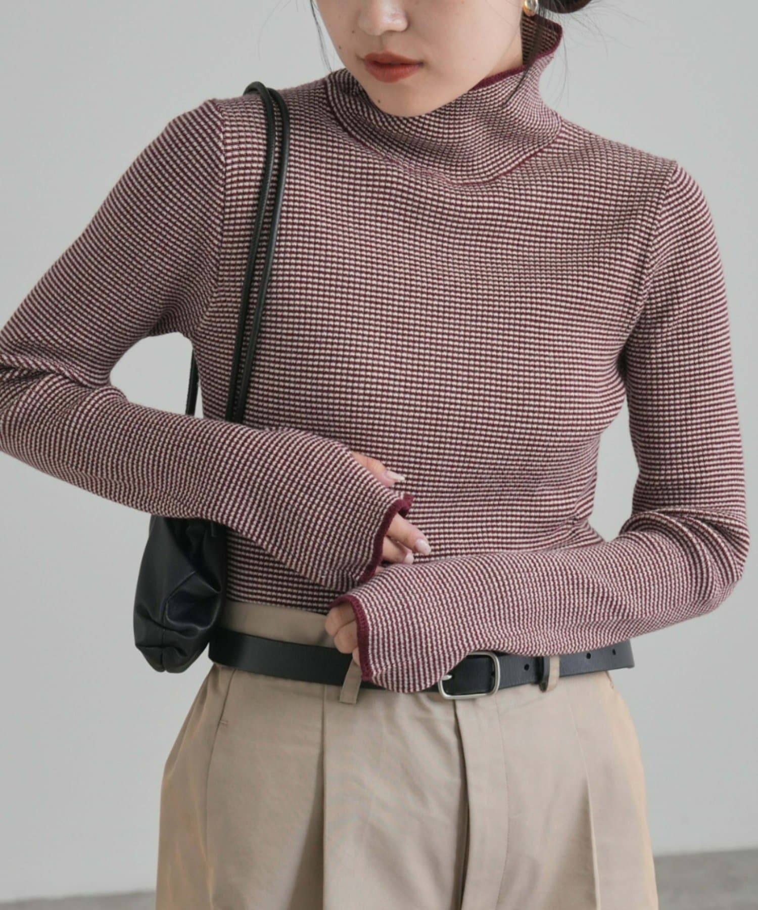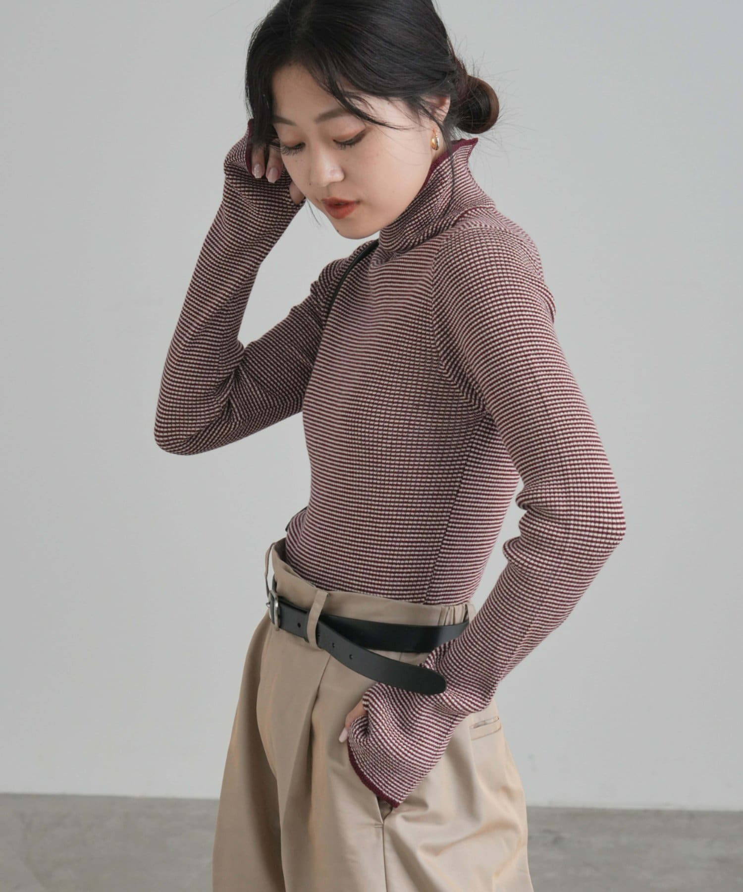 高領針織衫採用彩色縫線和邊框,即使單穿也很時尚。