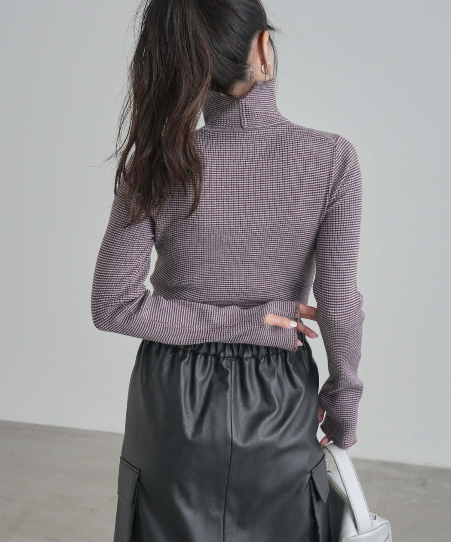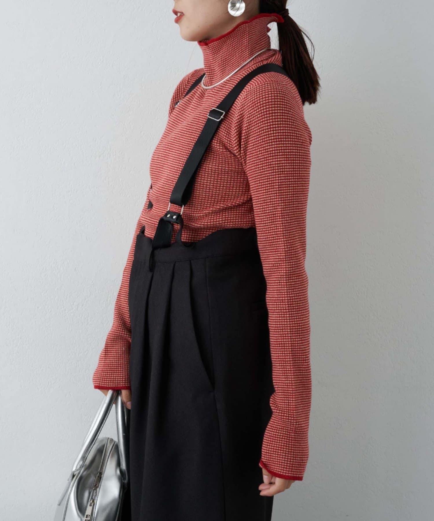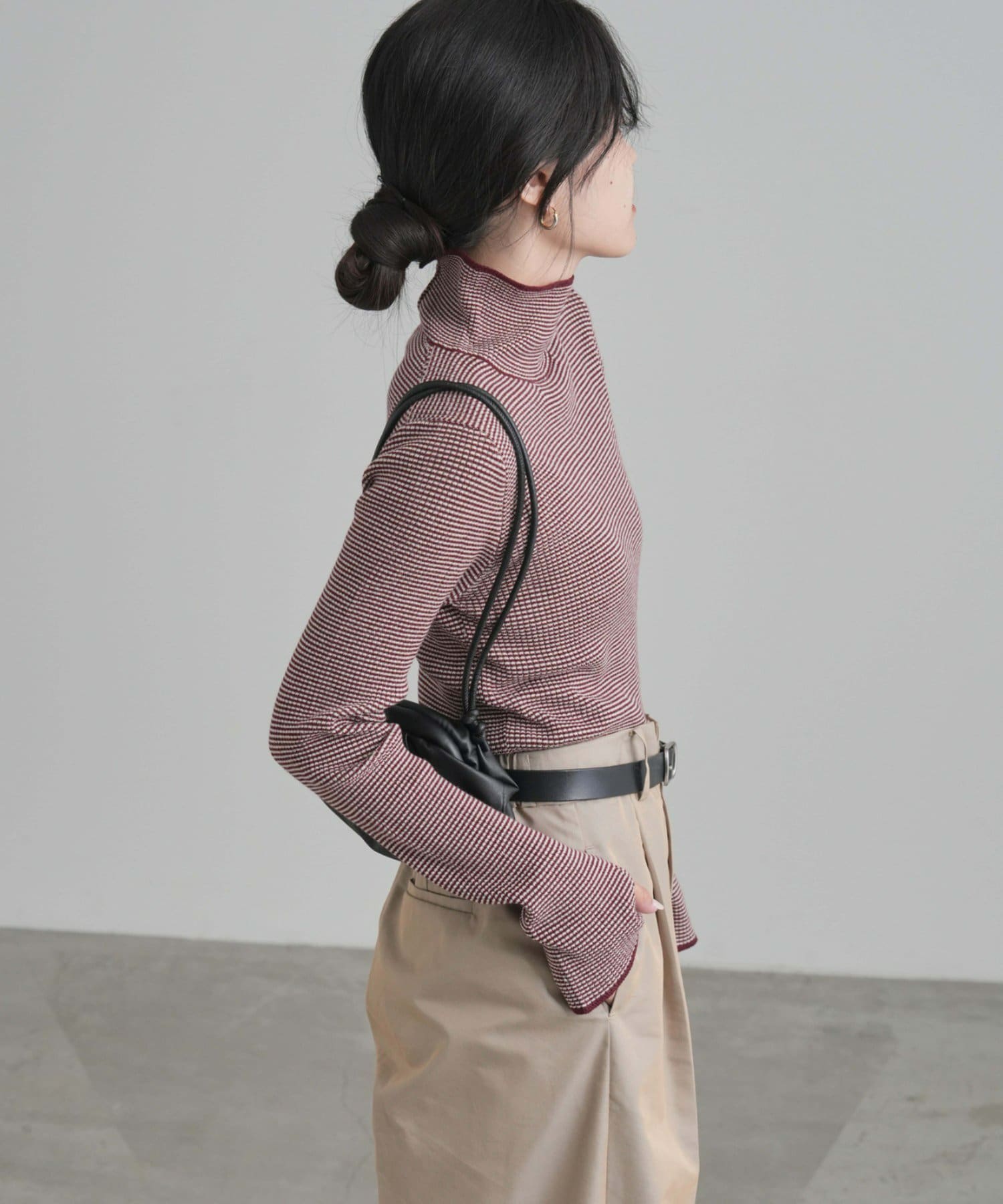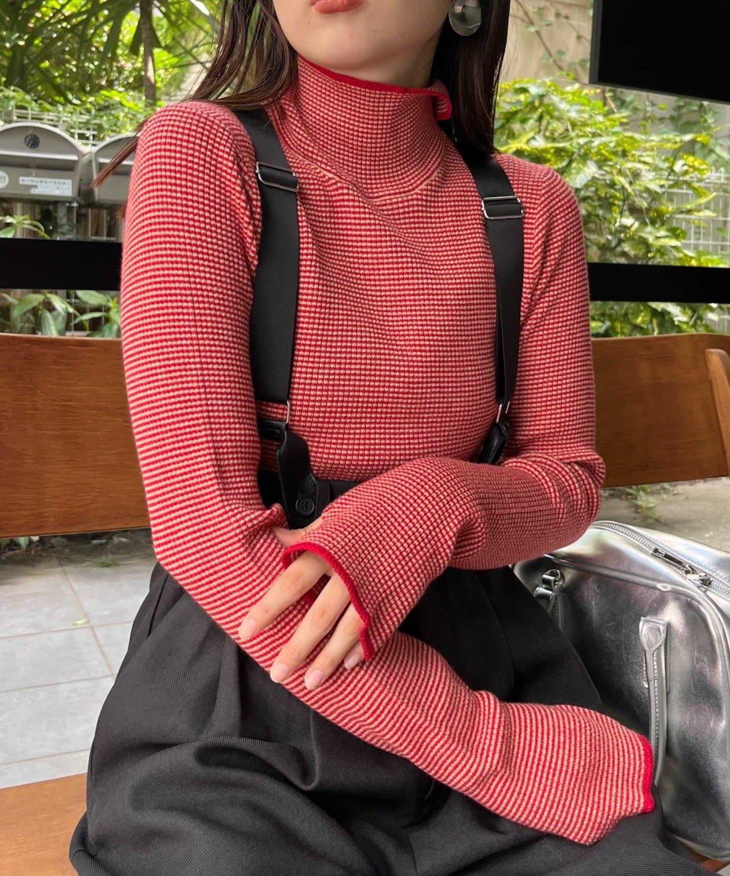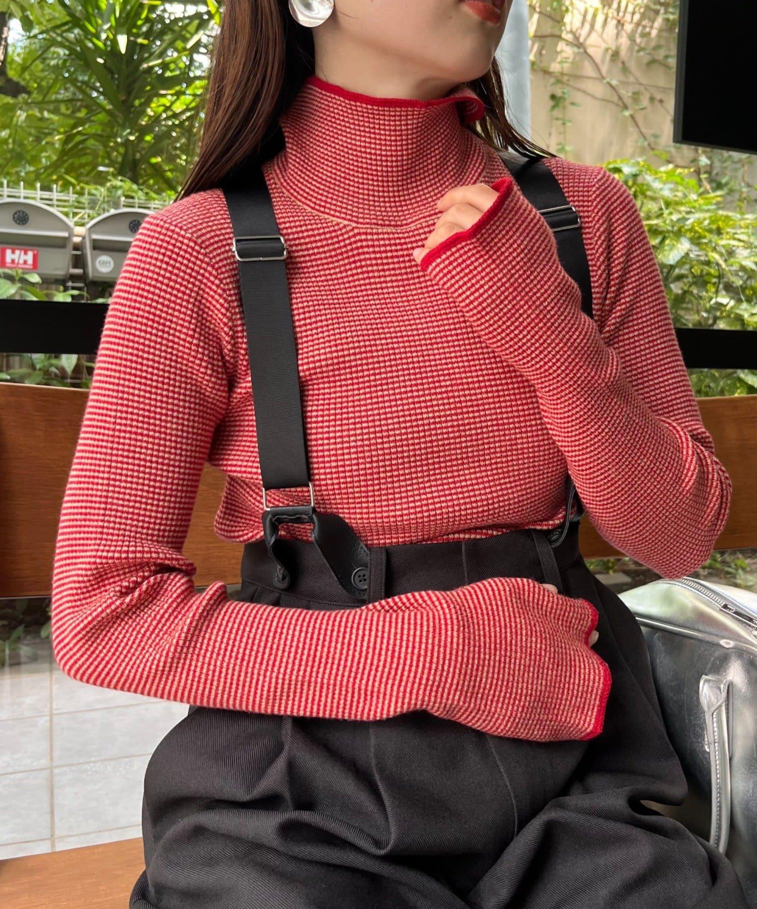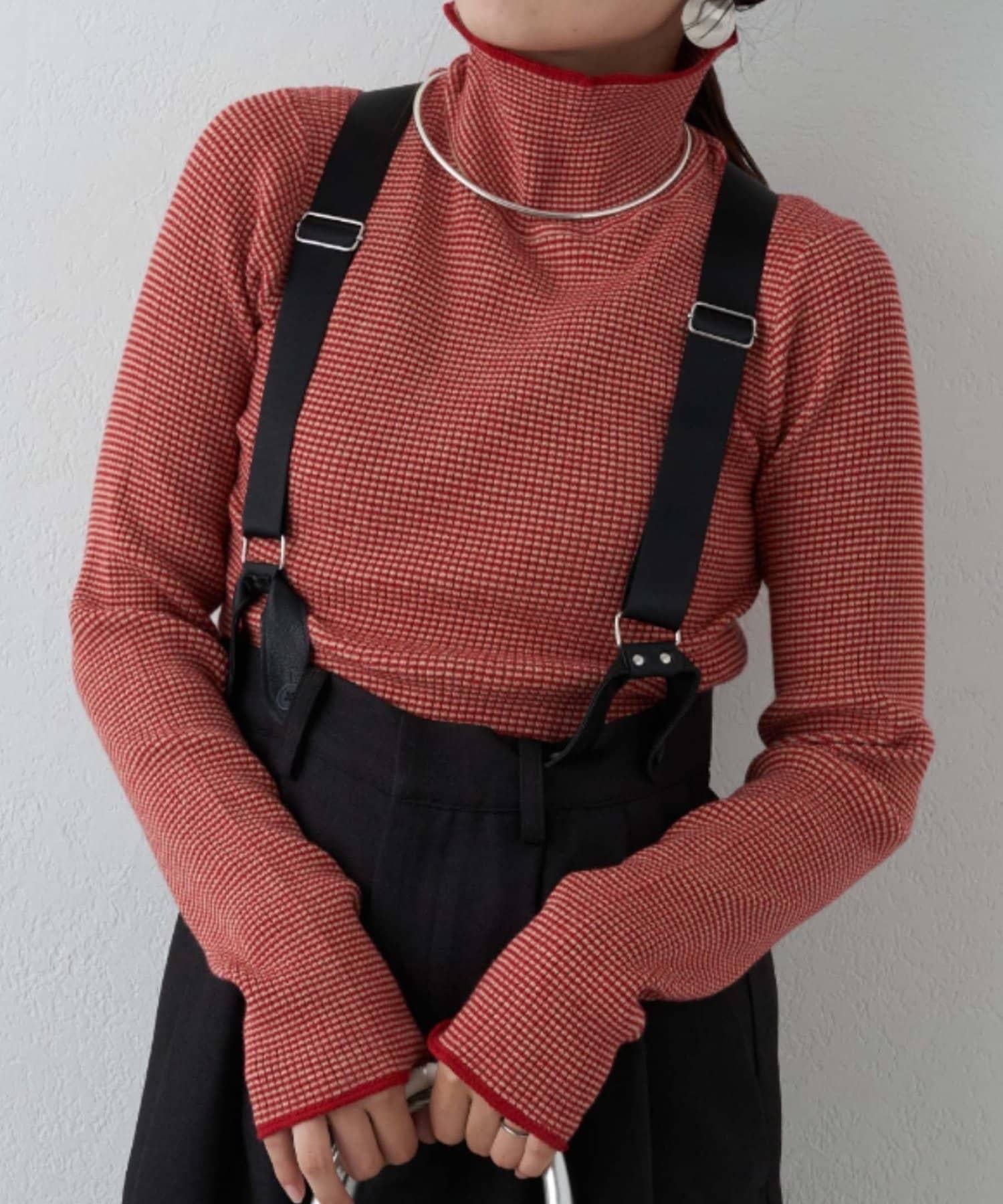 高領針織衫採用彩色縫線和邊框,即使單穿也很時尚。
