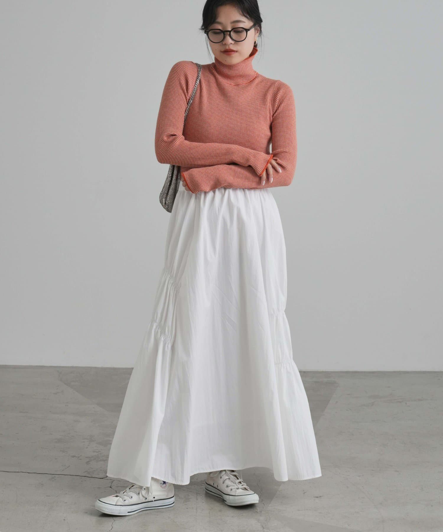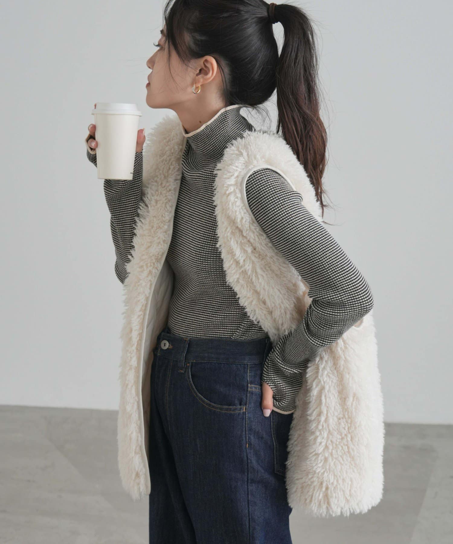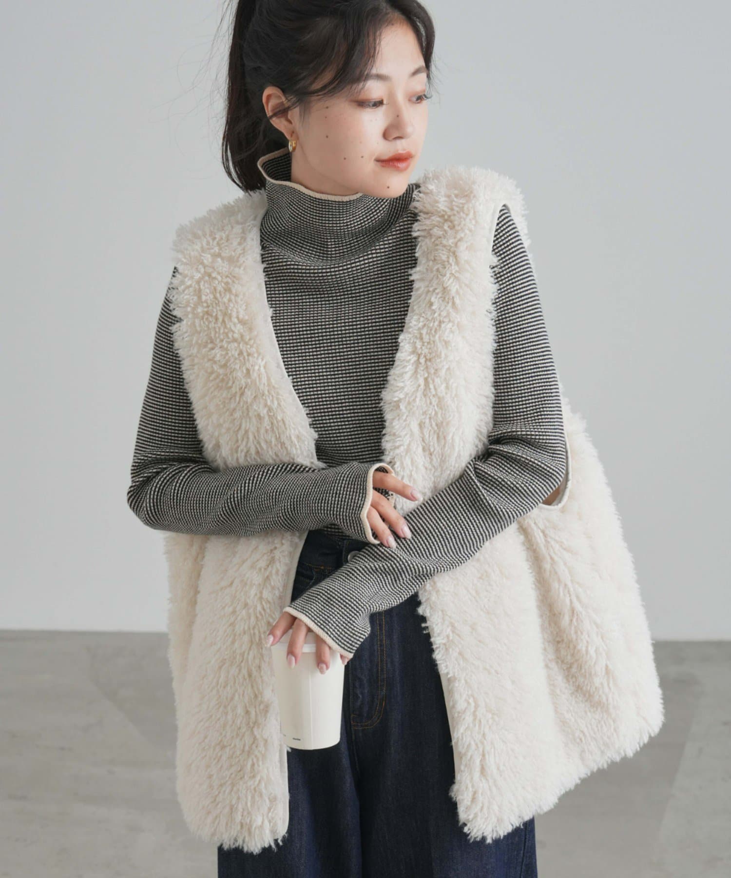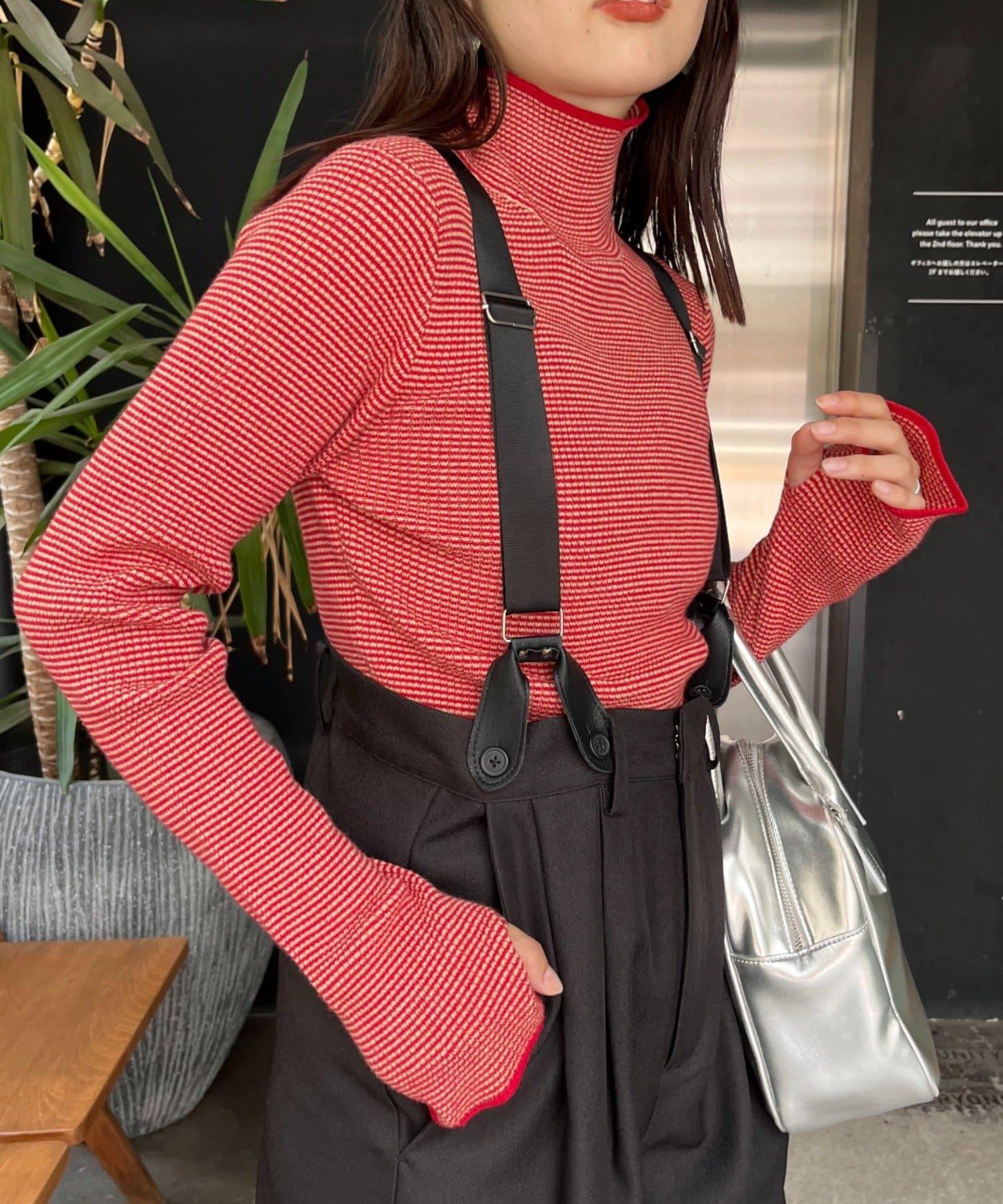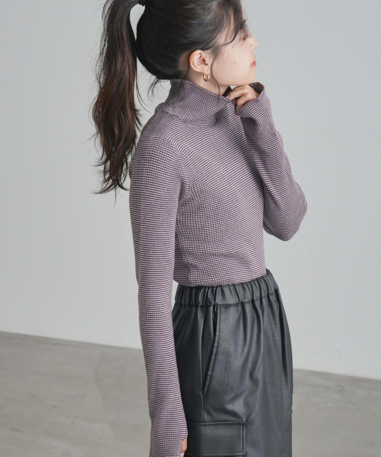 高領針織衫採用彩色縫線和邊框,即使單穿也很時尚。