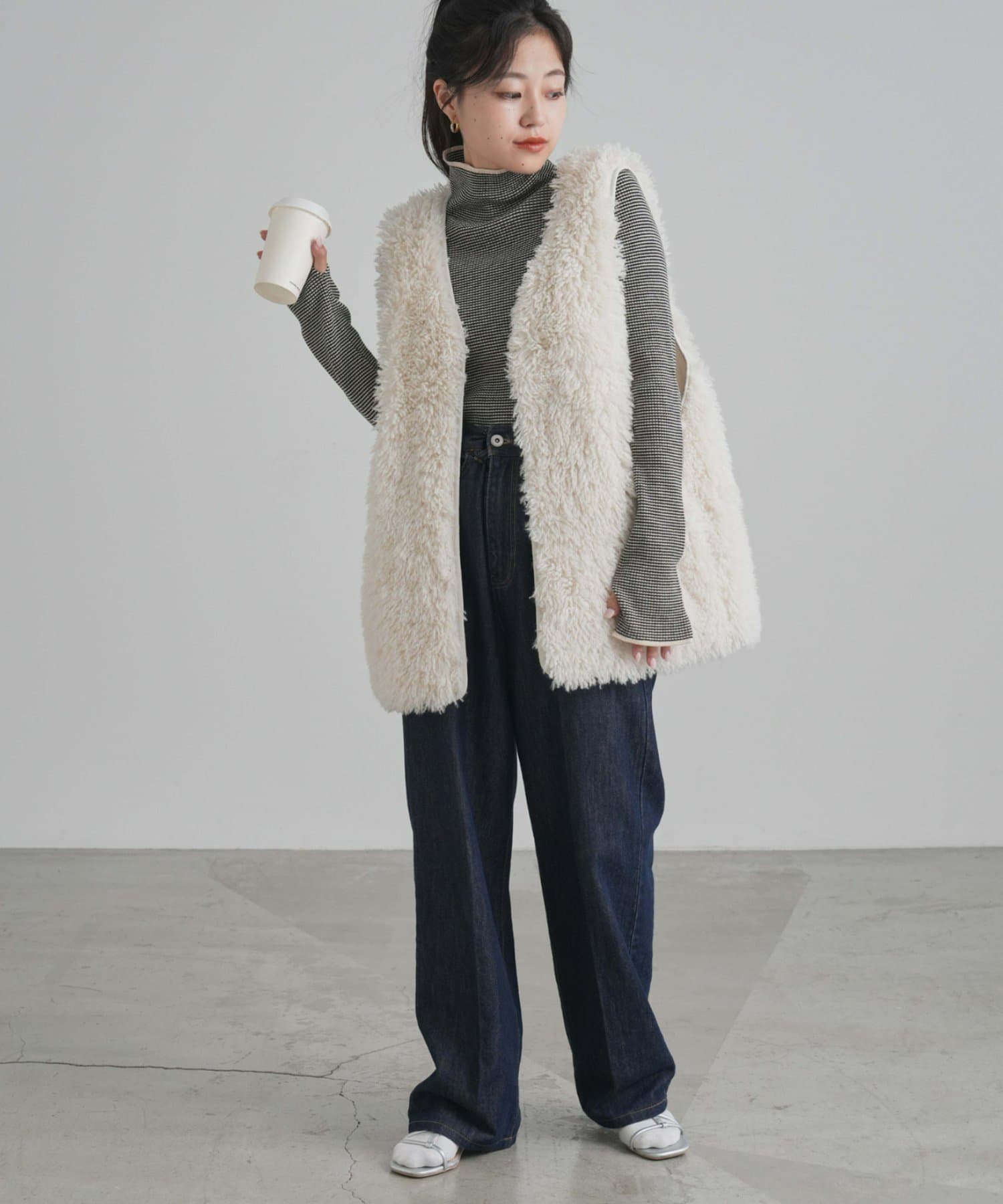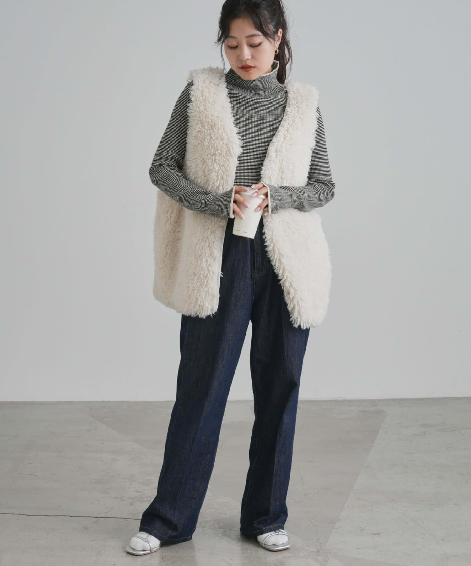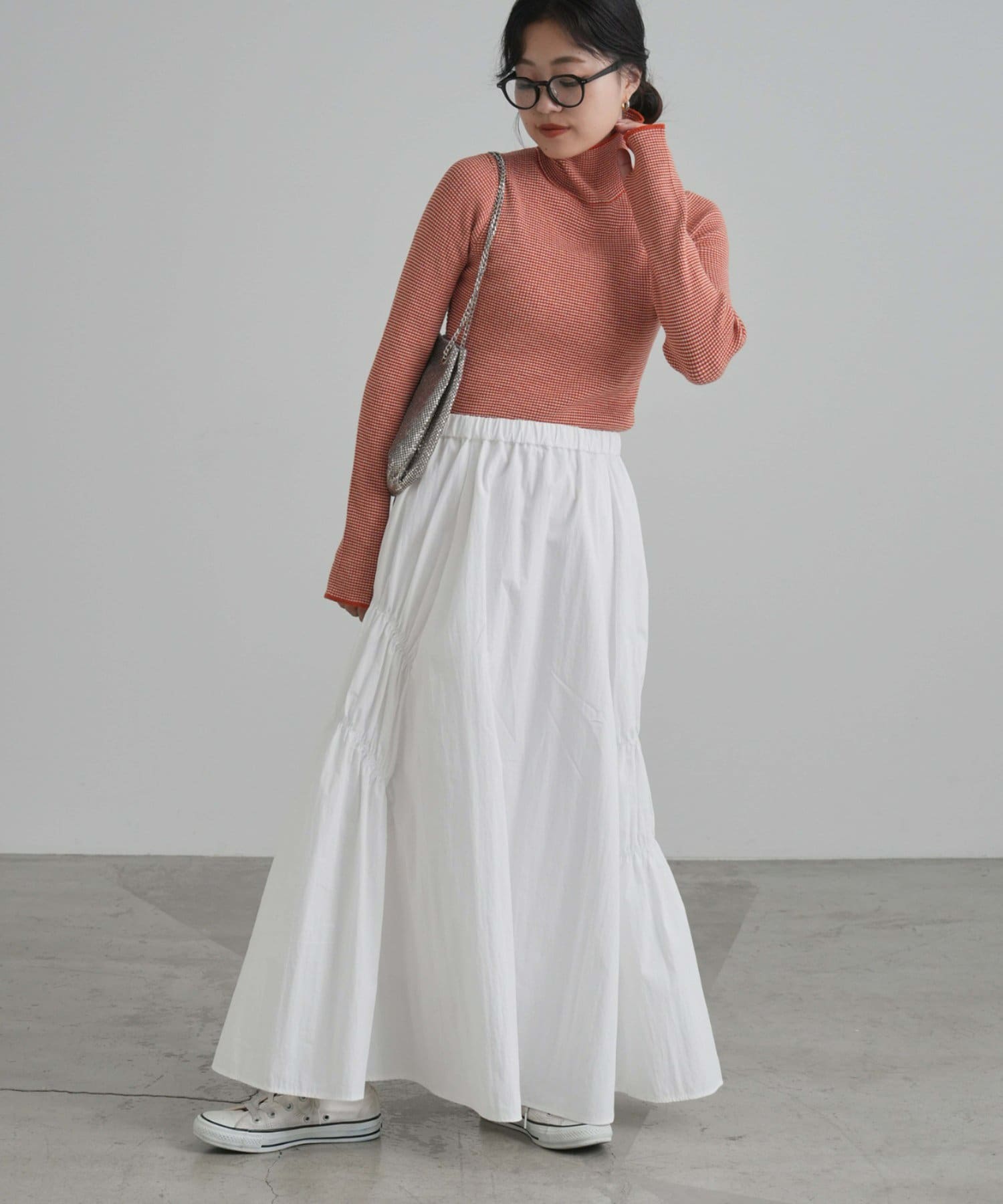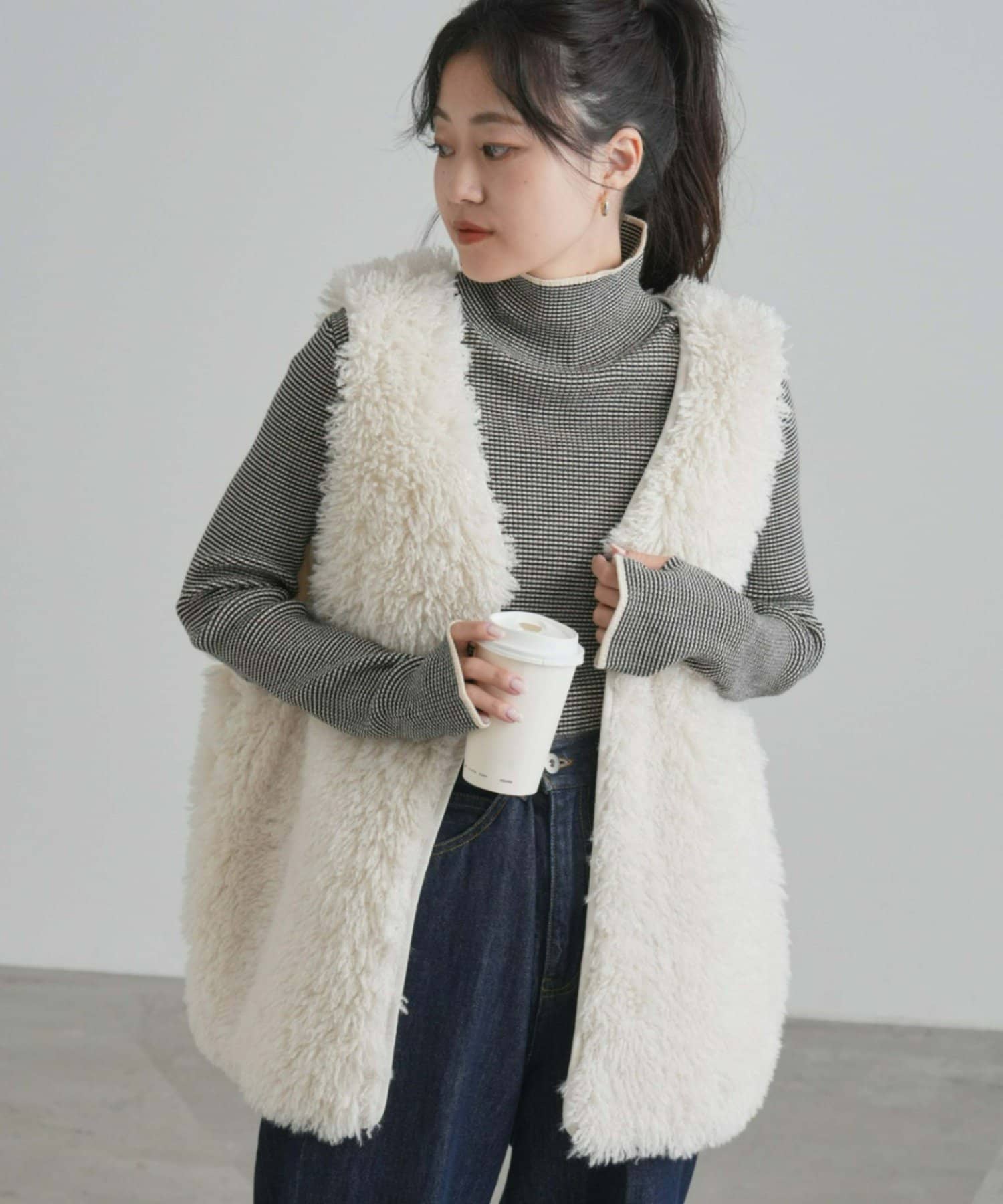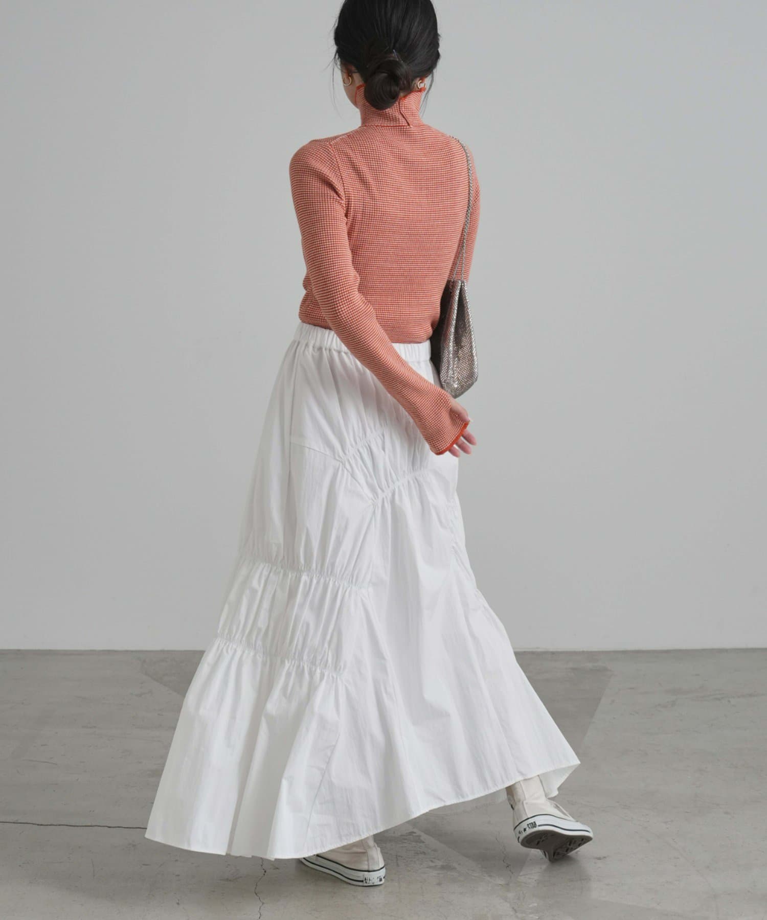 高領針織衫採用彩色縫線和邊框,即使單穿也很時尚。