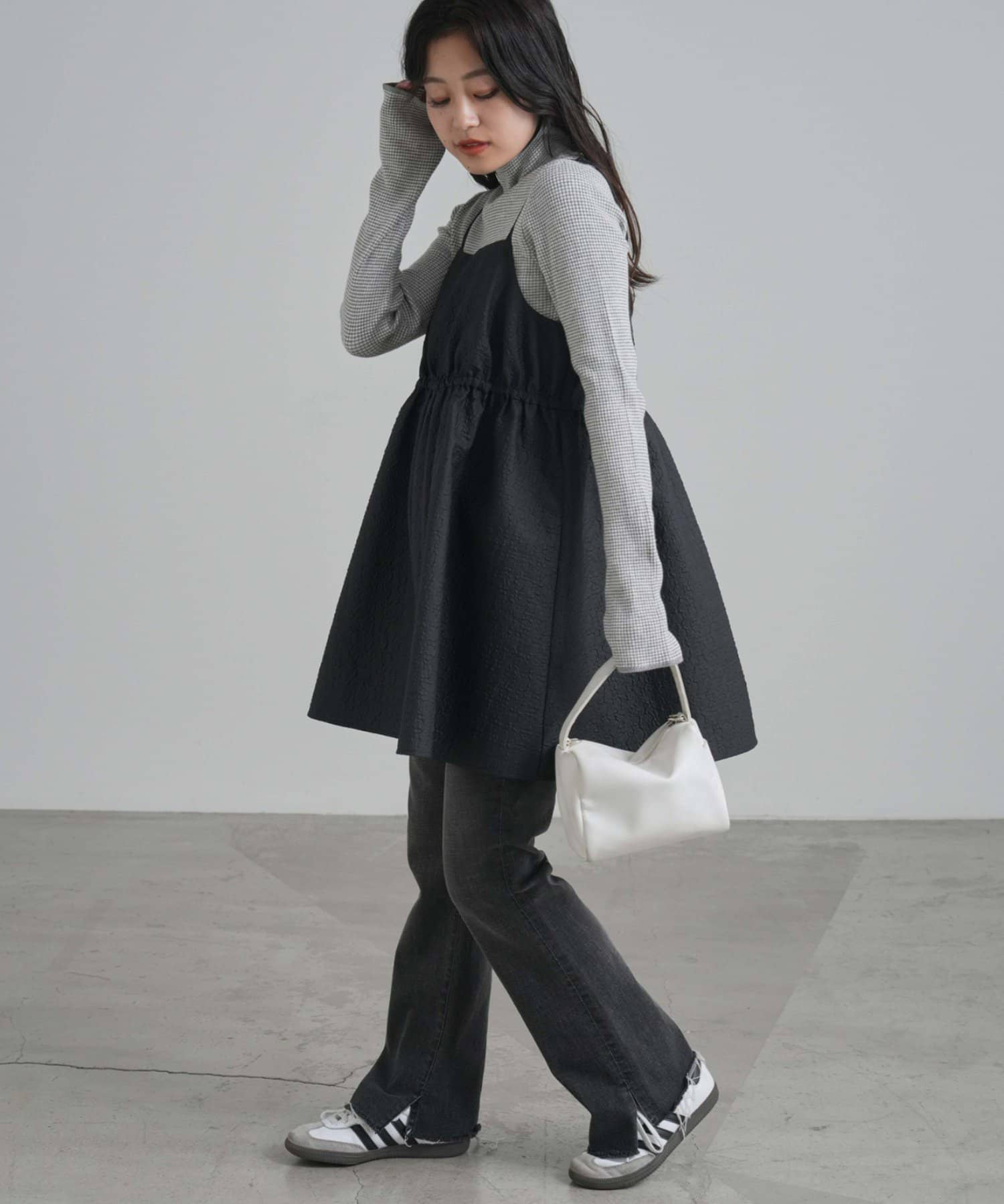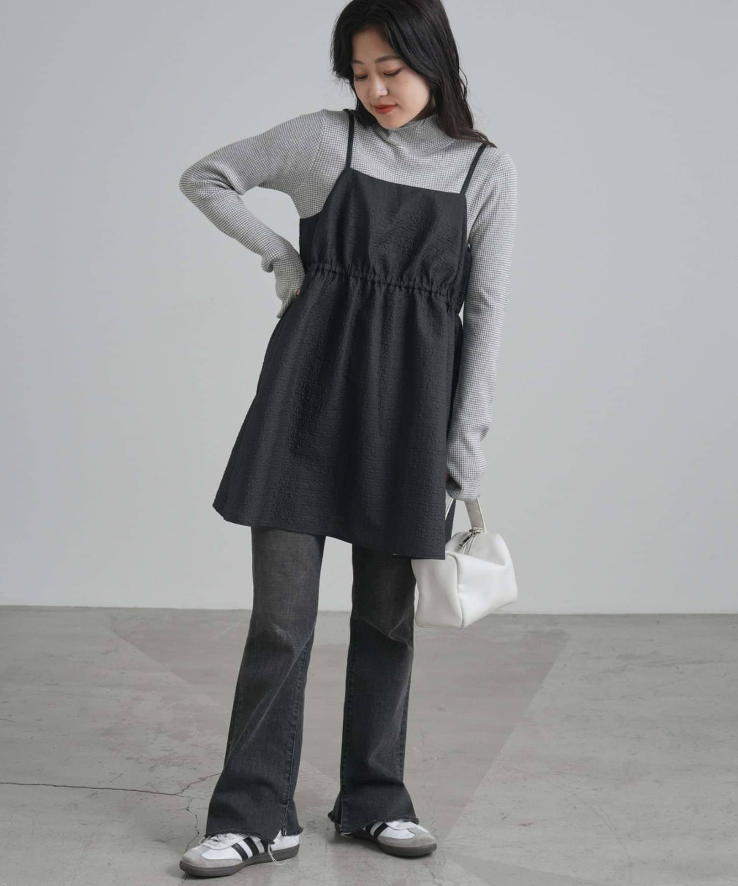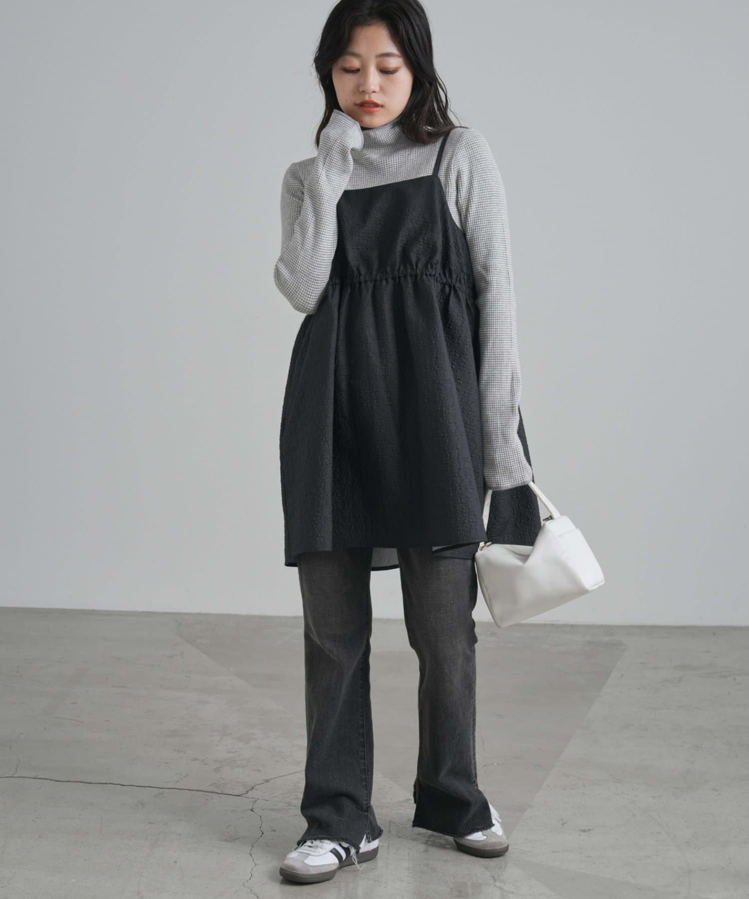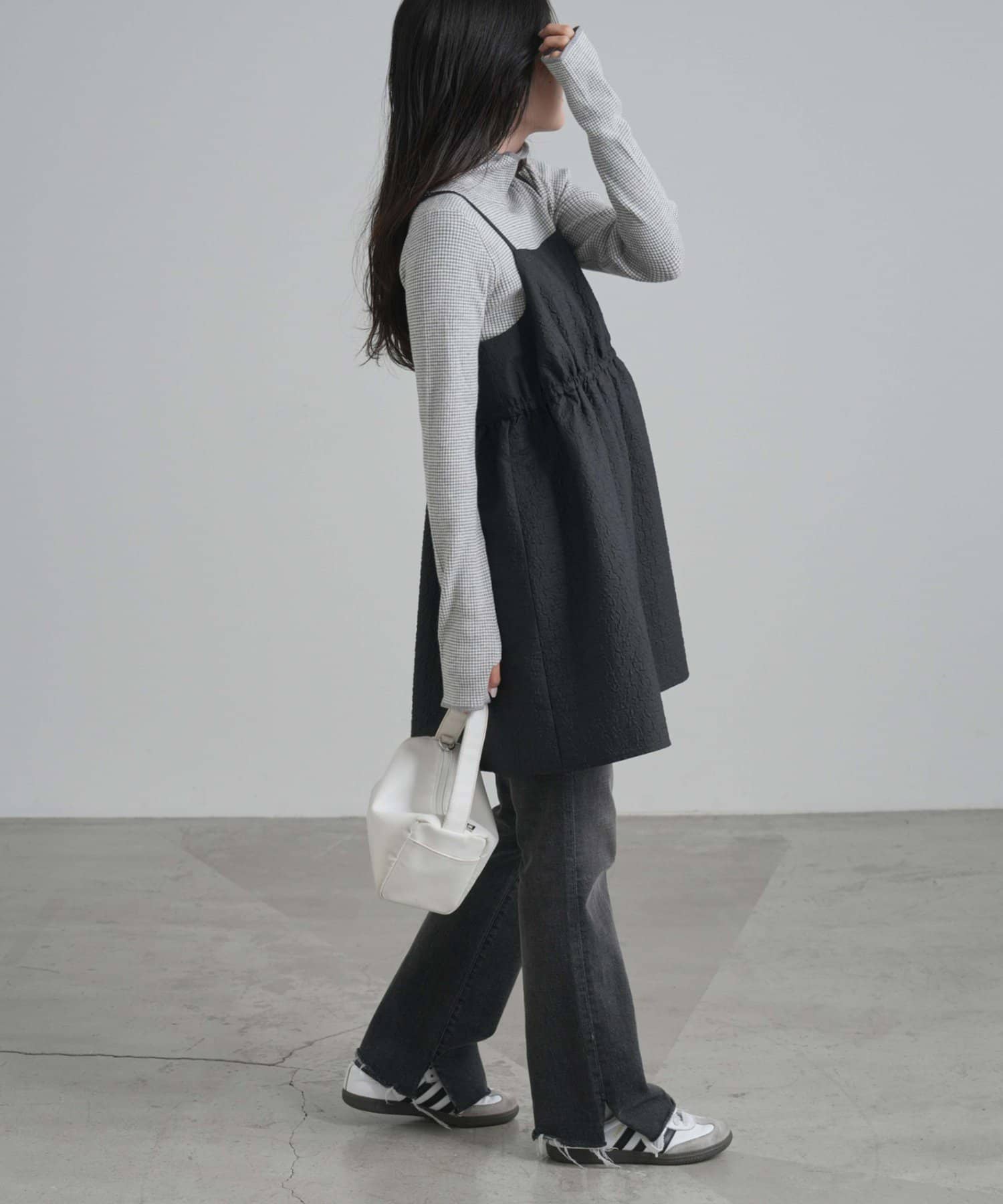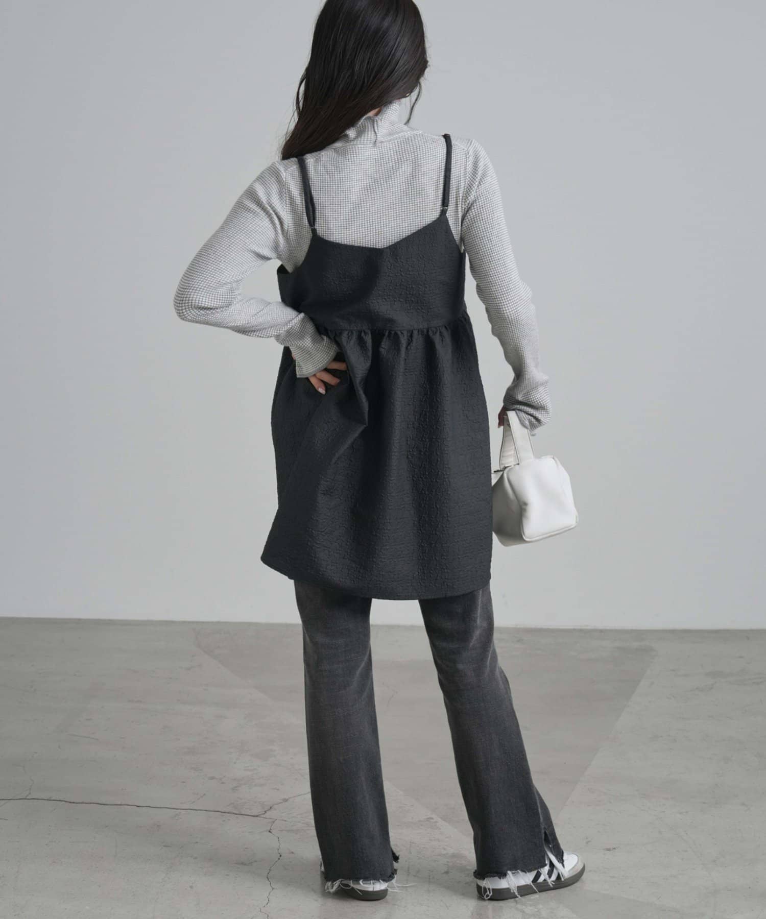 這款單品可單獨穿著,也可作為工裝褲或吊帶裙的內搭。