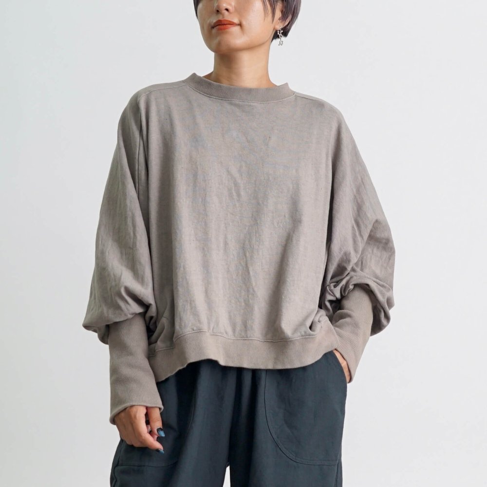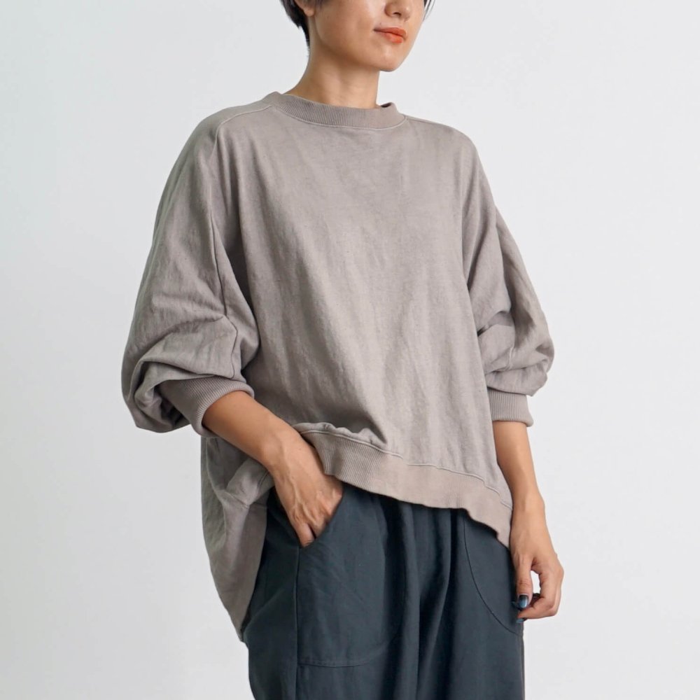 在充分利用多爾曼袖的同時,採用了時尚簡潔的製作方法,即使穿上外衣也不會顯得臃腫,因此可以放心穿著。當然,也建議穿得隨意一點,把褲子搭配得高大上一點,露出裡面襯衫的一瞥的疊穿款式也很推薦,給人一種季節感。