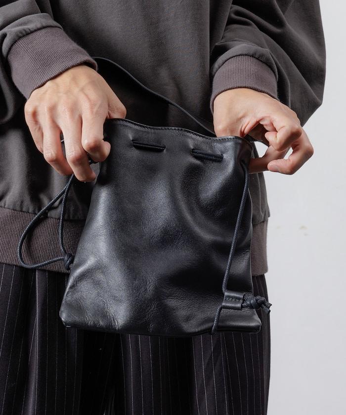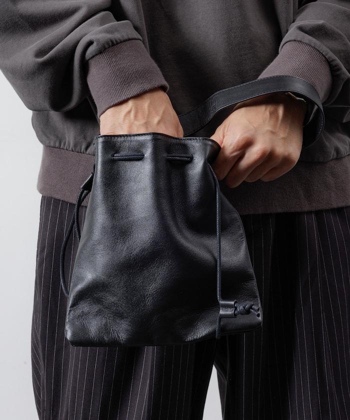 抽繩單手柄手提包 / 牛皮 / 防潑水皮革
