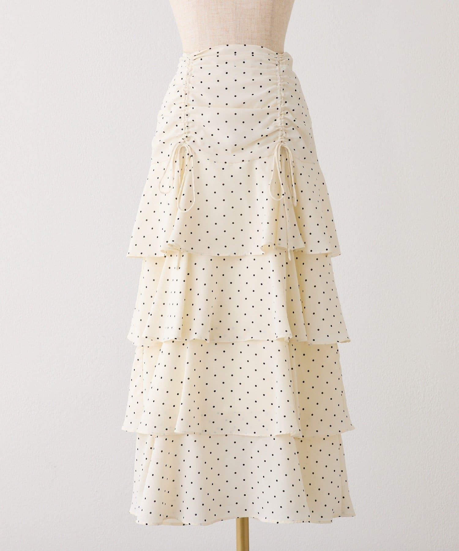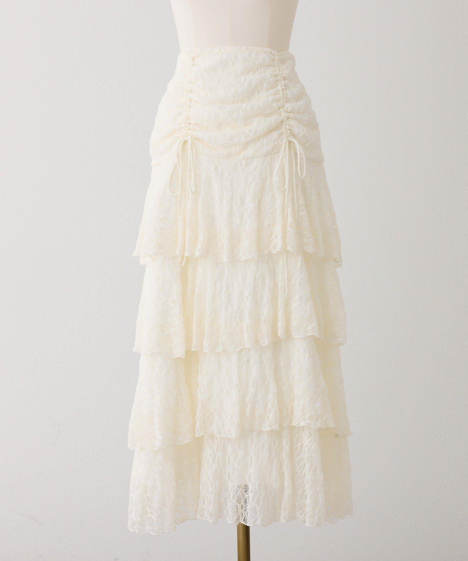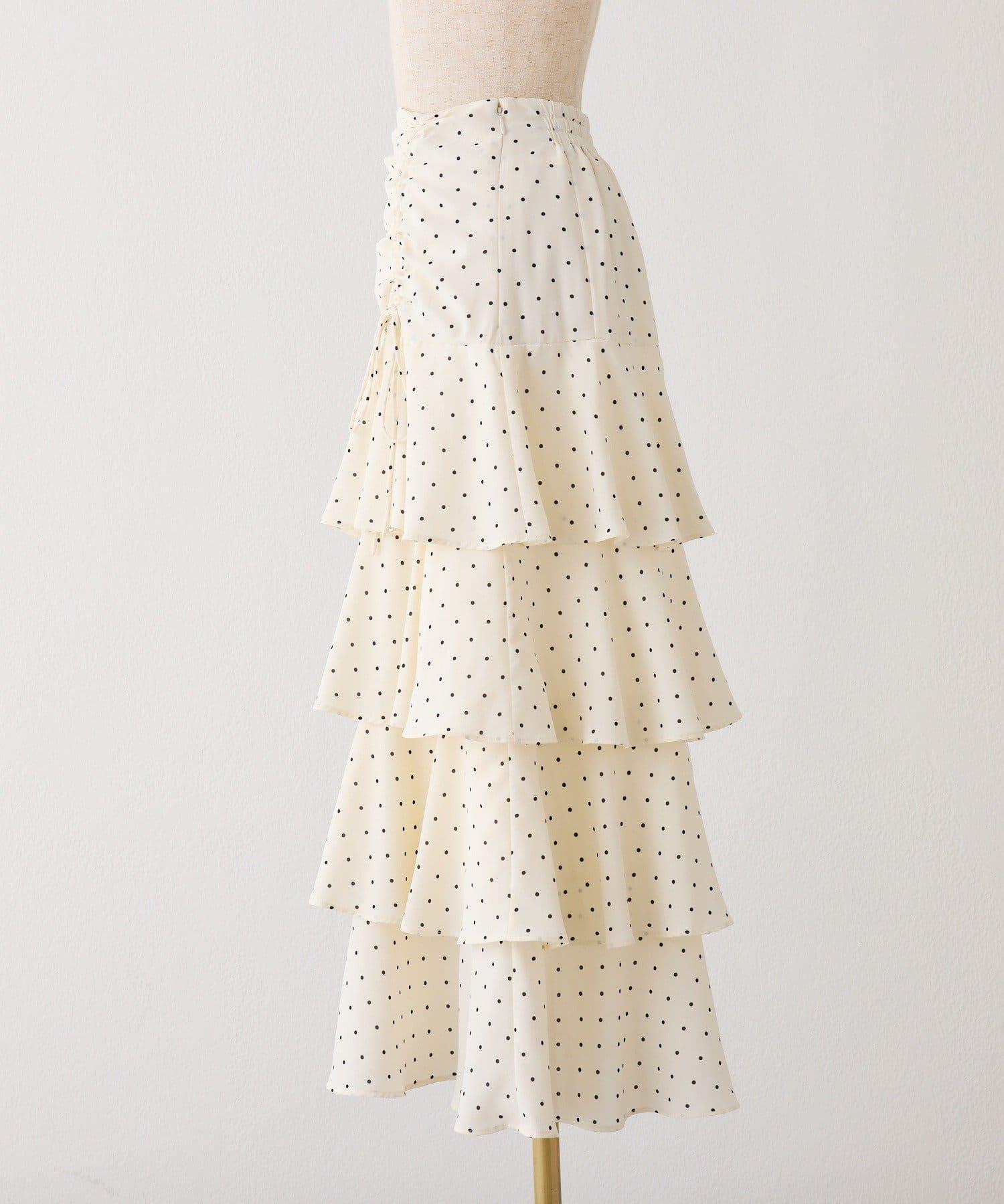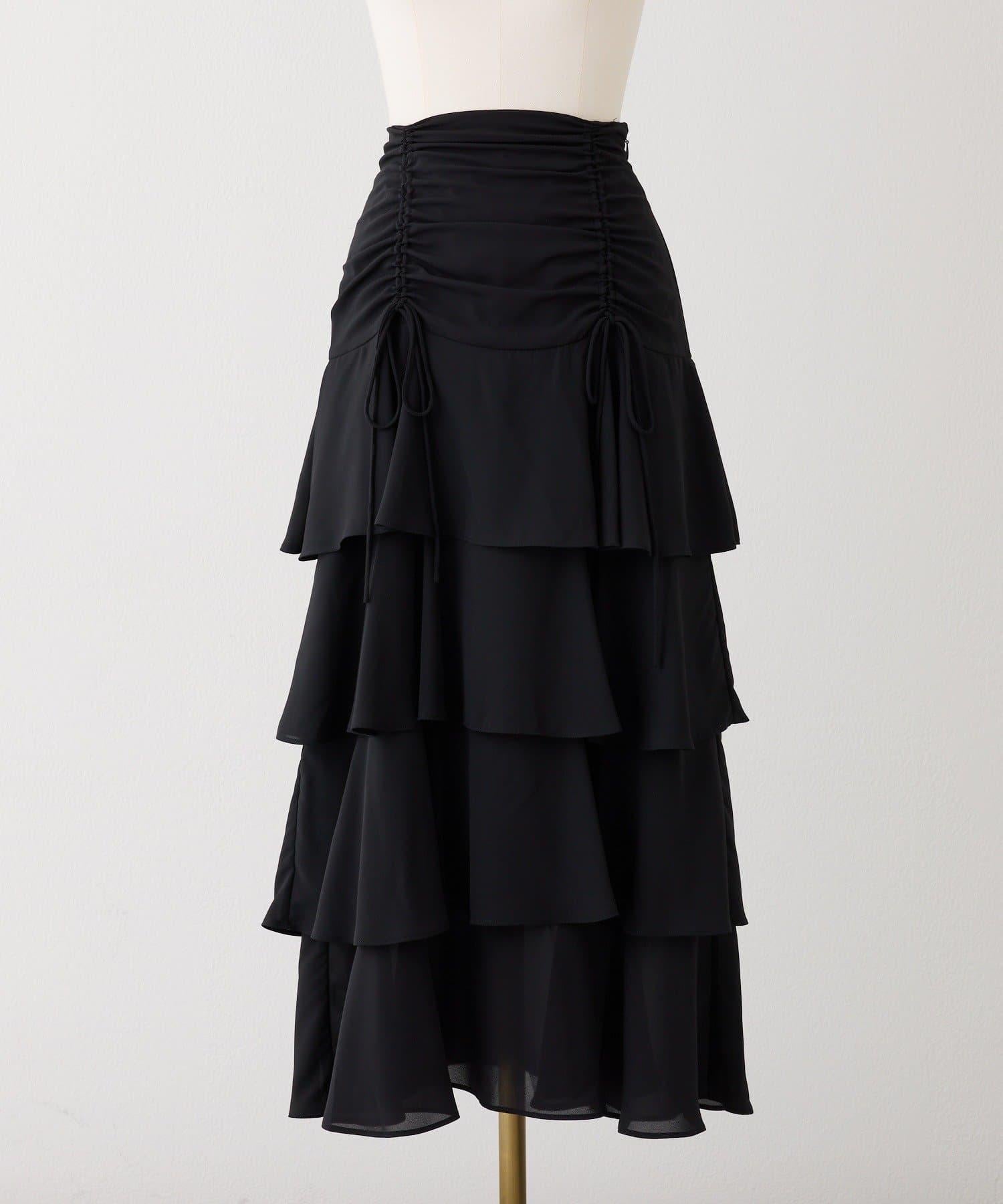層層疊疊的裙襬上飾有大量荷葉邊,抽繩設計隨你的一舉一動而搖擺。