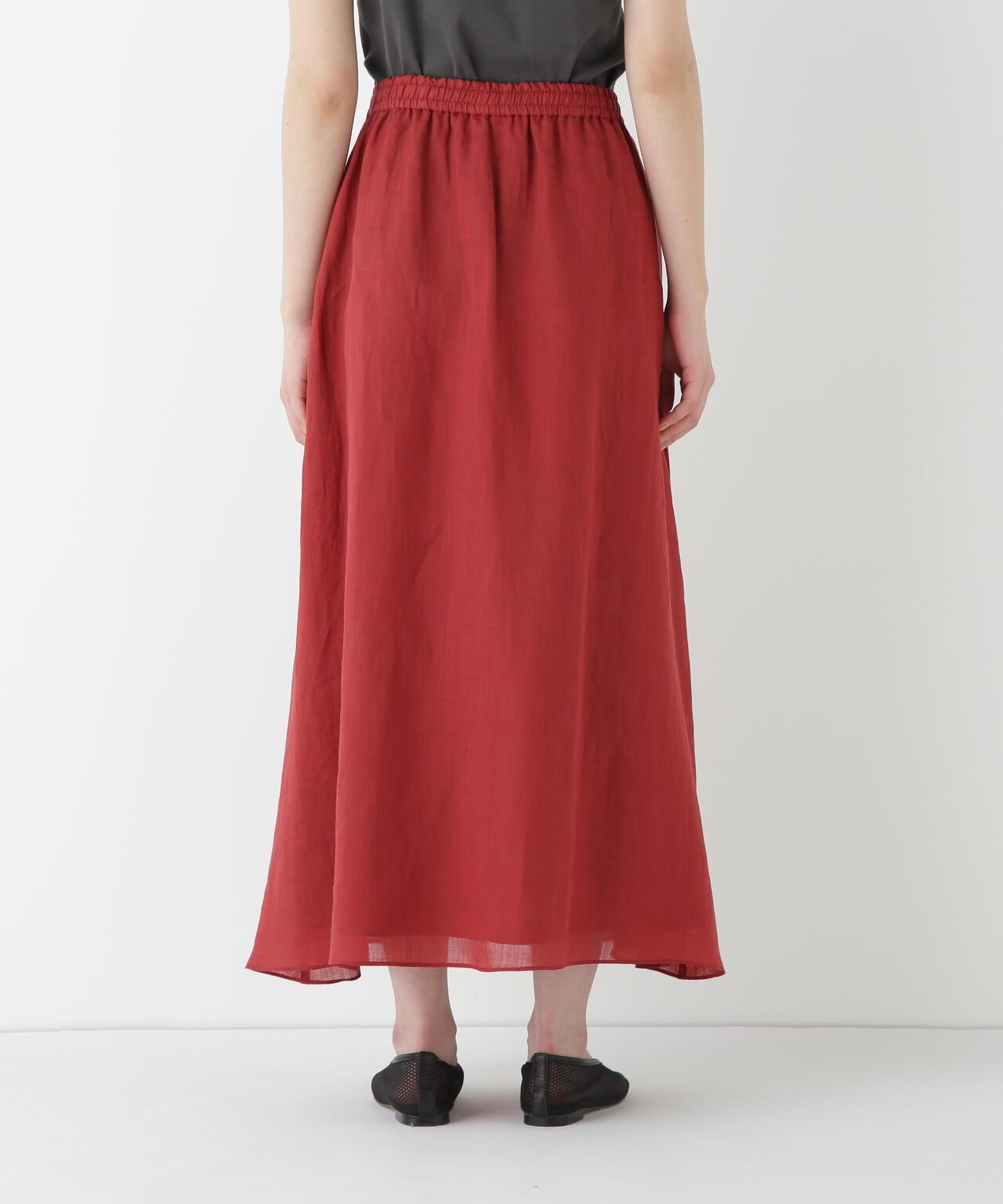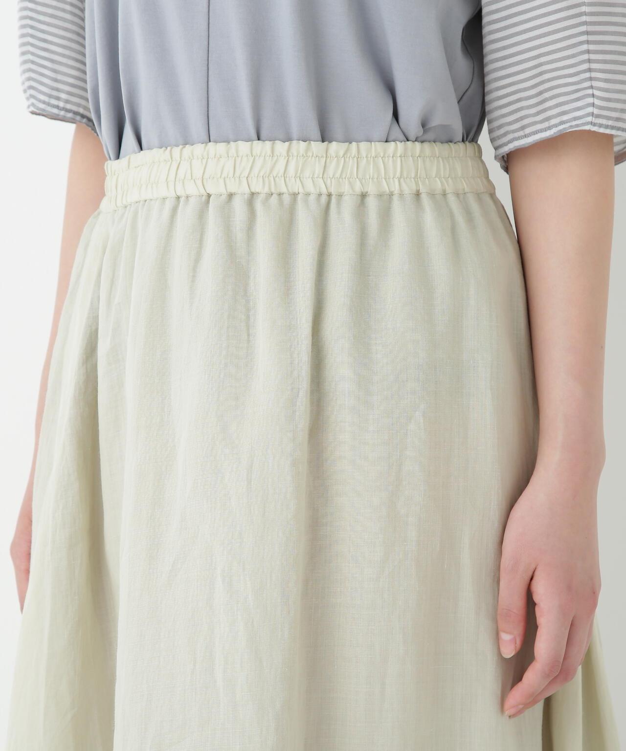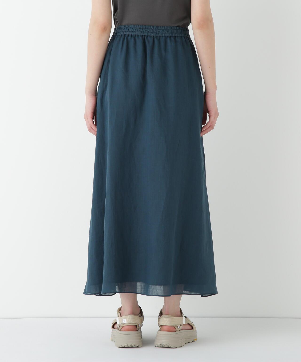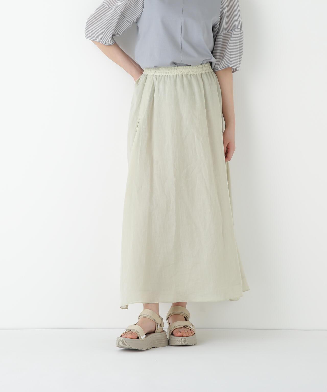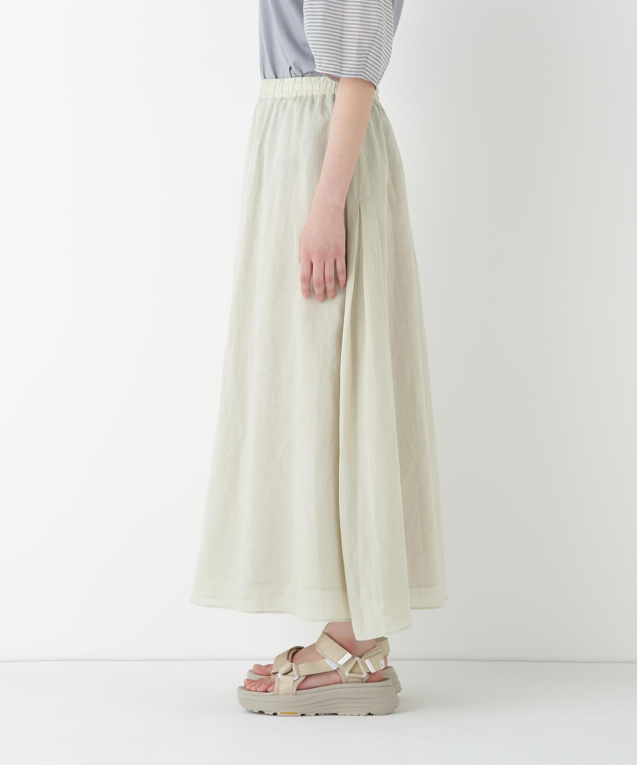 輕盈搖擺的喇叭裙 [設計要點] 這款褶襉聚攏裙兩側的方形褶襉設計,使其具有微妙的動感。無需打開腰部的鬆緊帶和同種面料的抽繩,即可輕鬆穿脫。裙子採用 160/-苧麻面料製成,既有細膩的表面,又有涼爽的清爽感,是人類女性的經典之作。推薦座標】這條裙子在夏日的涼風中搖擺,是涼鞋的好下裝。