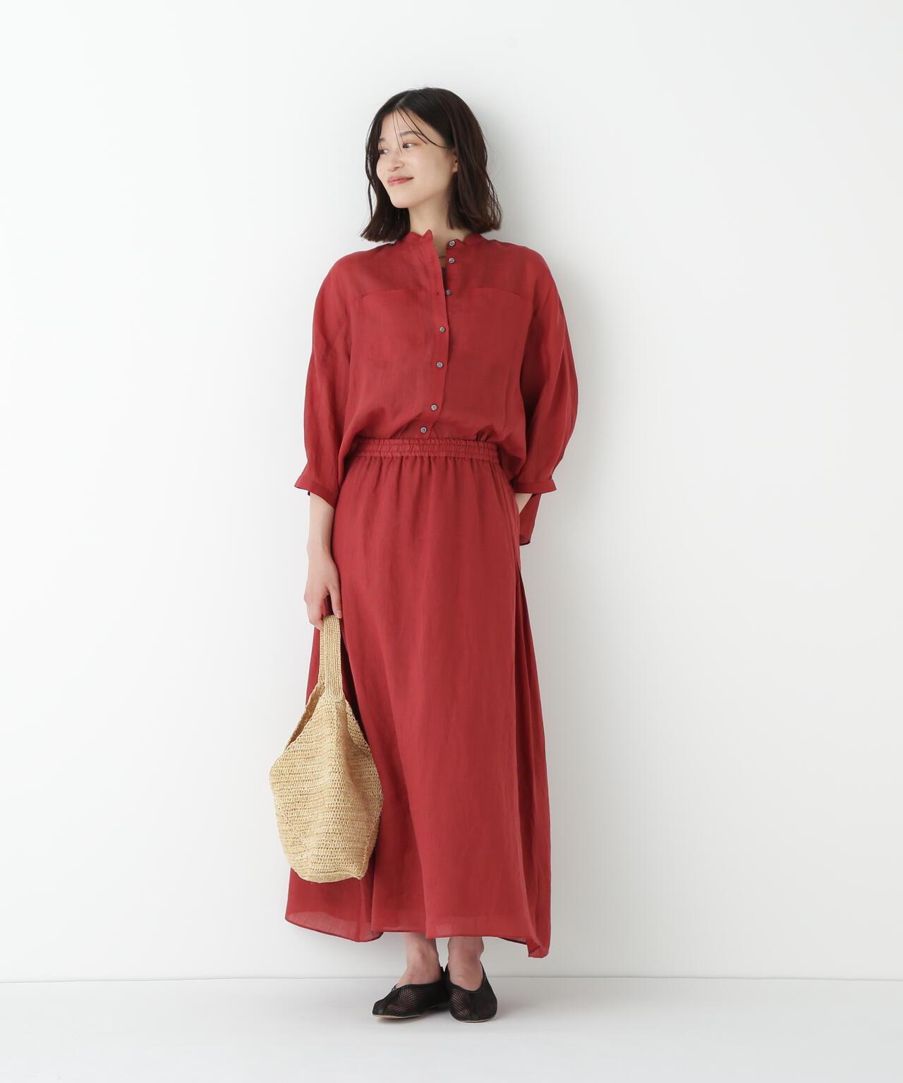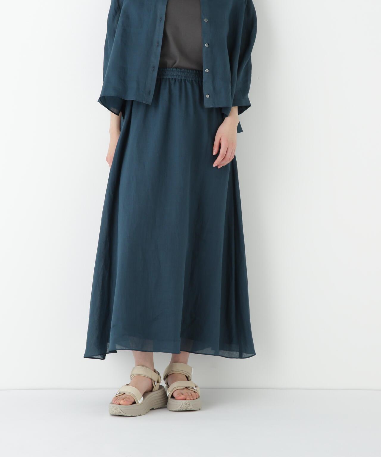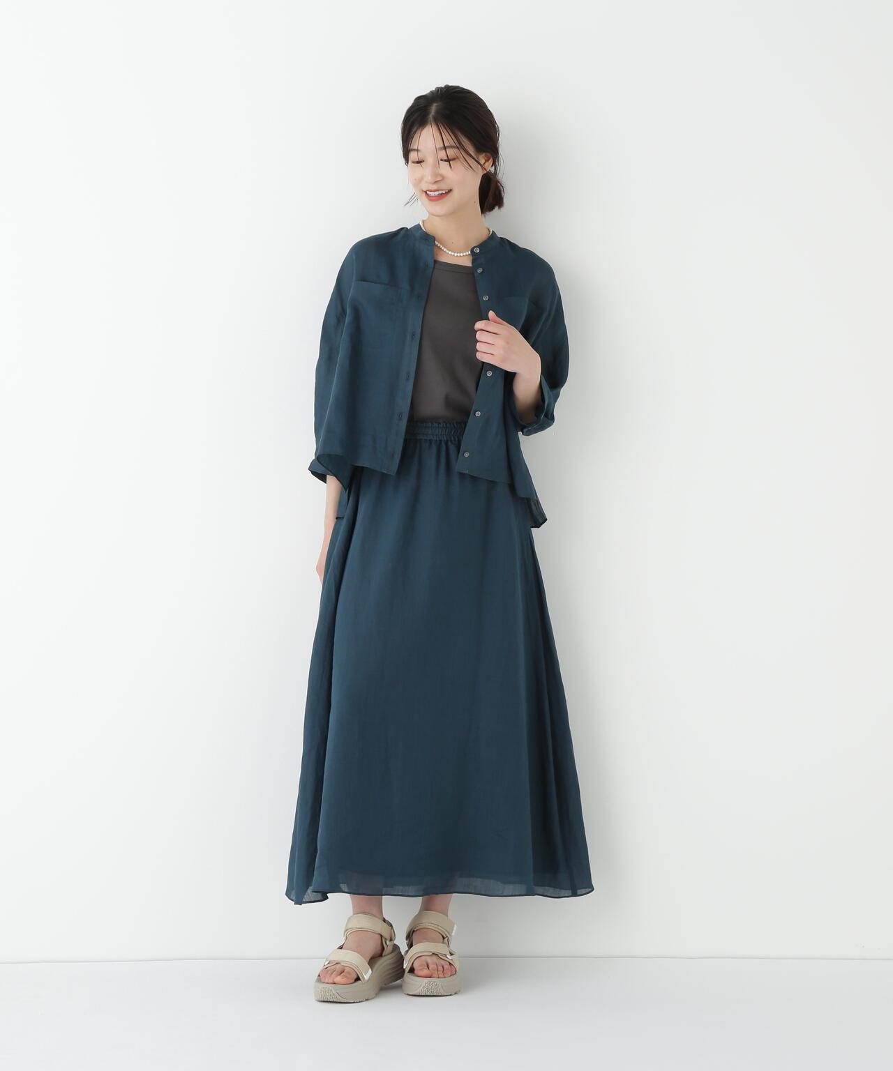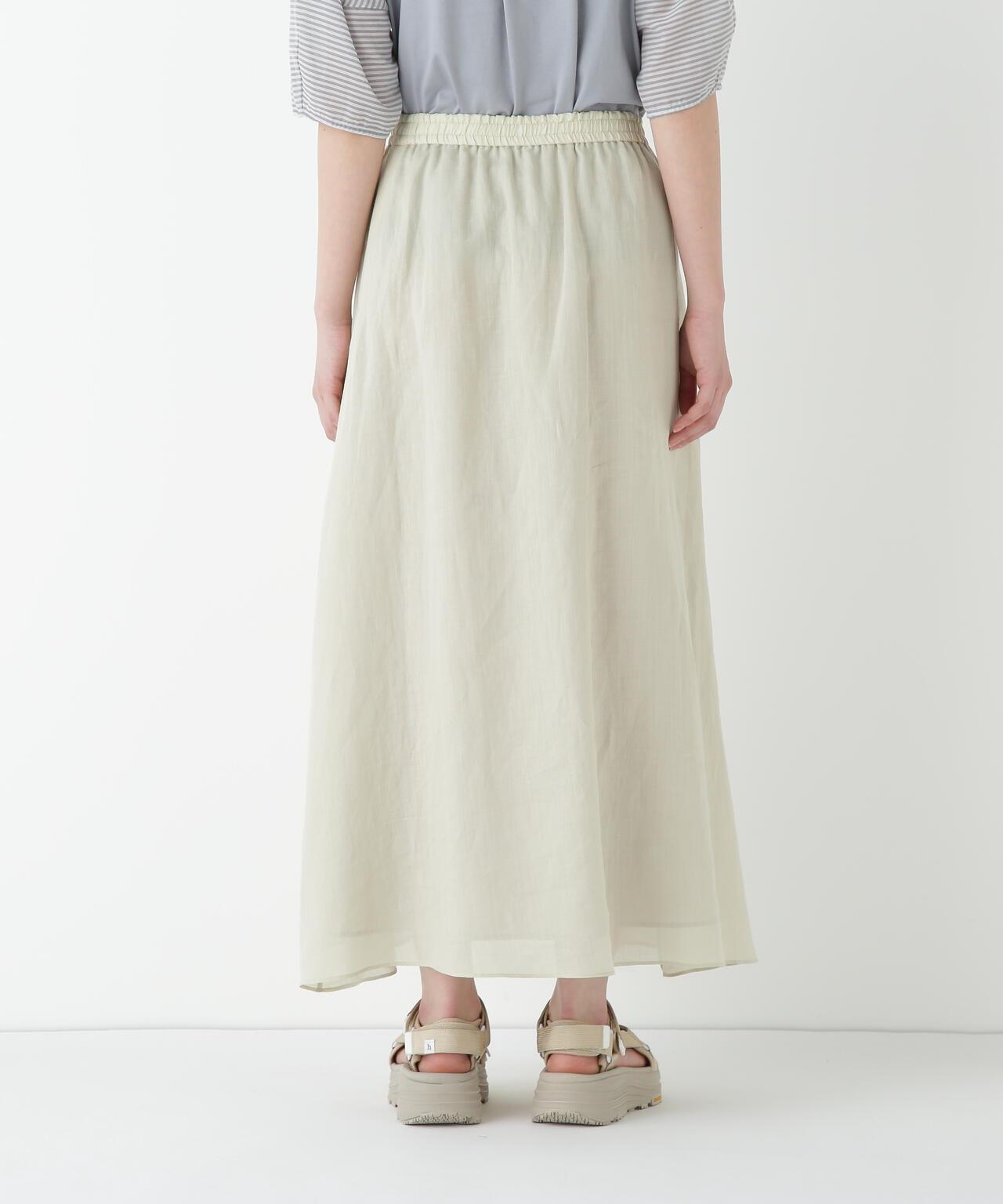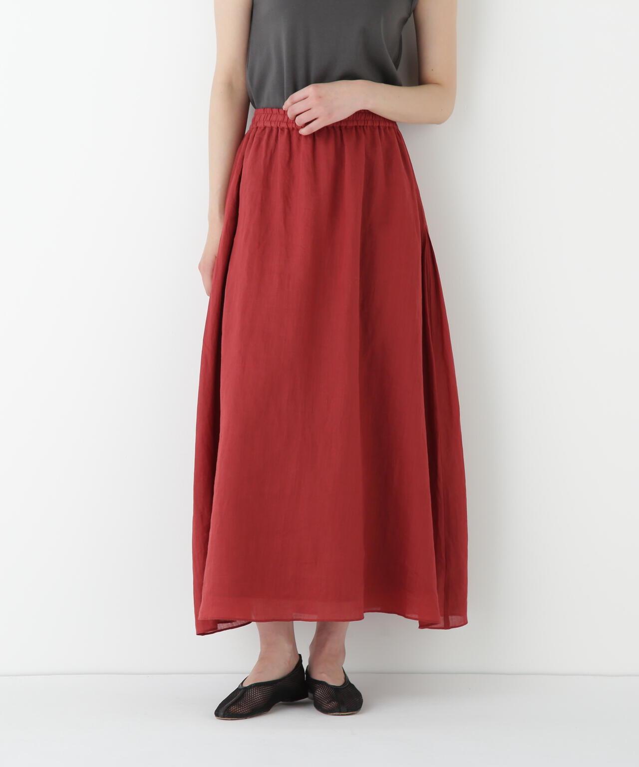 輕盈搖擺的喇叭裙 [設計要點] 這款褶襉聚攏裙兩側的方形褶襉設計,使其具有微妙的動感。無需打開腰部的鬆緊帶和同種面料的抽繩,即可輕鬆穿脫。裙子採用 160/-苧麻面料製成,既有細膩的表面,又有涼爽的清爽感,是人類女性的經典之作。推薦座標】這條裙子在夏日的涼風中搖擺,是涼鞋的好下裝。