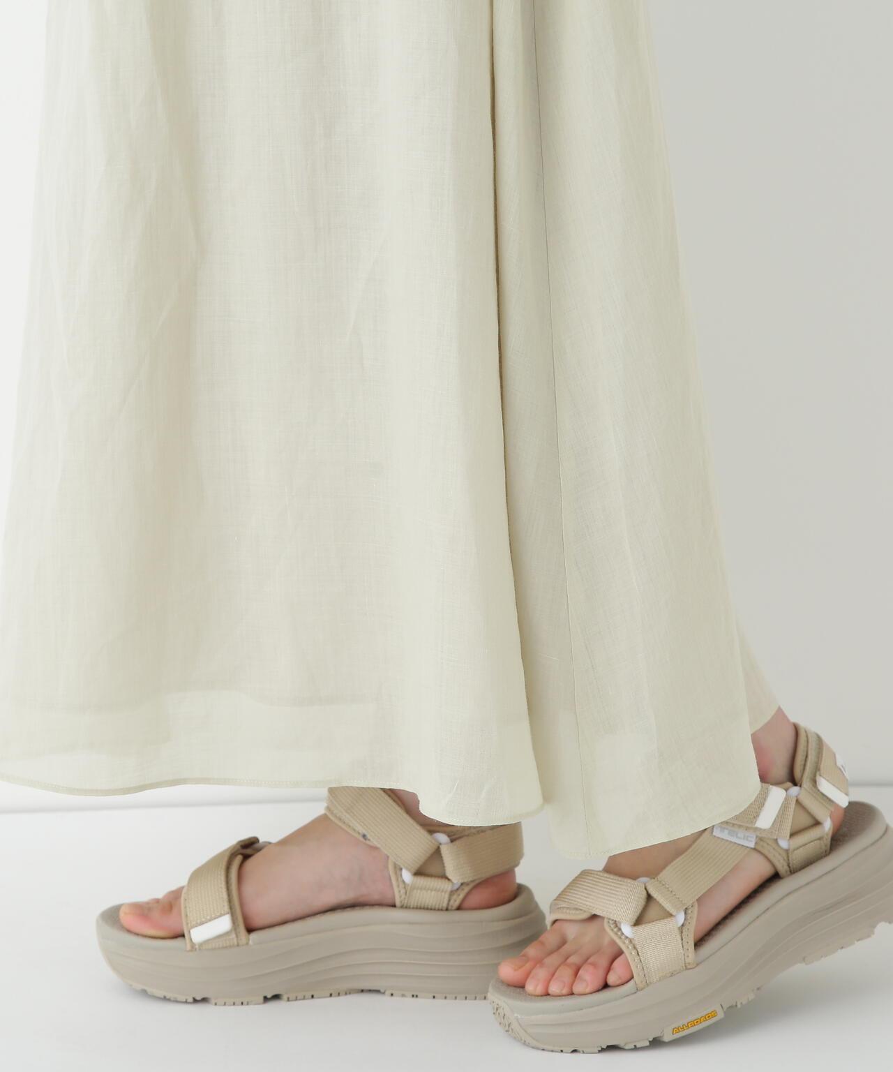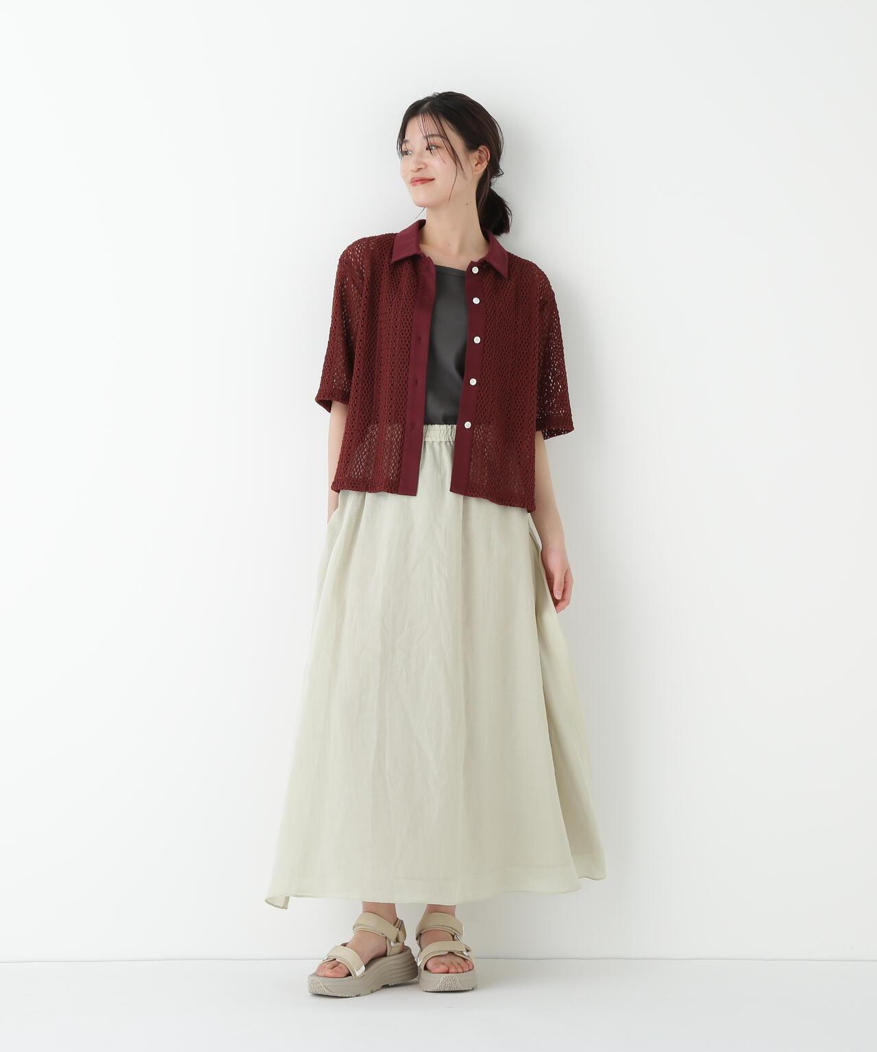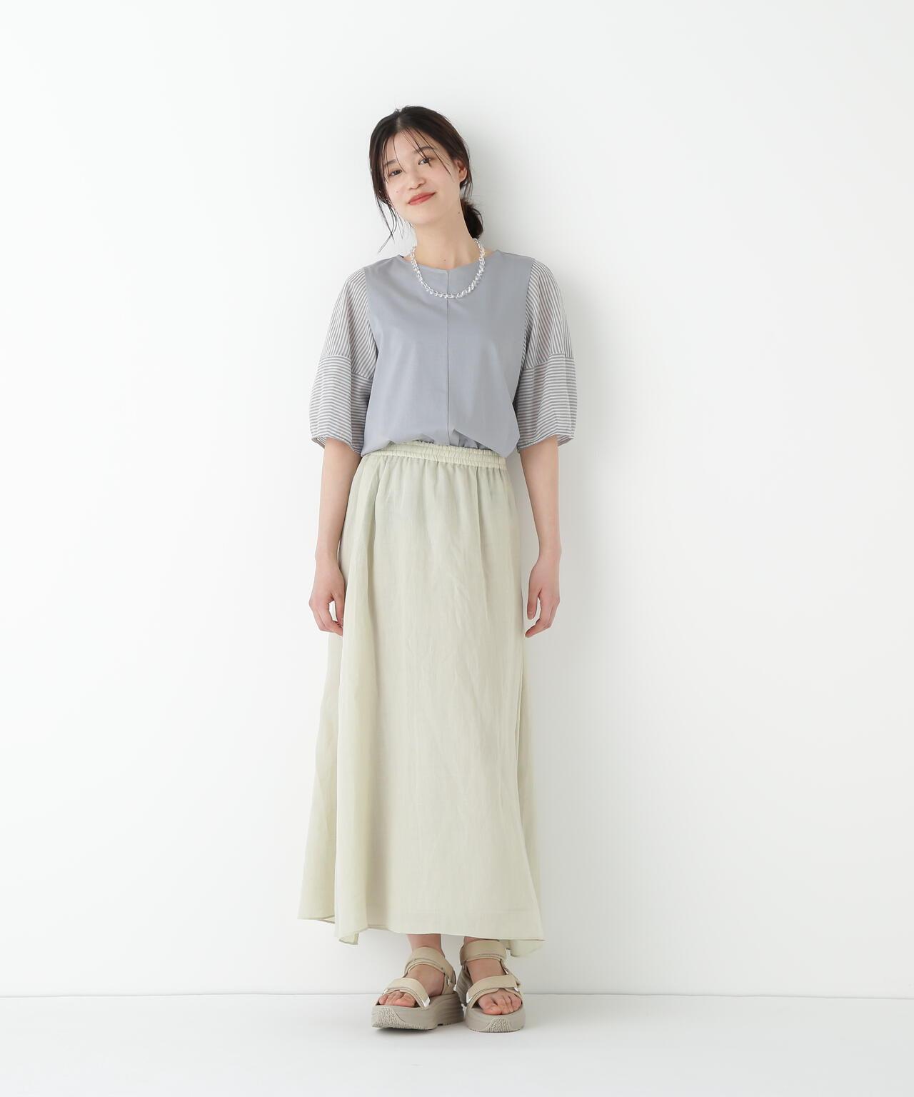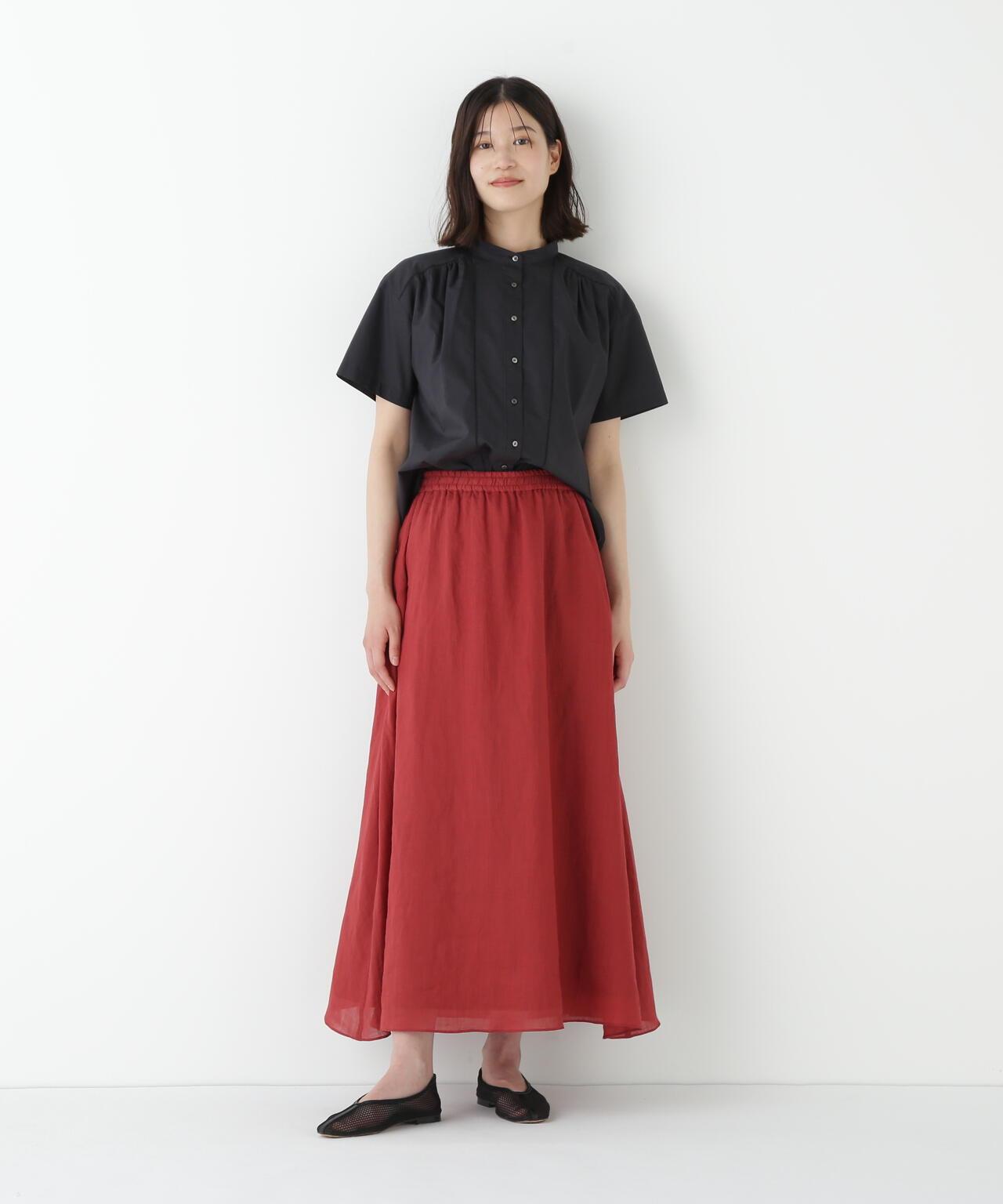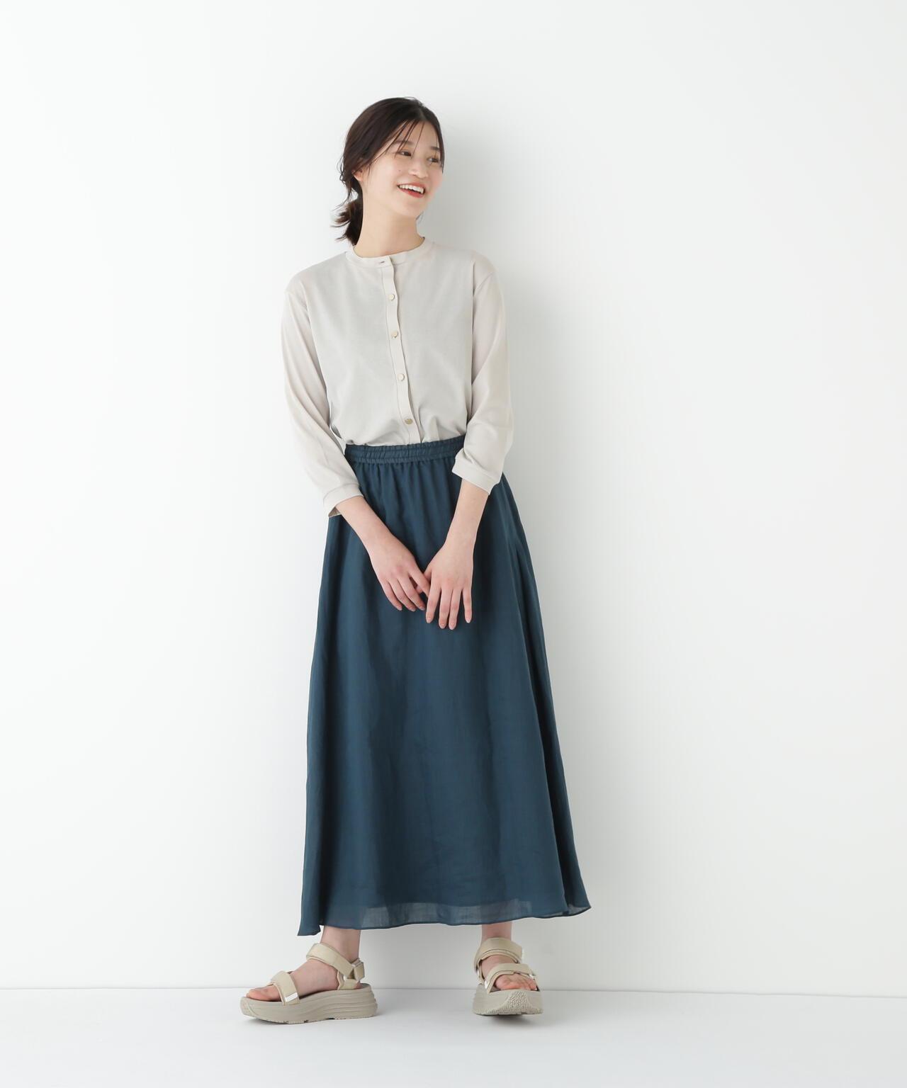輕盈搖擺的喇叭裙 [設計要點] 這款褶襉聚攏裙兩側的方形褶襉設計,使其具有微妙的動感。無需打開腰部的鬆緊帶和同種面料的抽繩,即可輕鬆穿脫。裙子採用 160/-苧麻面料製成,既有細膩的表面,又有涼爽的清爽感,是人類女性的經典之作。推薦座標】這條裙子在夏日的涼風中搖擺,是涼鞋的好下裝。