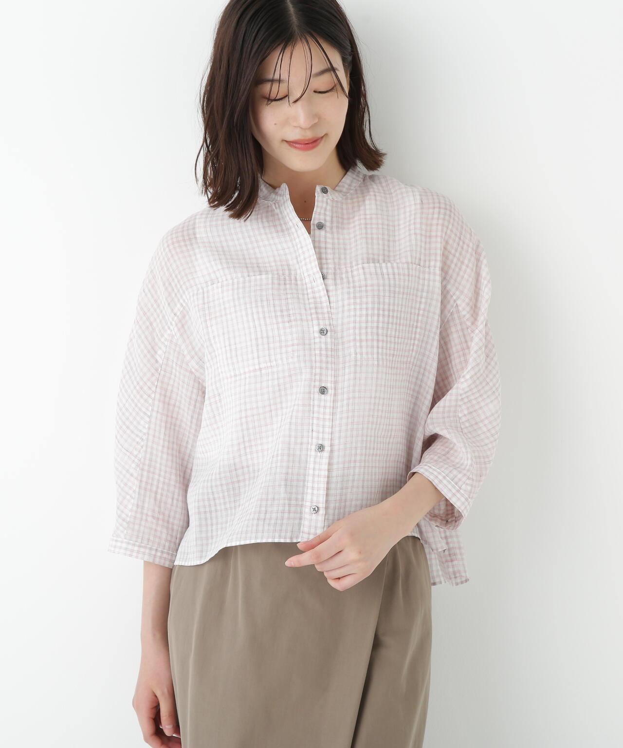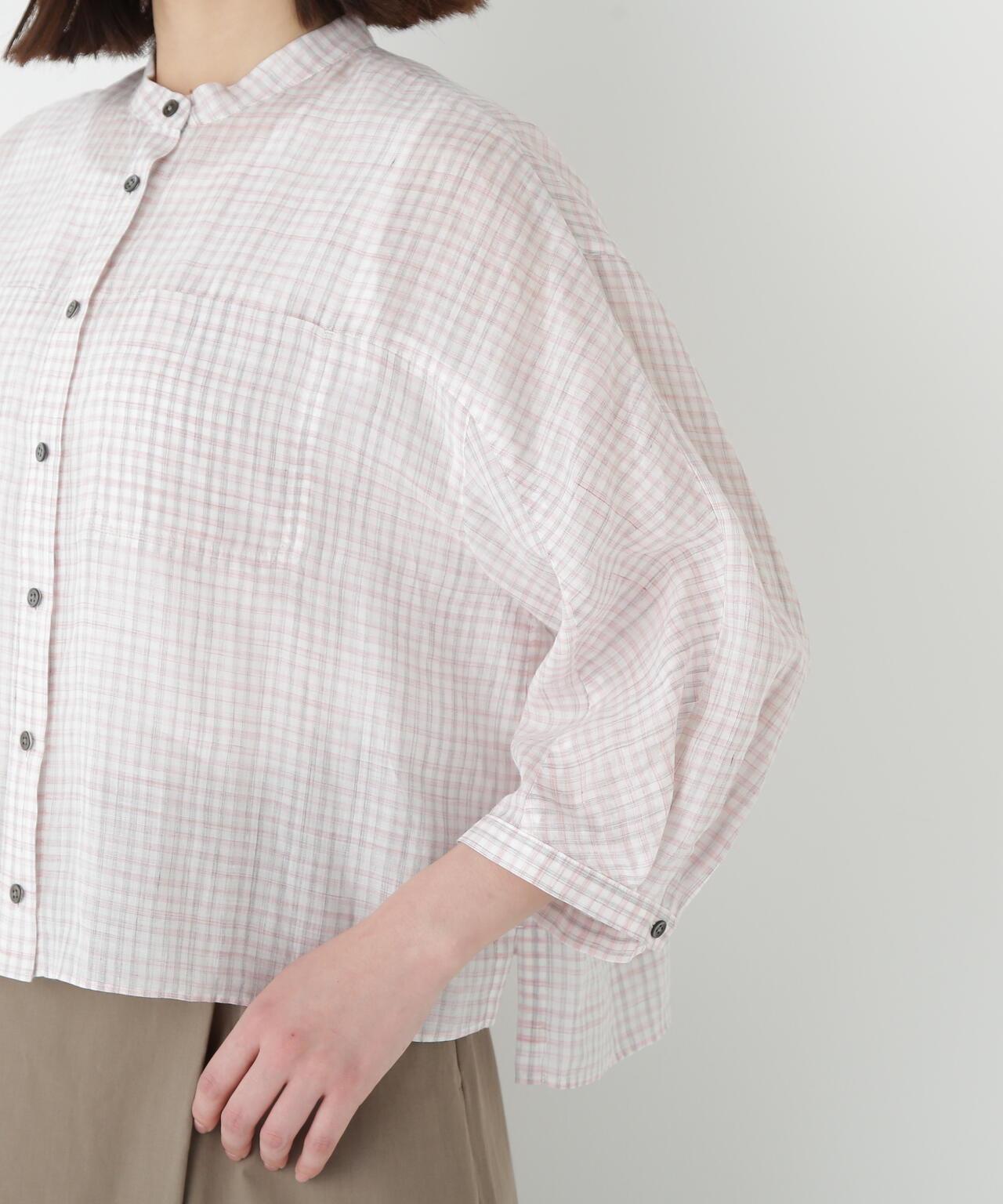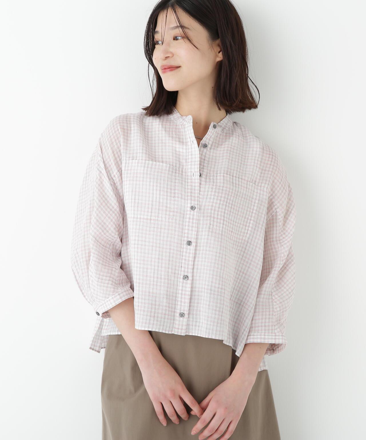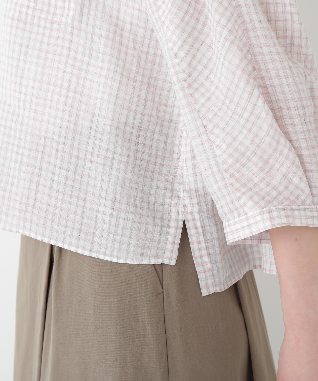 長期以來深受人類女性喜愛的清新苧麻面料襯衫 [設計要點] 這是一款帶領襯衫上衣,7 分長的多爾曼袖子具有與皮膚分離的感覺,胸前的口袋具有切換使用點。上衣採用點色 160/-苧麻的格子布料,既有人類女性標準的細膩表面,又有涼爽的清爽感。短款的長度讓你可以搭配任何下裝,也可以像開衫一樣作為梭織上衣穿著。