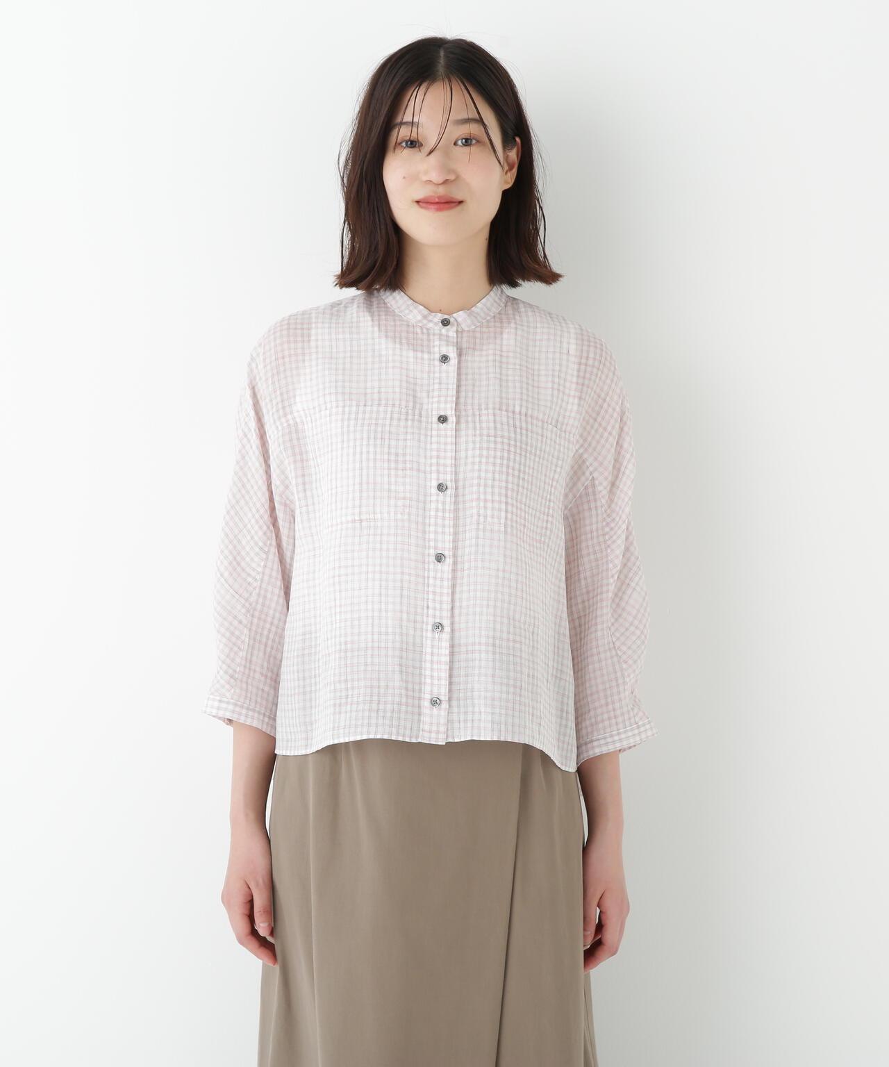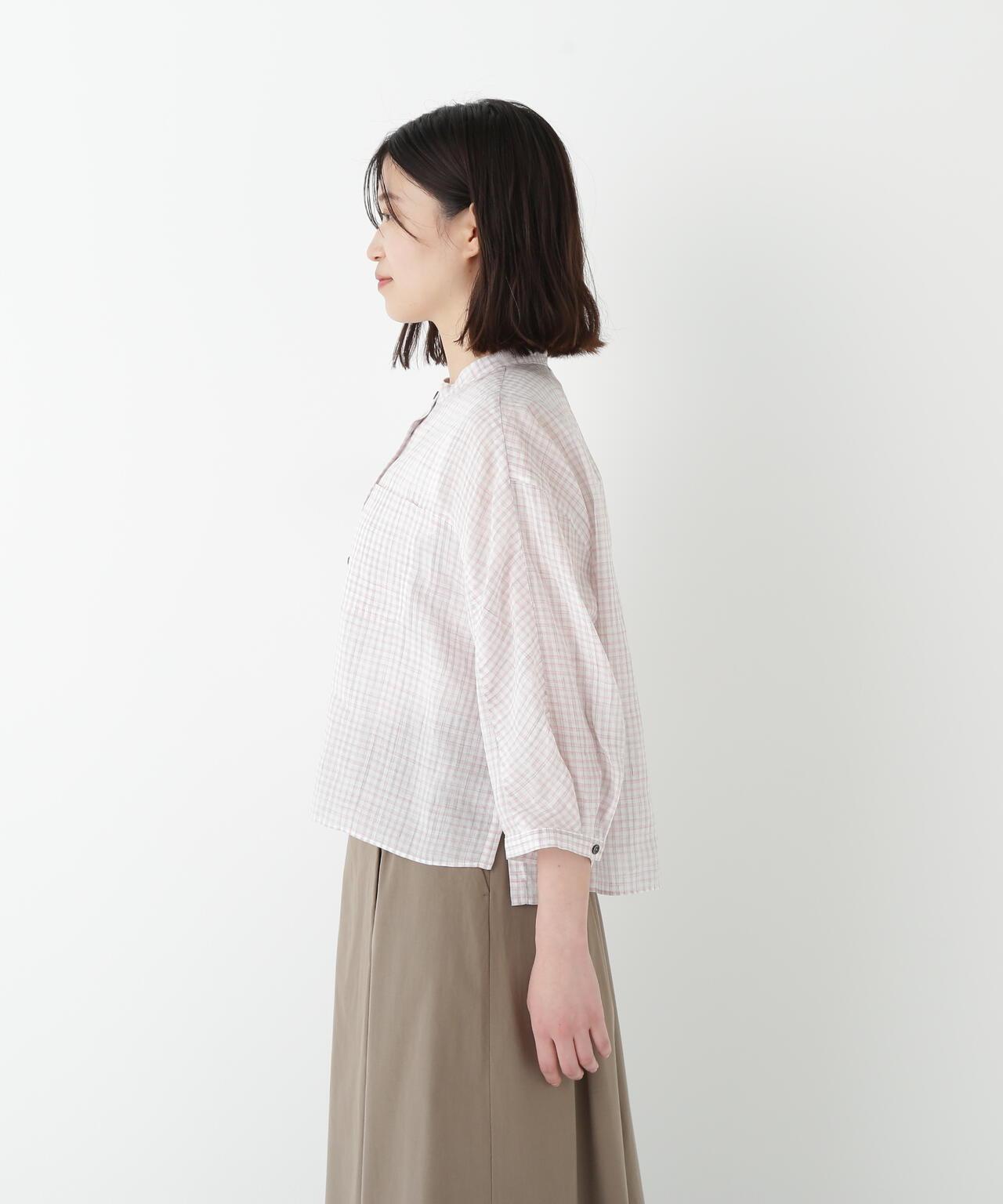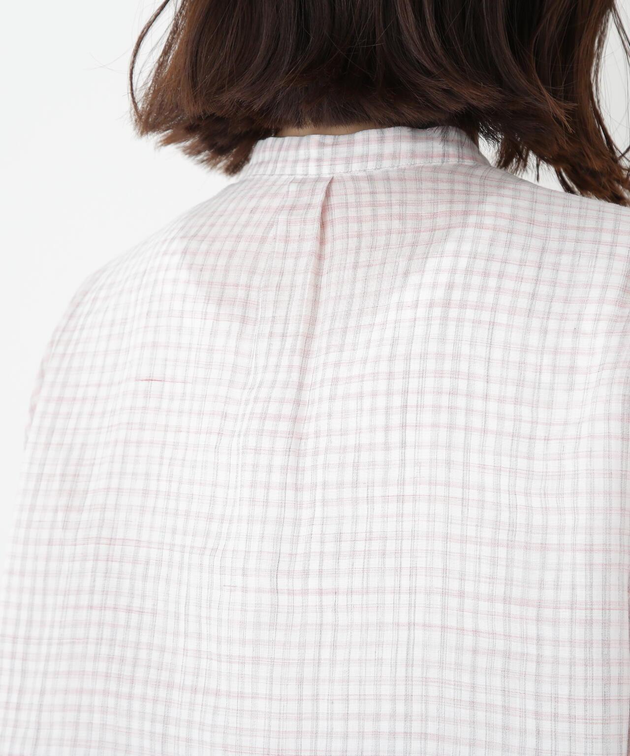 長期以來深受人類女性喜愛的清新苧麻面料襯衫 [設計要點] 這是一款帶領襯衫上衣,7 分長的多爾曼袖子具有與皮膚分離的感覺,胸前的口袋具有切換使用點。上衣採用點色 160/-苧麻的格子布料,既有人類女性標準的細膩表面,又有涼爽的清爽感。短款的長度讓你可以搭配任何下裝,也可以像開衫一樣作為梭織上衣穿著。