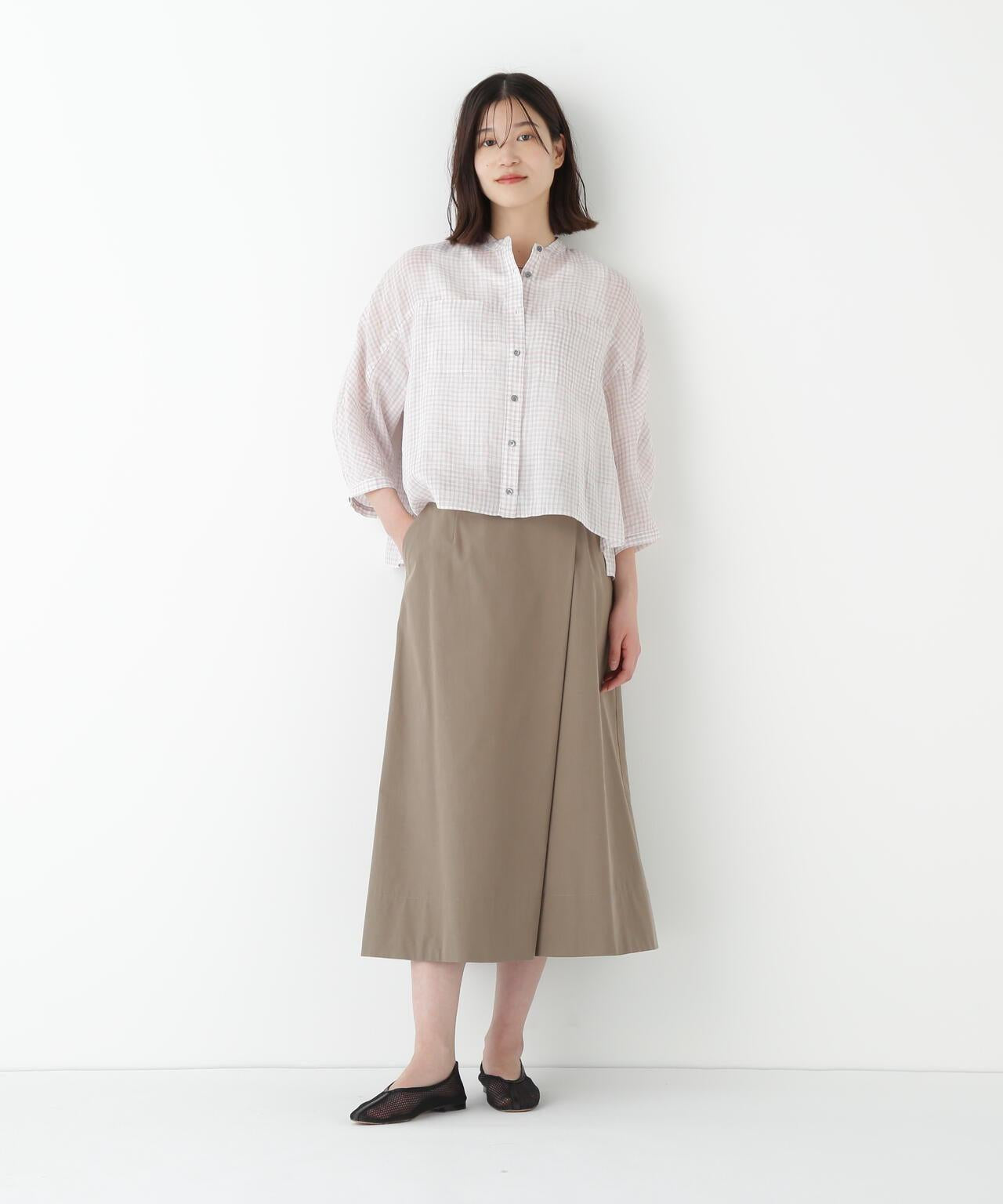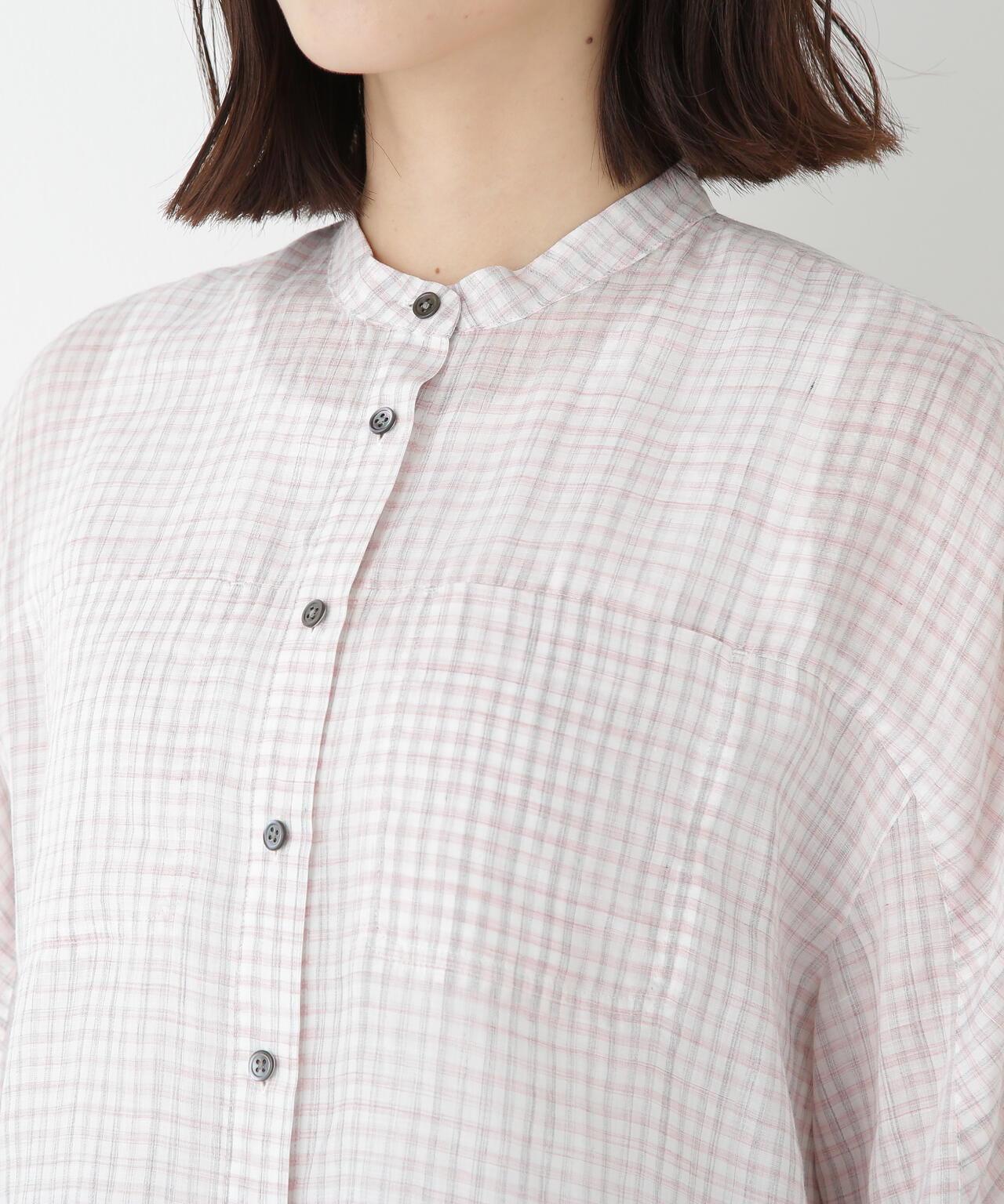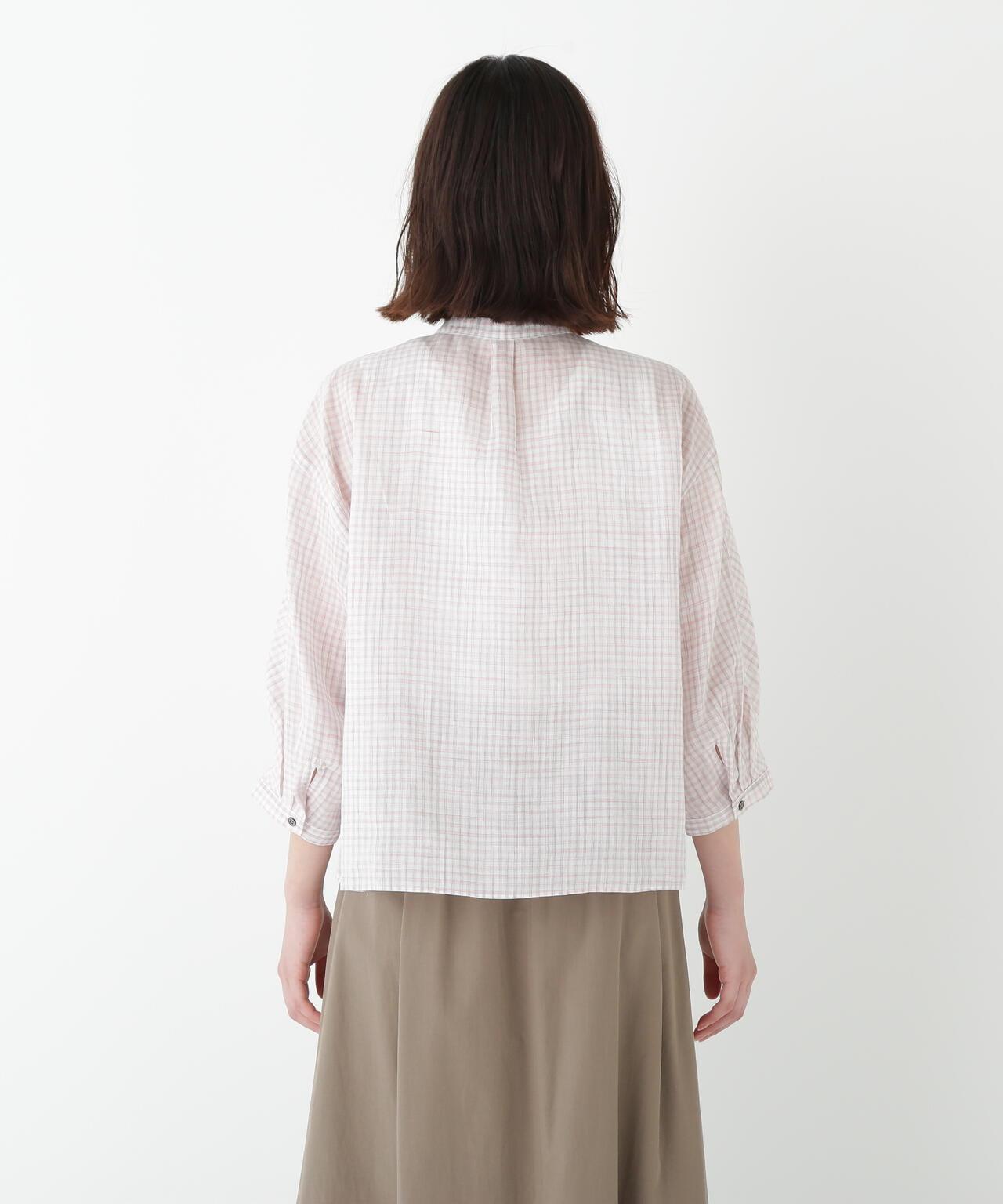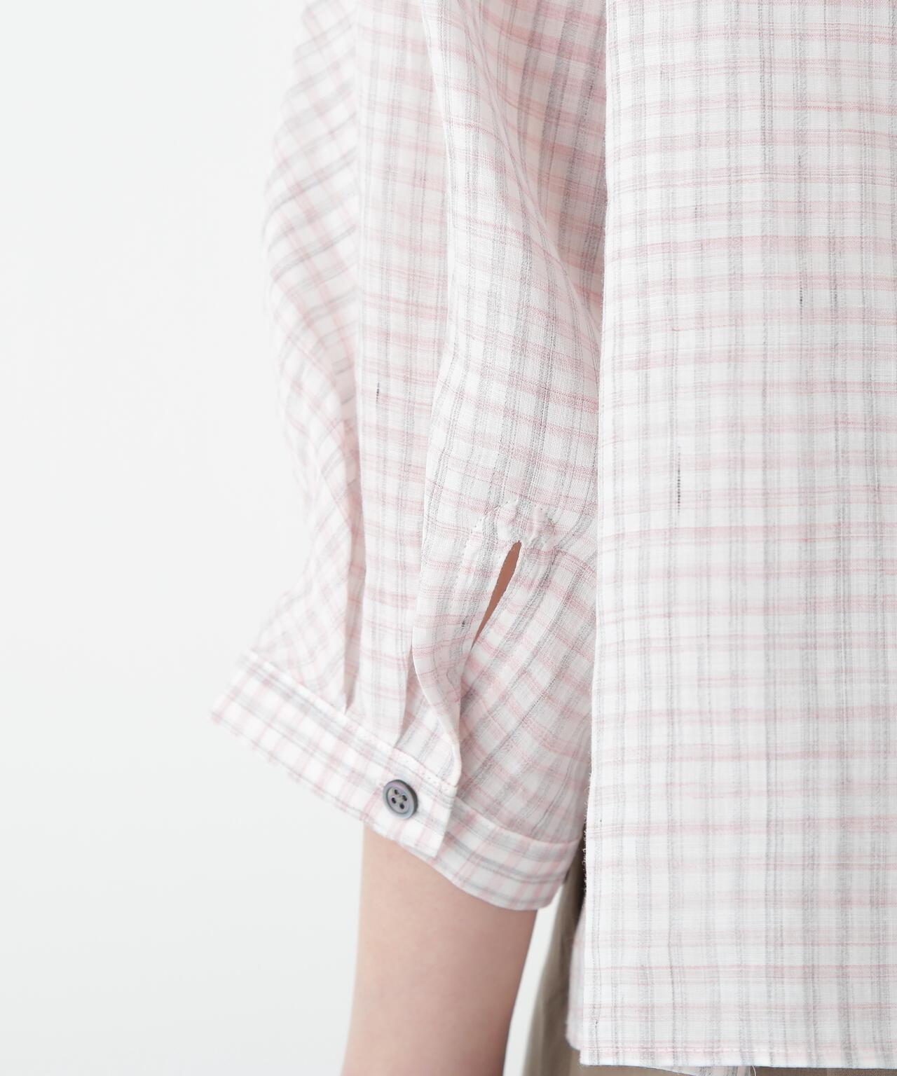 長期以來深受人類女性喜愛的清新苧麻面料襯衫 [設計要點] 這是一款帶領襯衫上衣,7 分長的多爾曼袖子具有與皮膚分離的感覺,胸前的口袋具有切換使用點。上衣採用點色 160/-苧麻的格子布料,既有人類女性標準的細膩表面,又有涼爽的清爽感。短款的長度讓你可以搭配任何下裝,也可以像開衫一樣作為梭織上衣穿著。