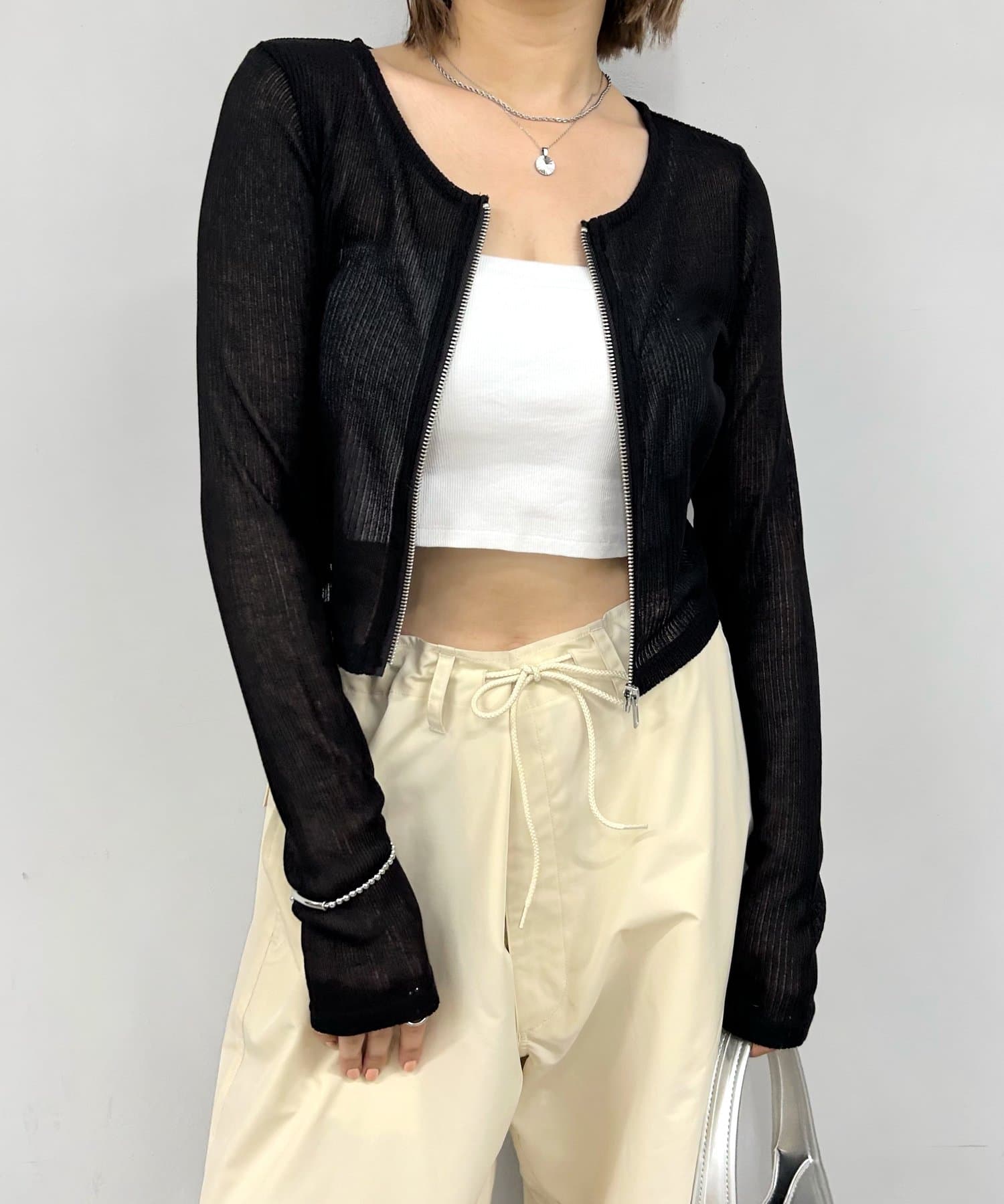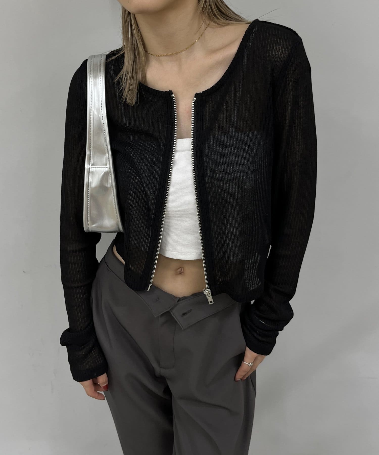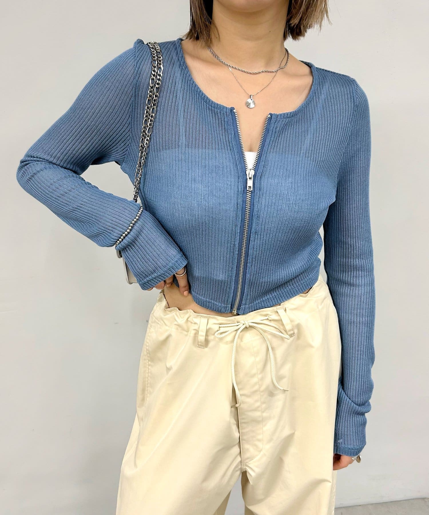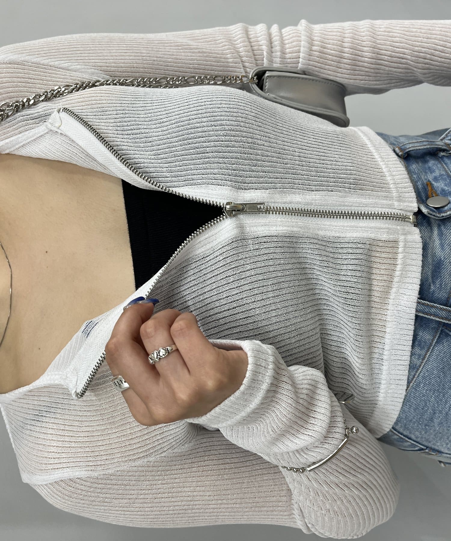 針織鋸的材料由於皮膚適度透明,所以輕盈透氣。羅紋材料很時髦,可以穿得不累。