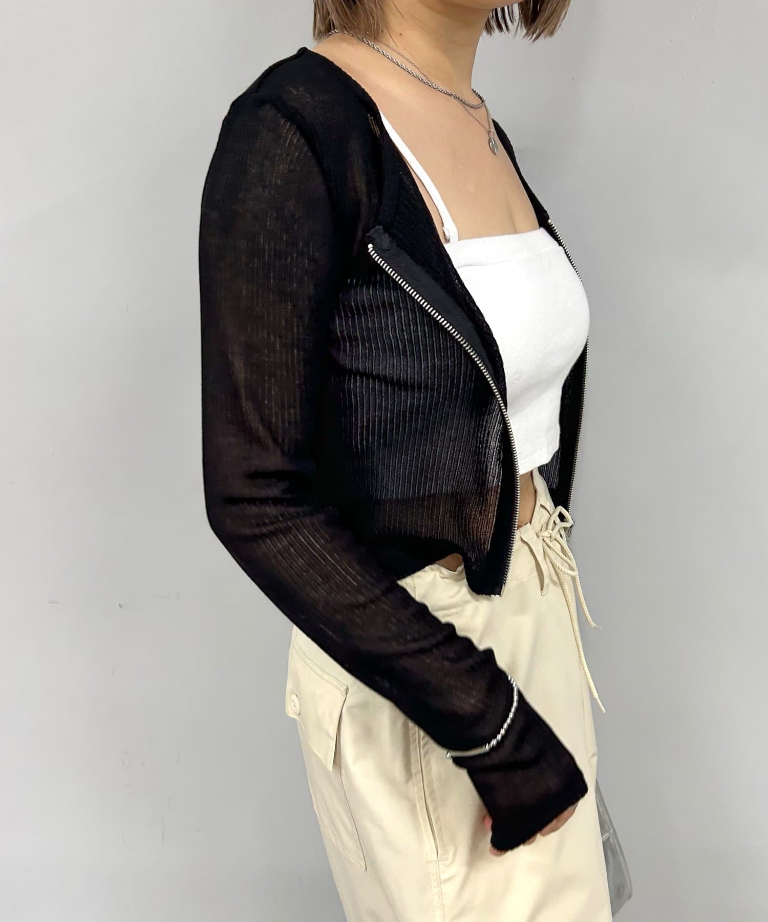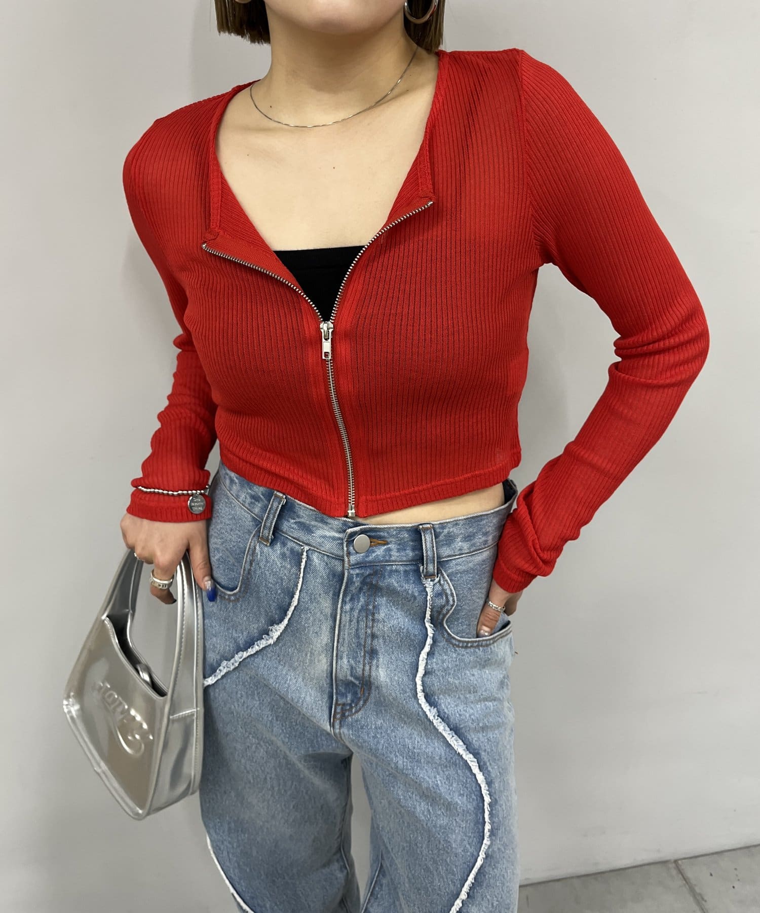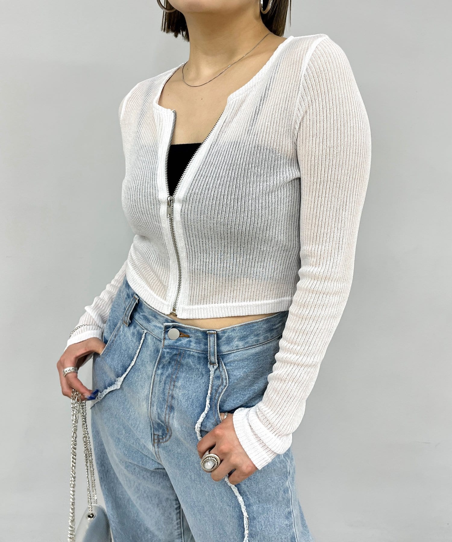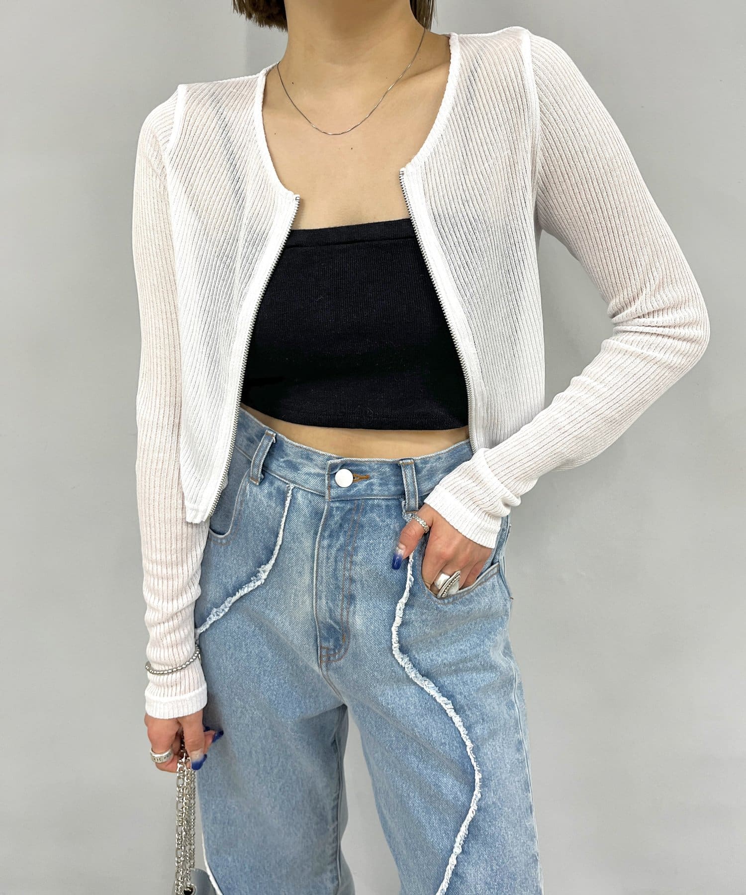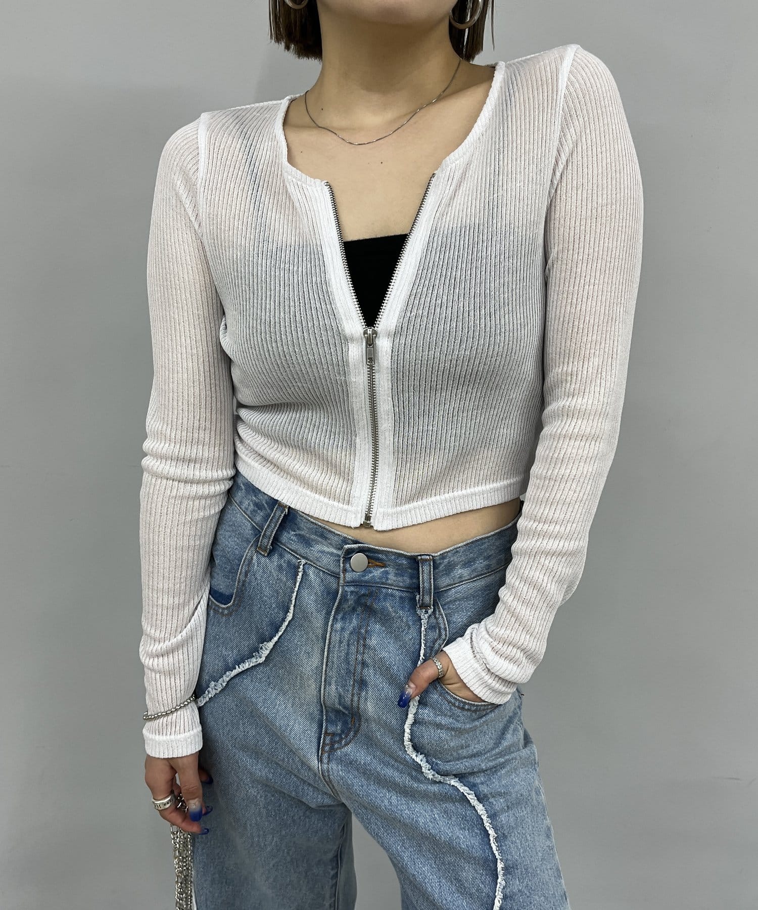 針織鋸的材料由於皮膚適度透明,所以輕盈透氣。羅紋材料很時髦,可以穿得不累。