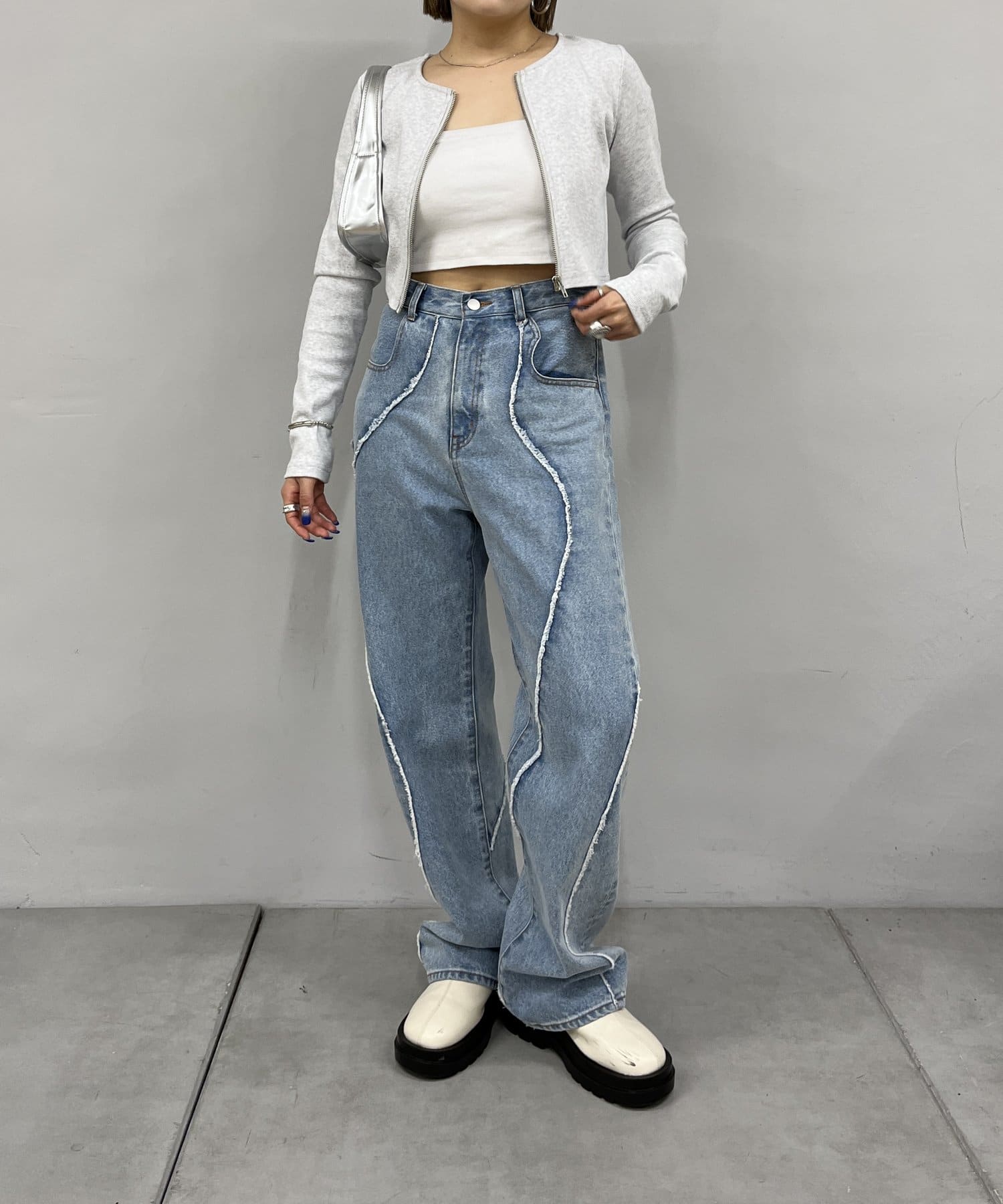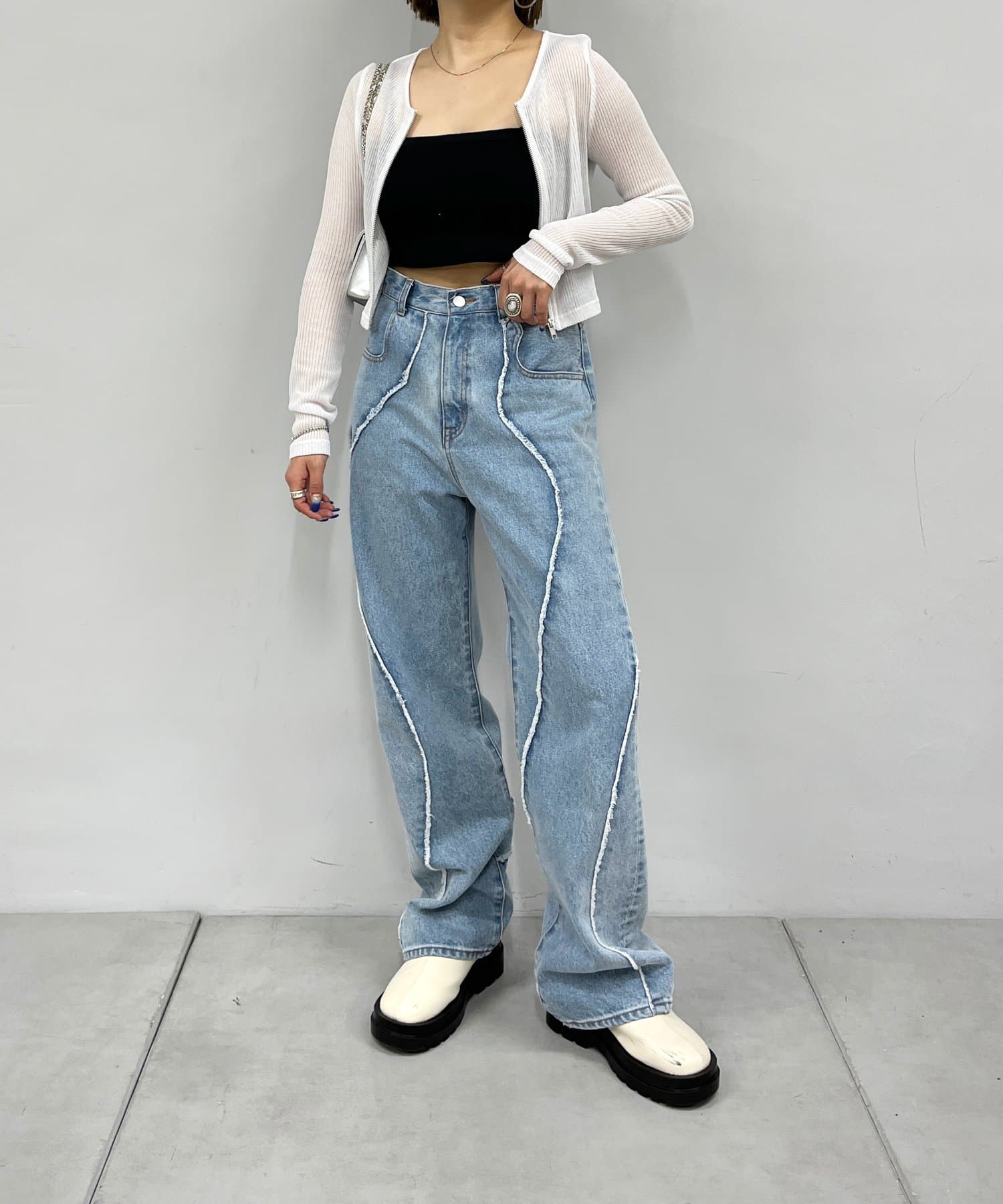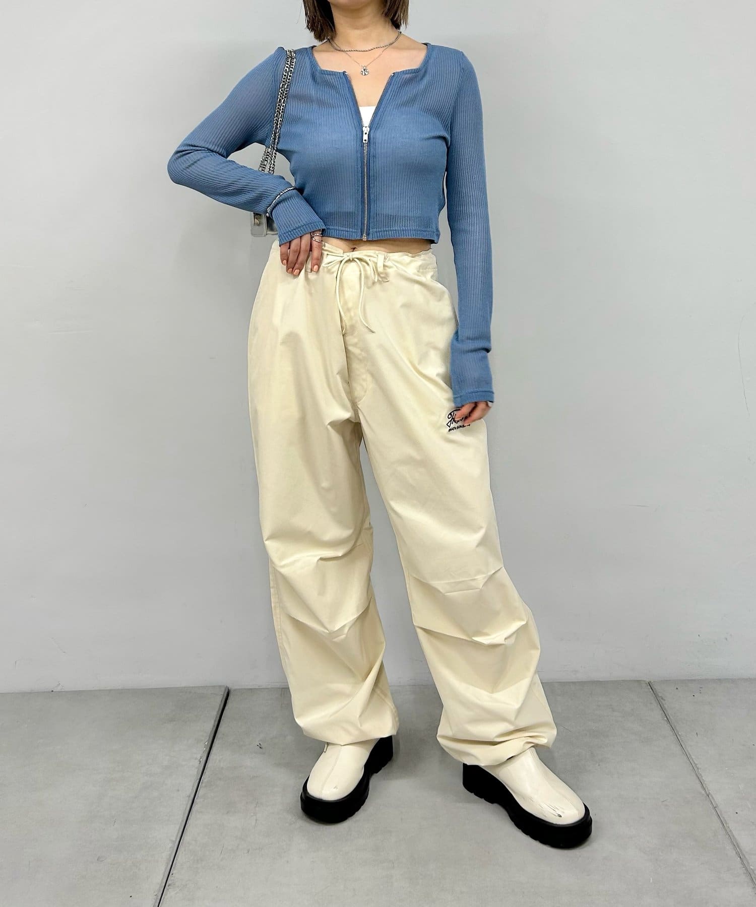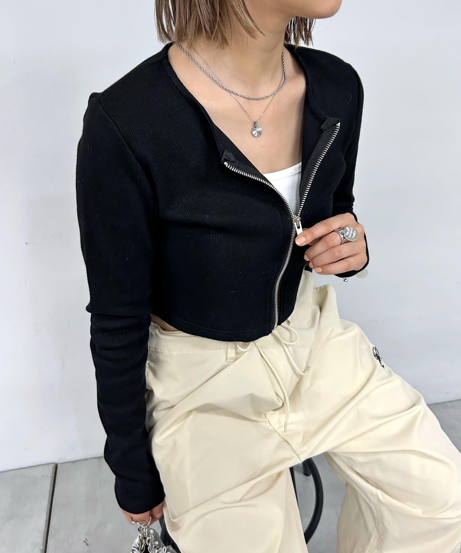 針織鋸的材料由於皮膚適度透明,所以輕盈透氣。羅紋材料很時髦,可以穿得不累。