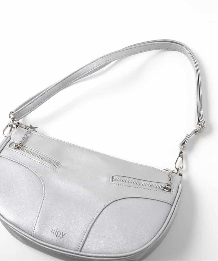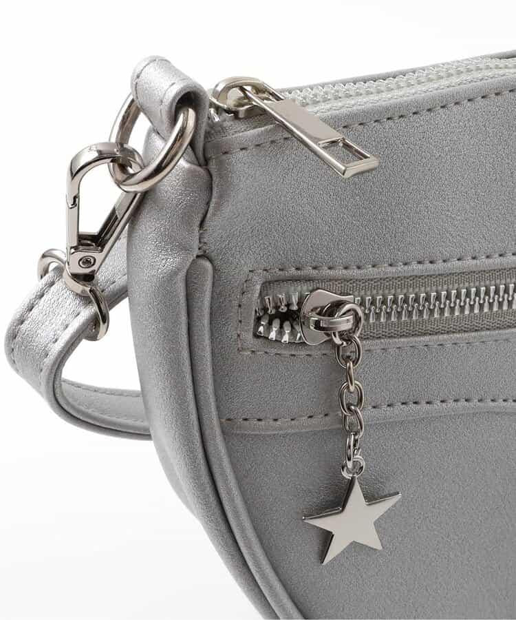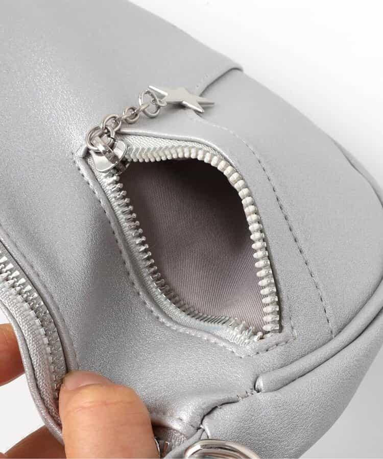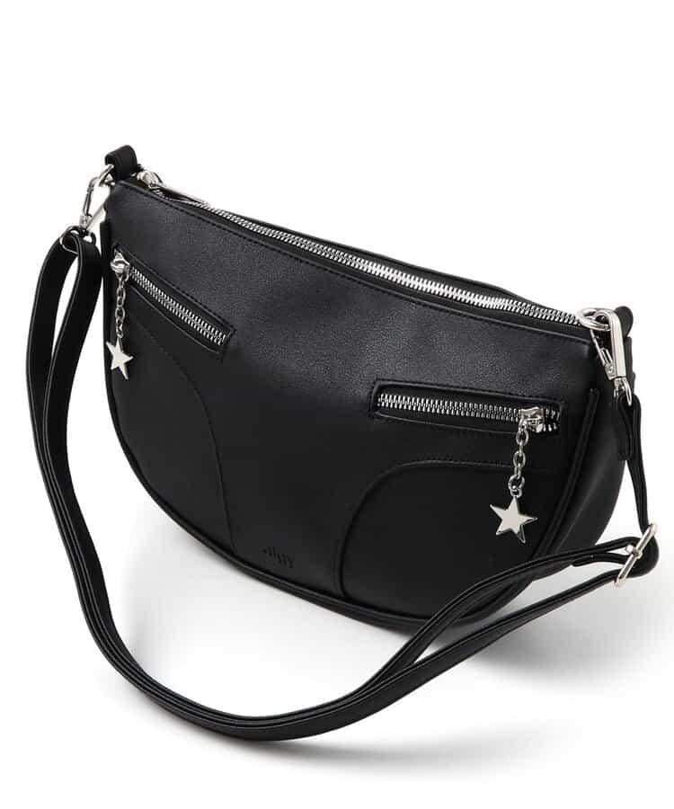 時尚的圓形手袋,配有兩條拉鍊和星星圖案拉環。