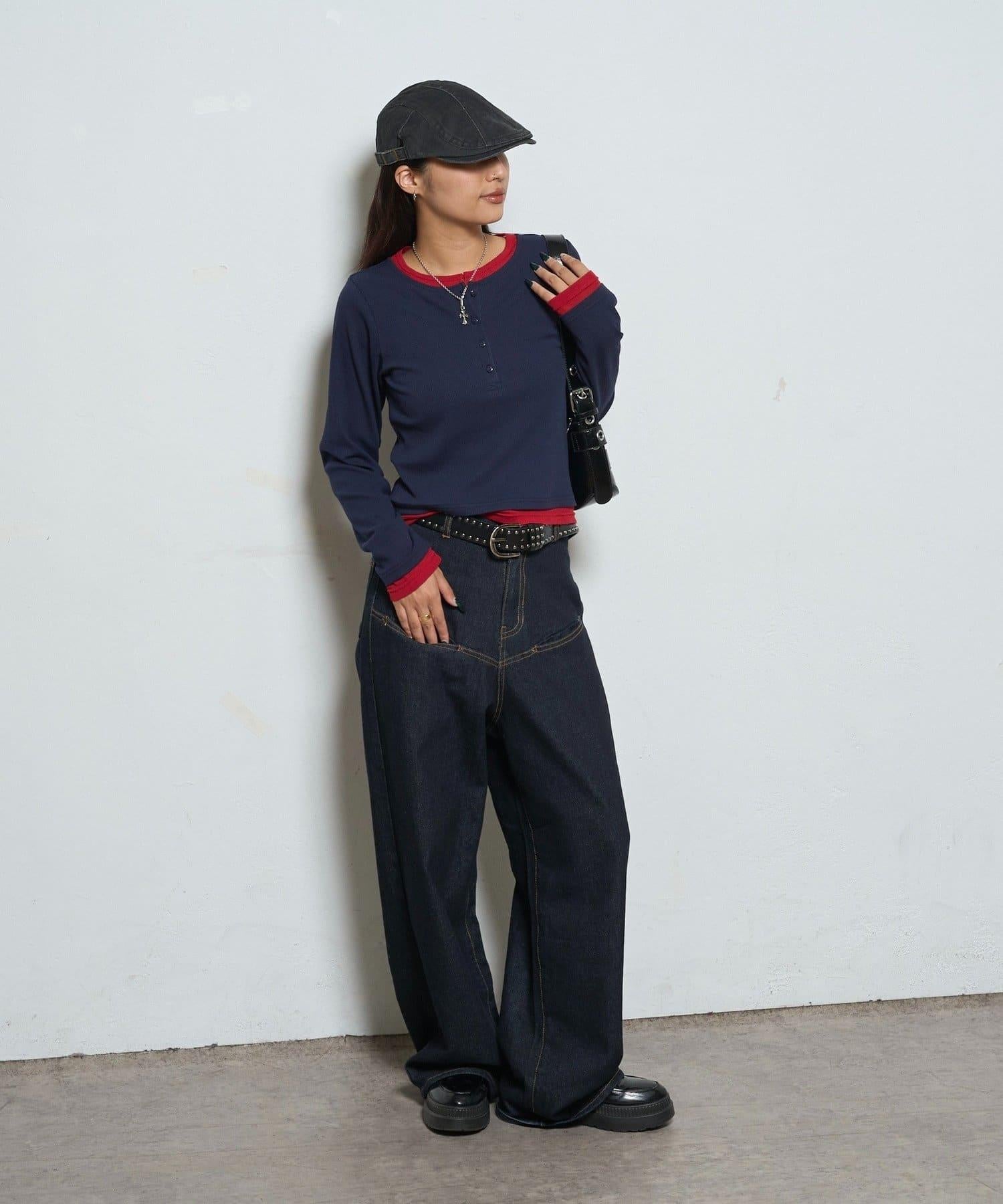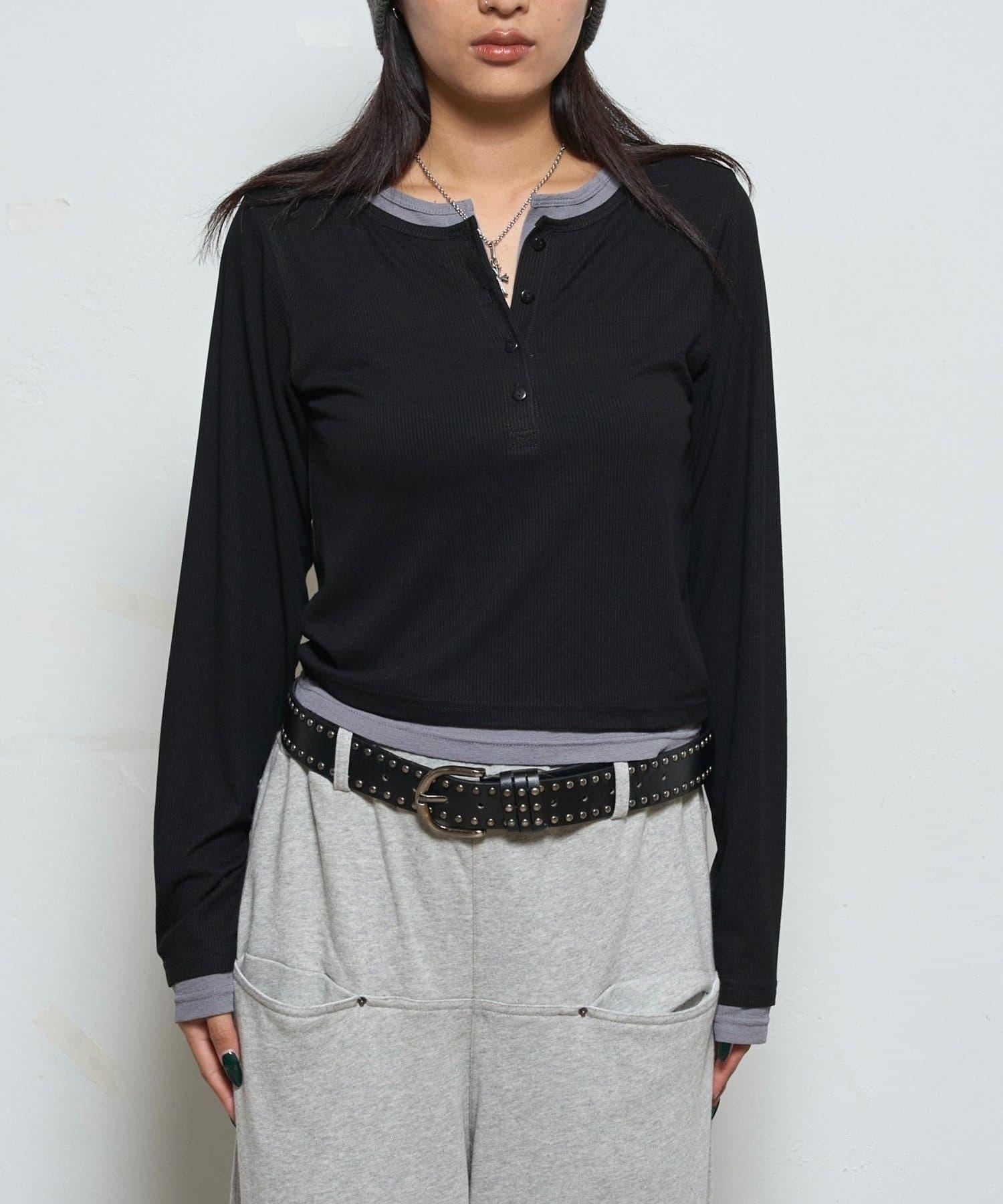 拼接亨利領上衣