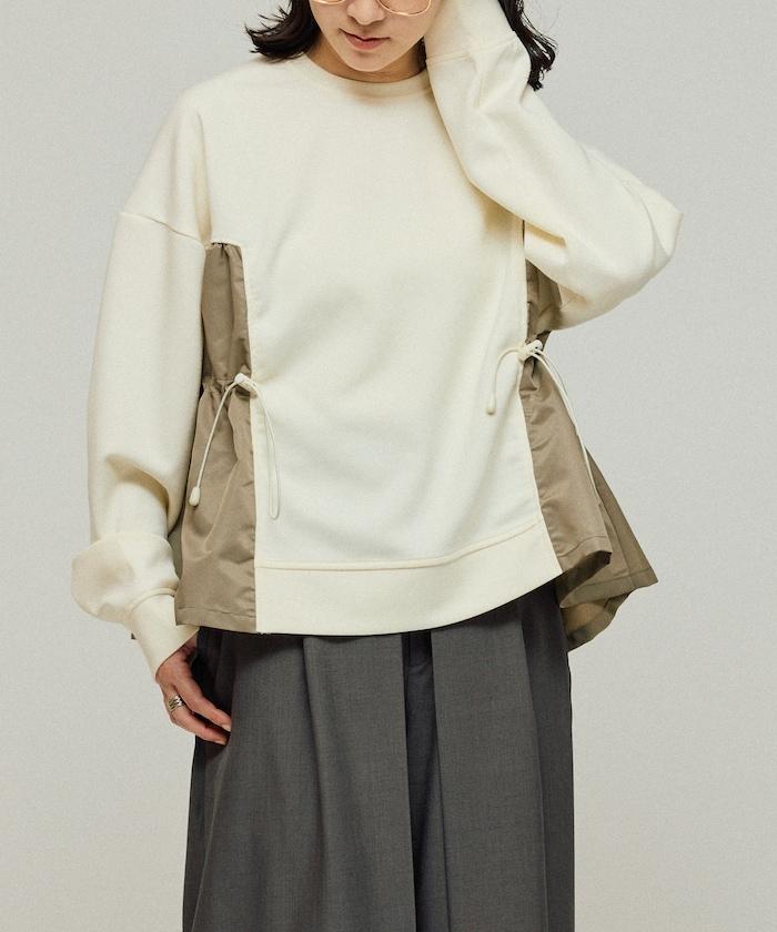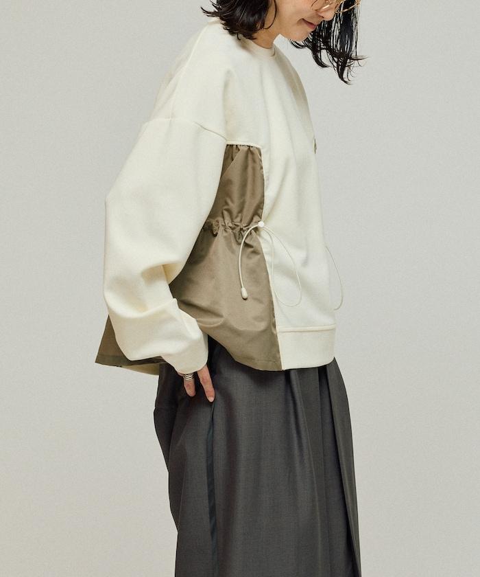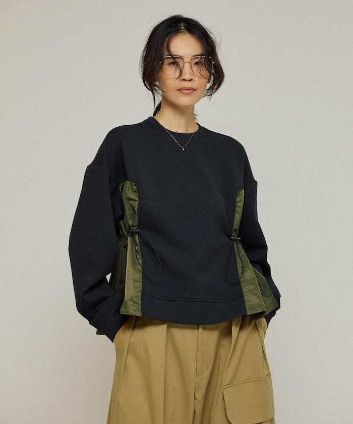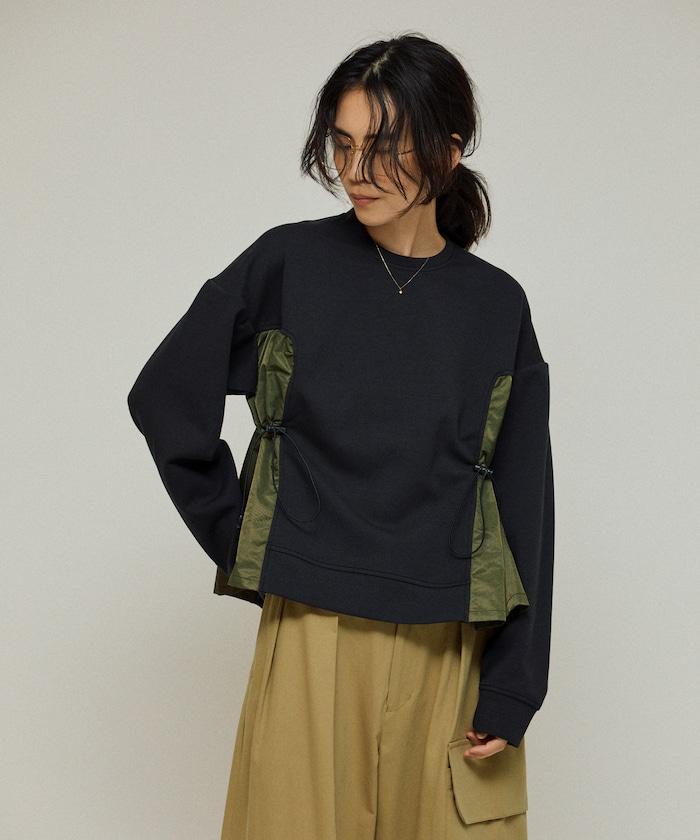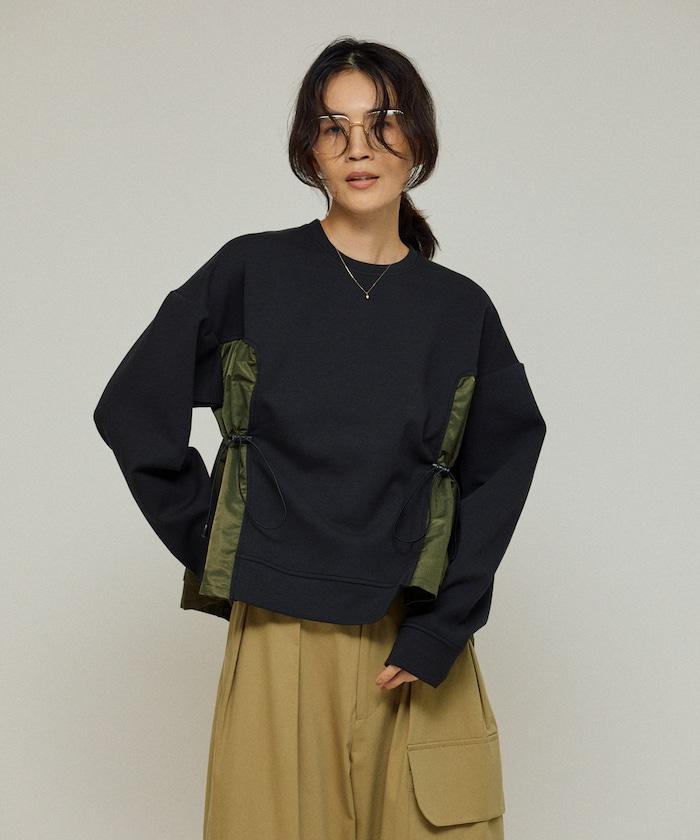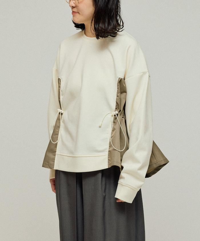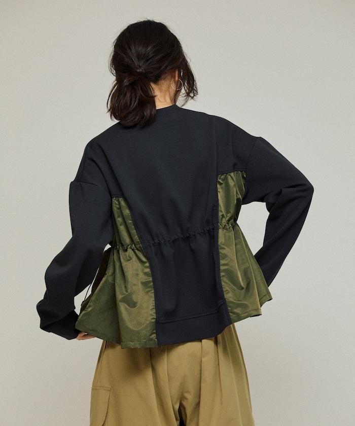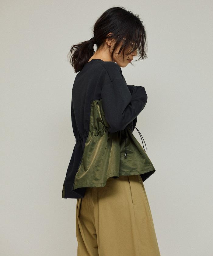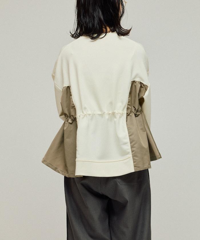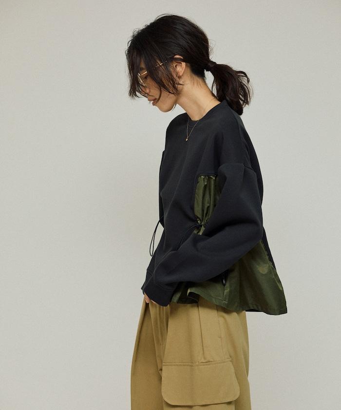拼接抽褶衛衣 / 異材質拼接帶抽繩上衣