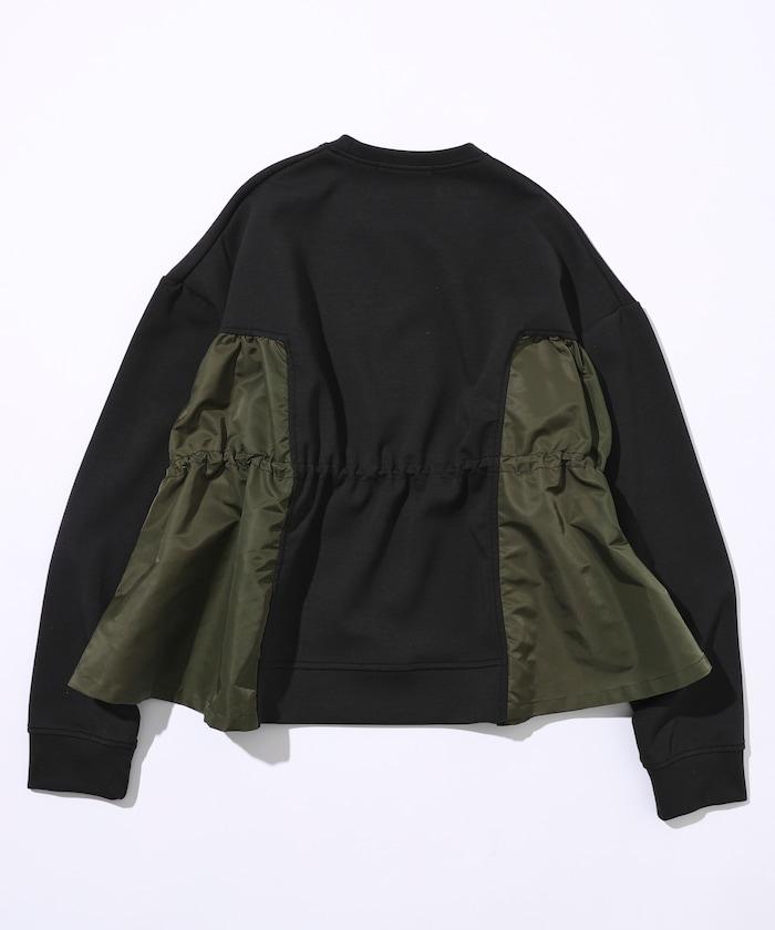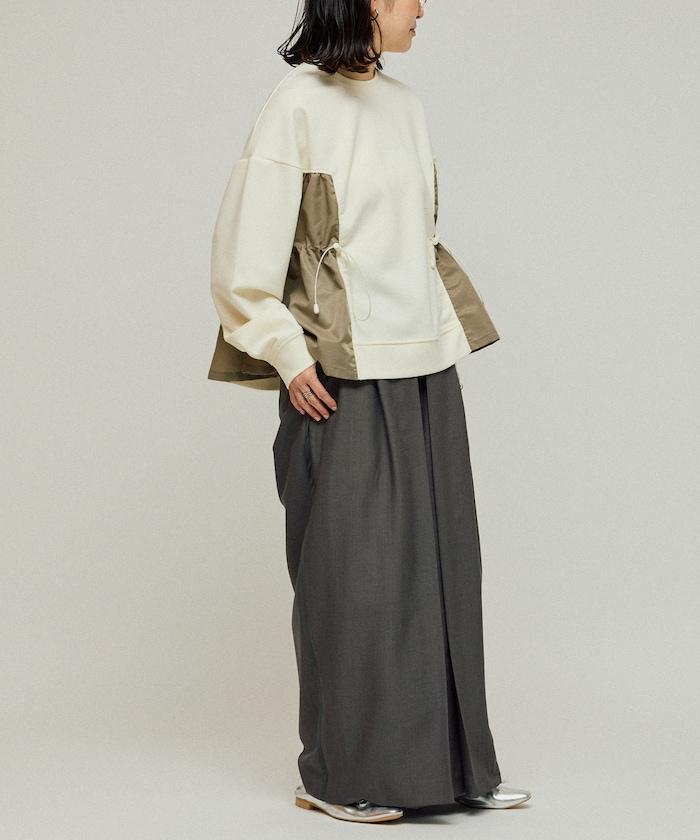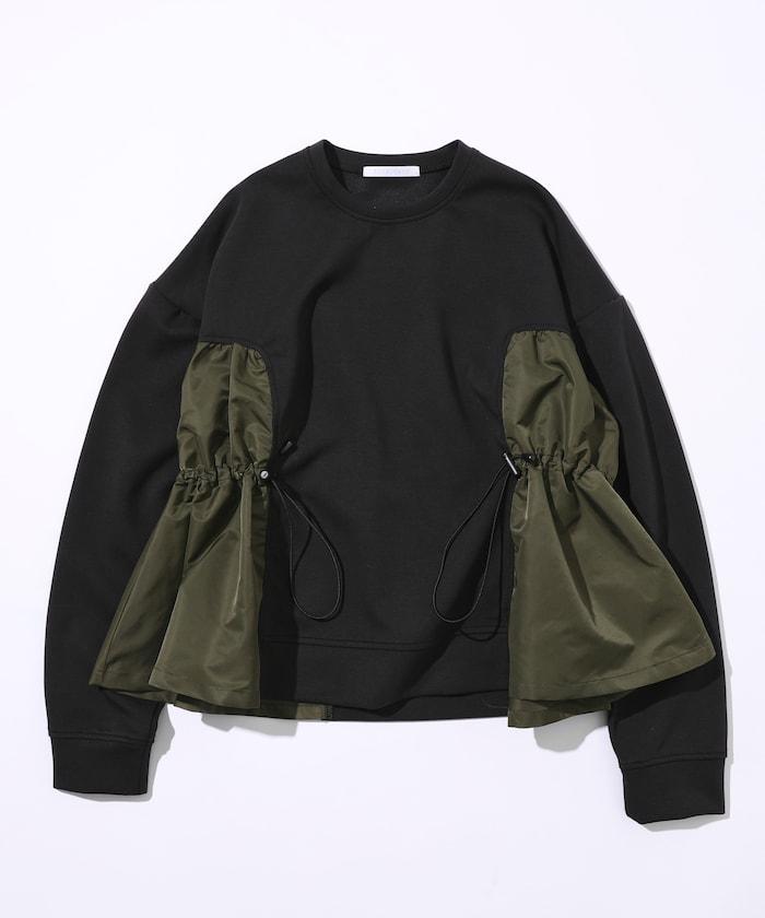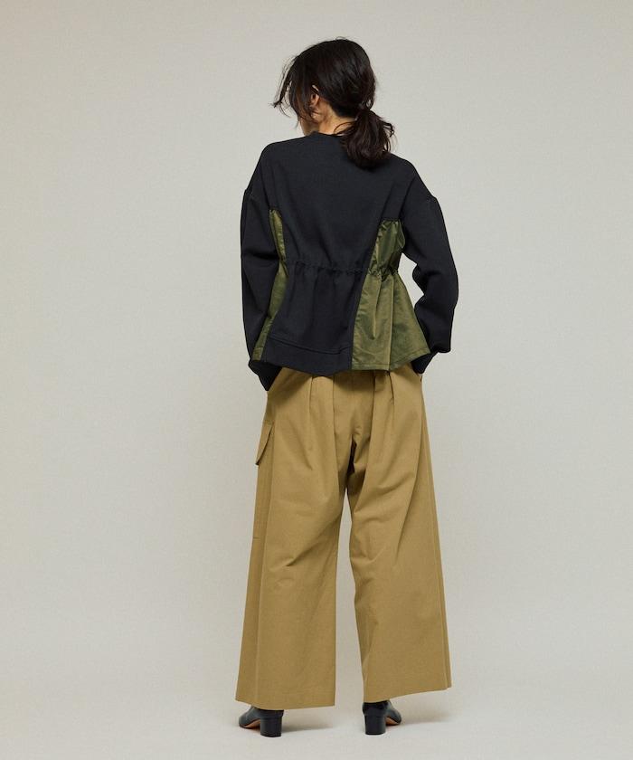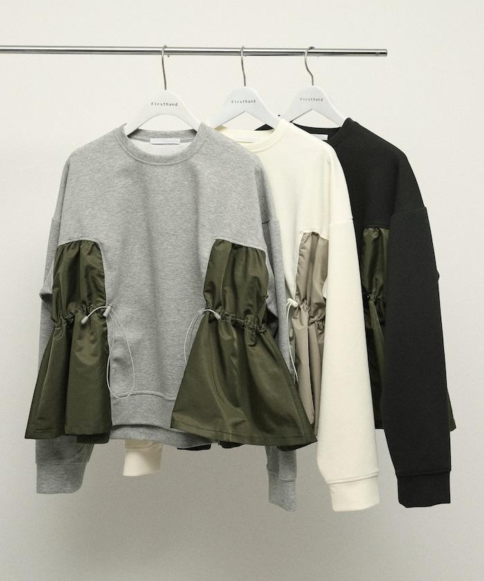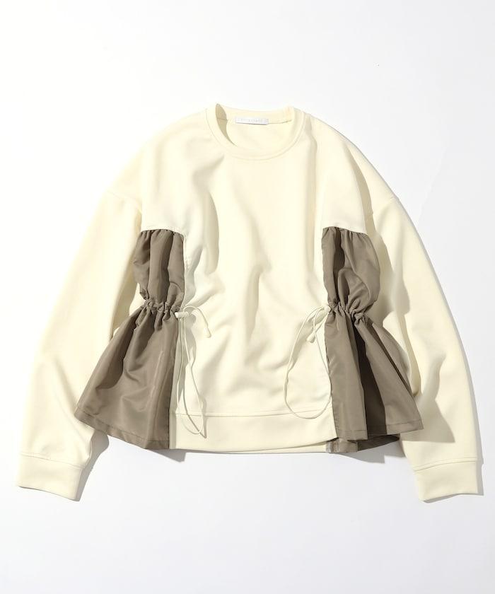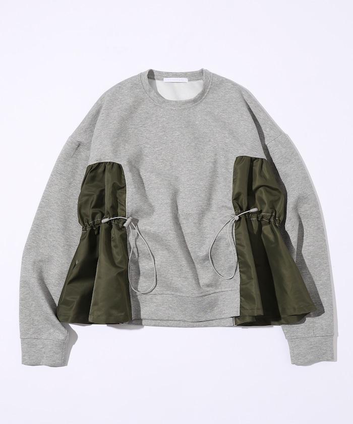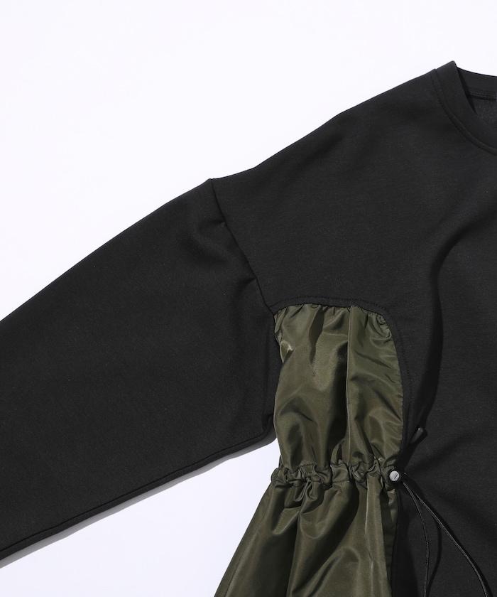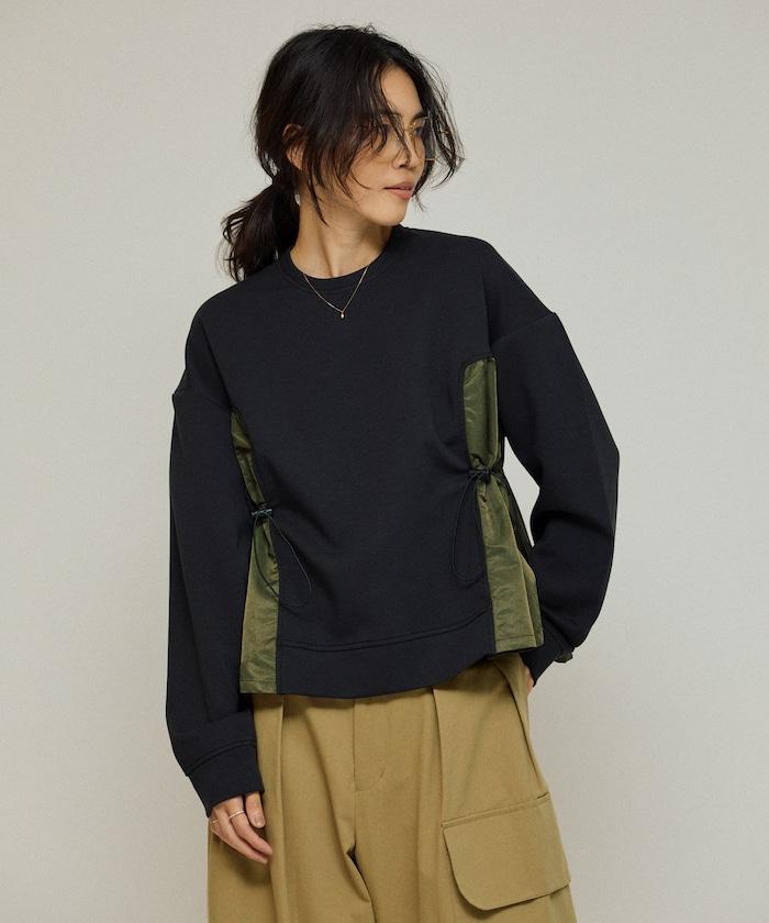 拼接抽褶衛衣 / 異材質拼接帶抽繩上衣