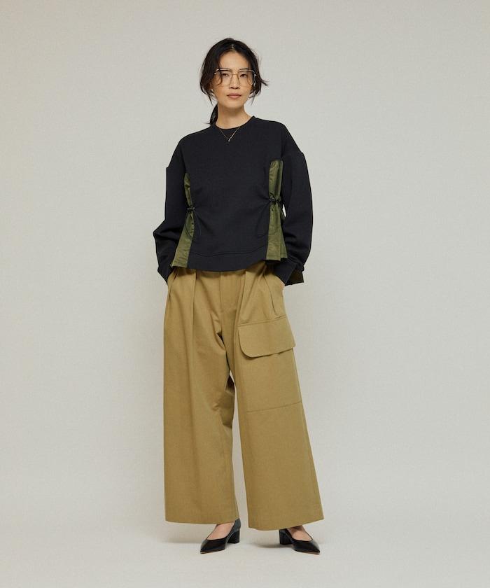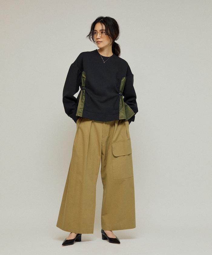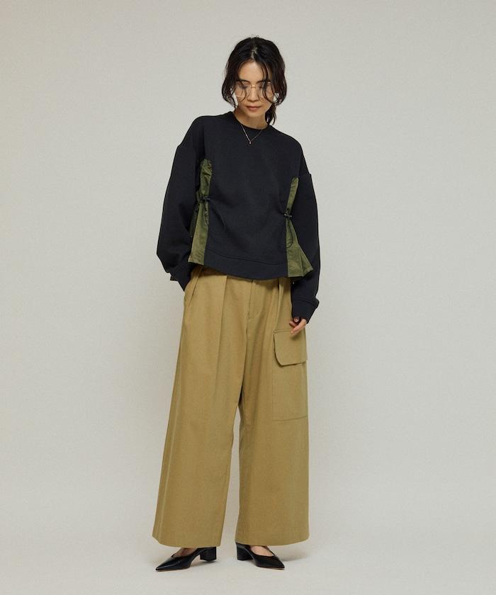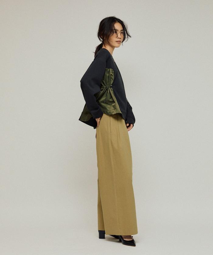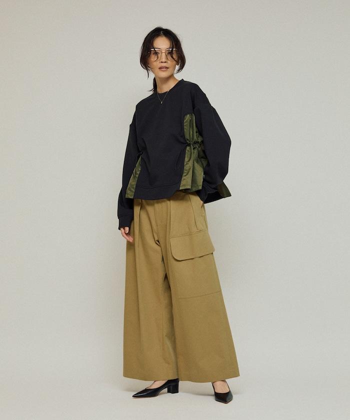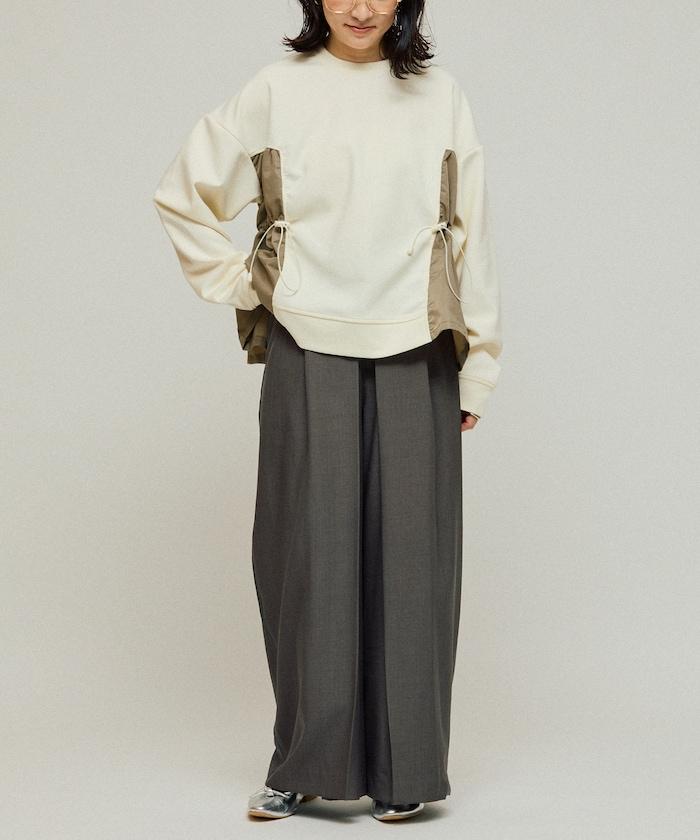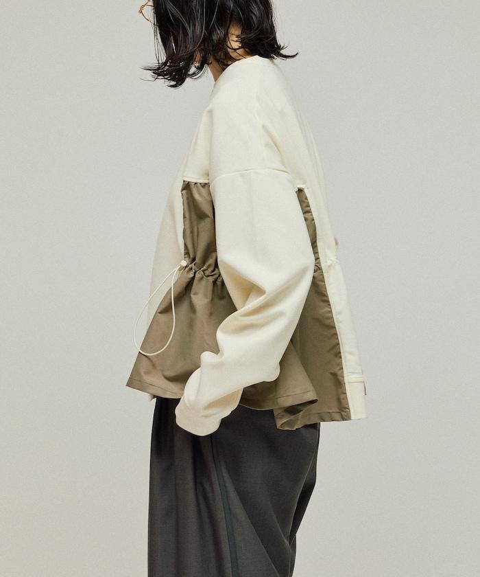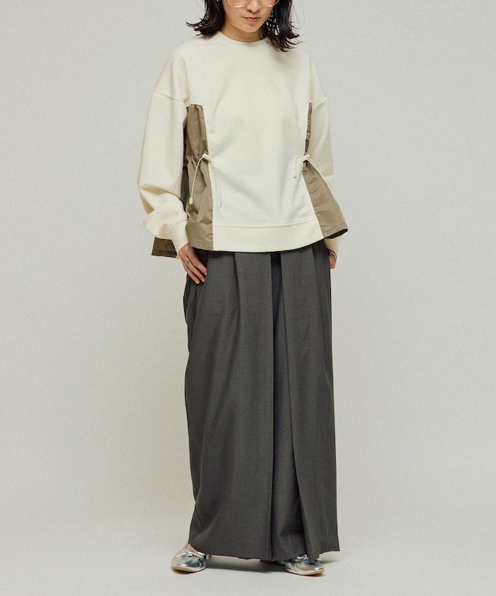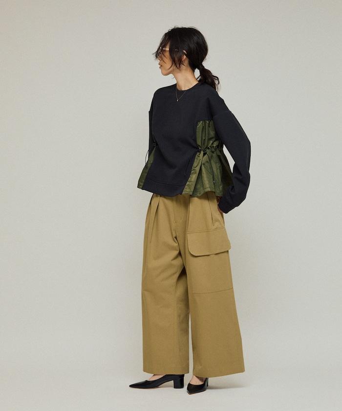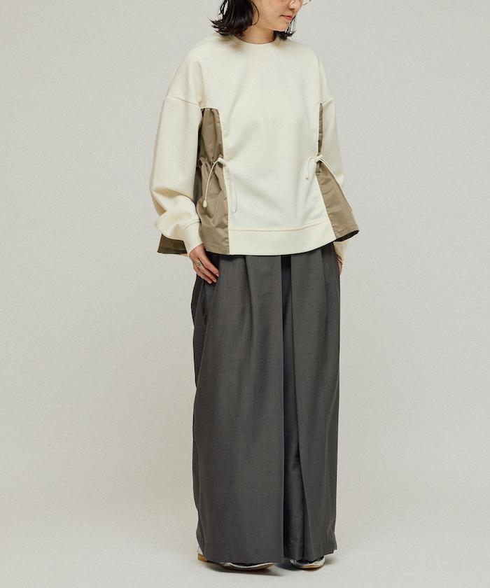 拼接抽褶衛衣 / 異材質拼接帶抽繩上衣