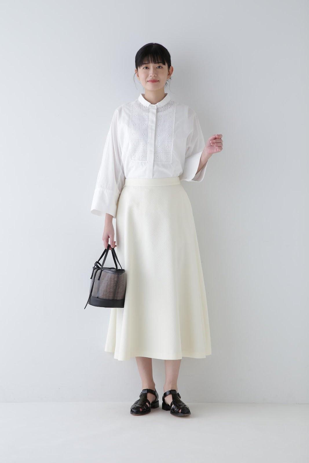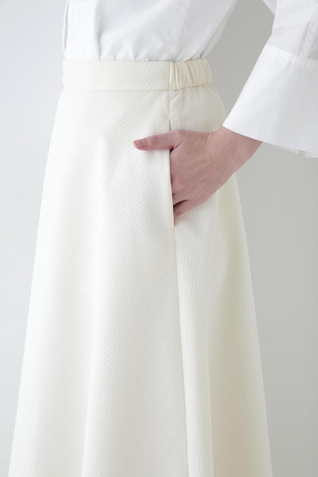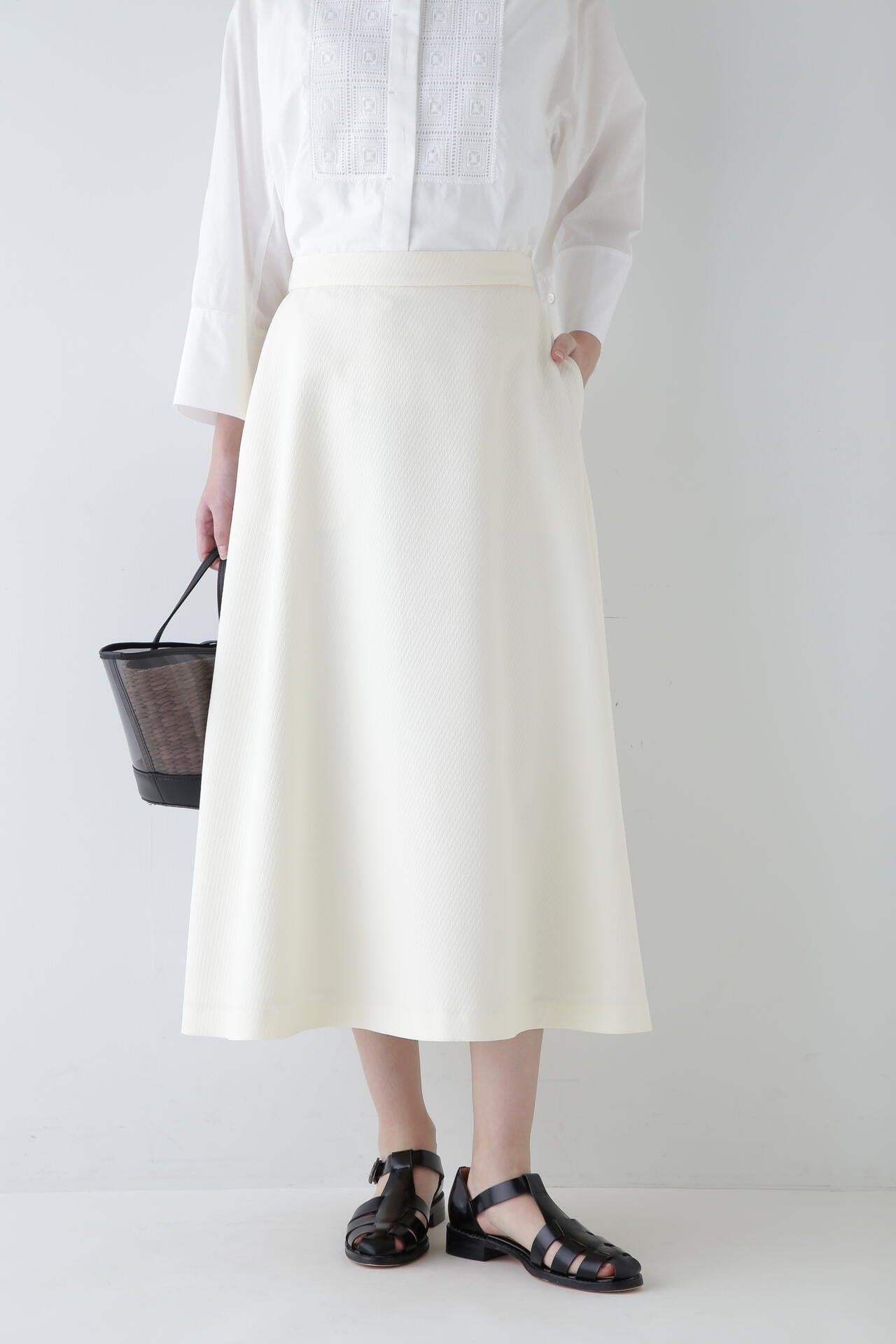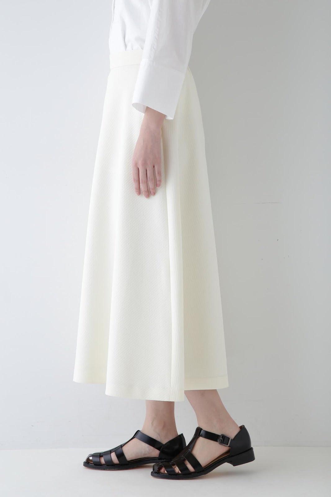 適合任何場合穿著的絎縫喇叭裙 [設計要點] 裙襬呈 A 字形,長度為擬態,採用素雅的提花面料製成。裙子採用 A 字形剪裁,由素雅的提花面料製成。面料精緻,適合各種上班或下班場合穿著。這款喇叭裙可搭配襯衫打造經典造型,也可搭配針織衫或 T 恤打造休閒造型。