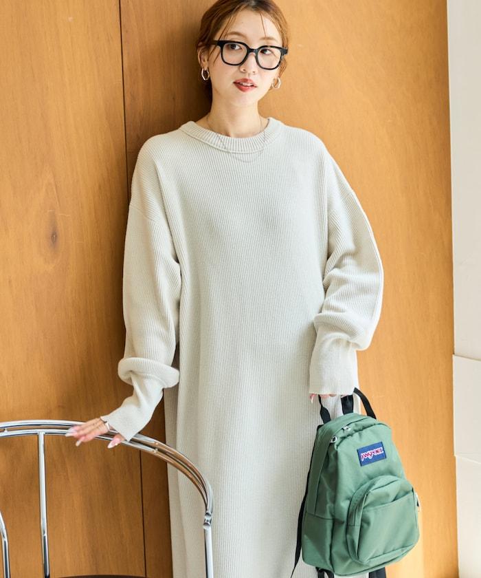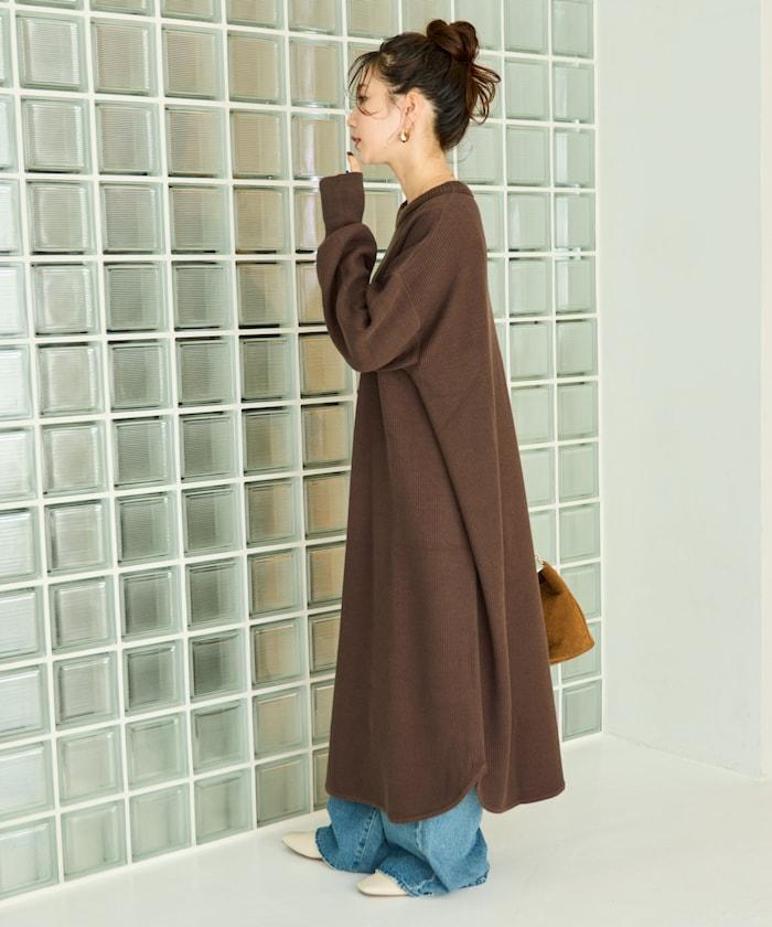 棉質圓領針織連衣裙,單面針織,粗獷而富有表現力。