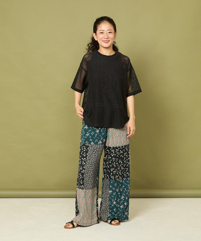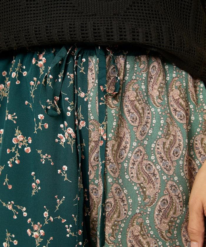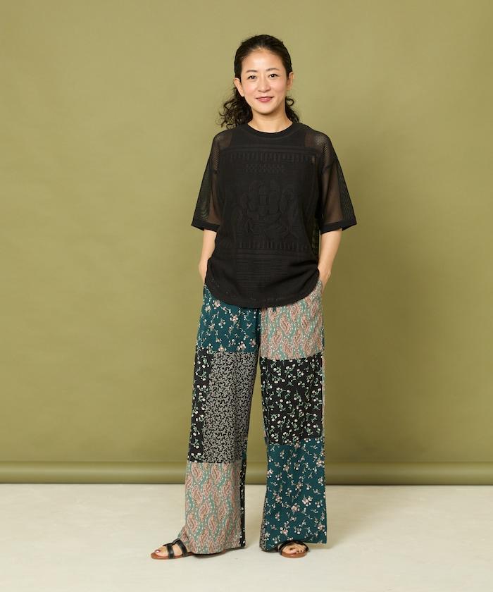 拼接長褲,四種圖案和諧搭配,令人心動不已。