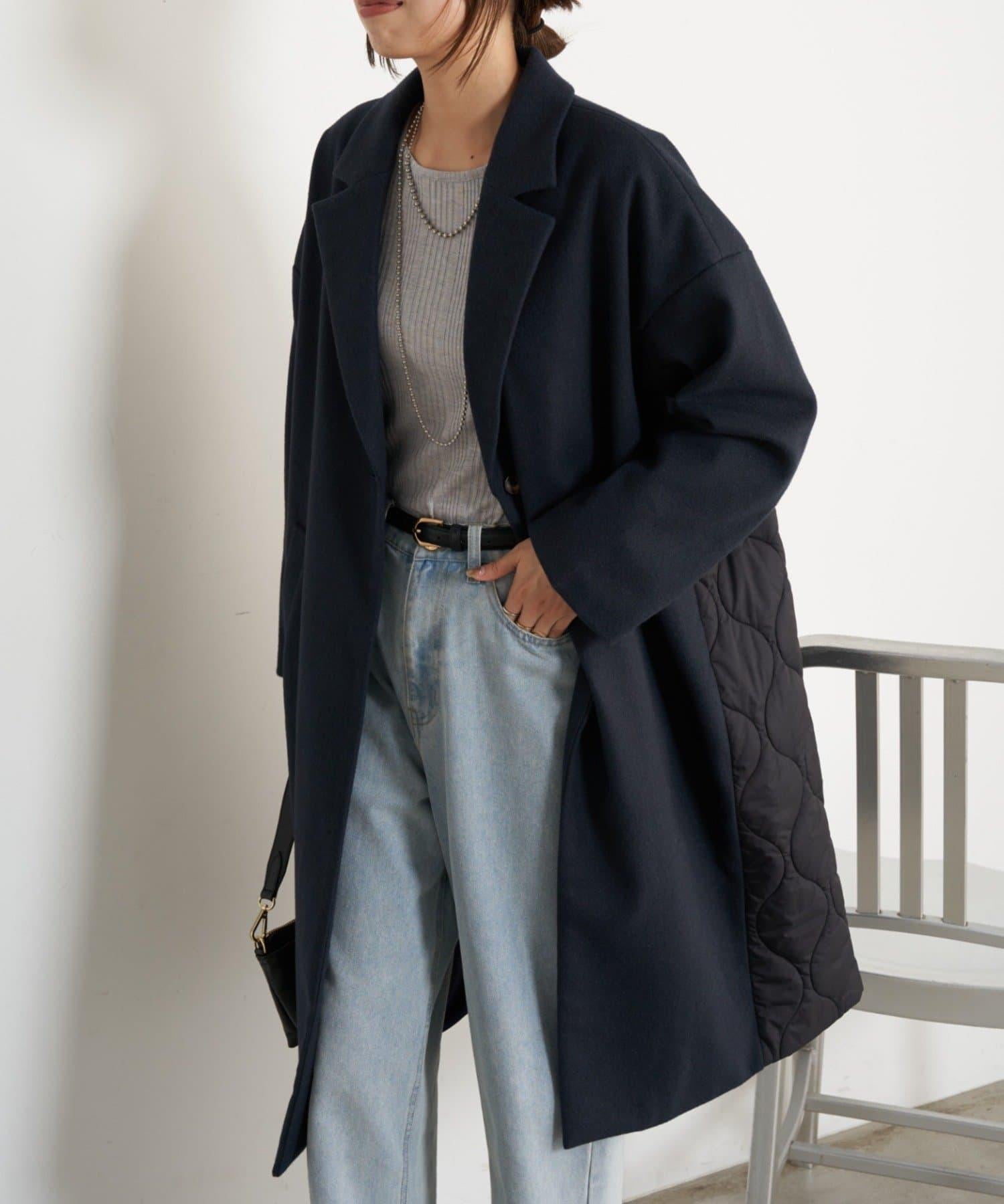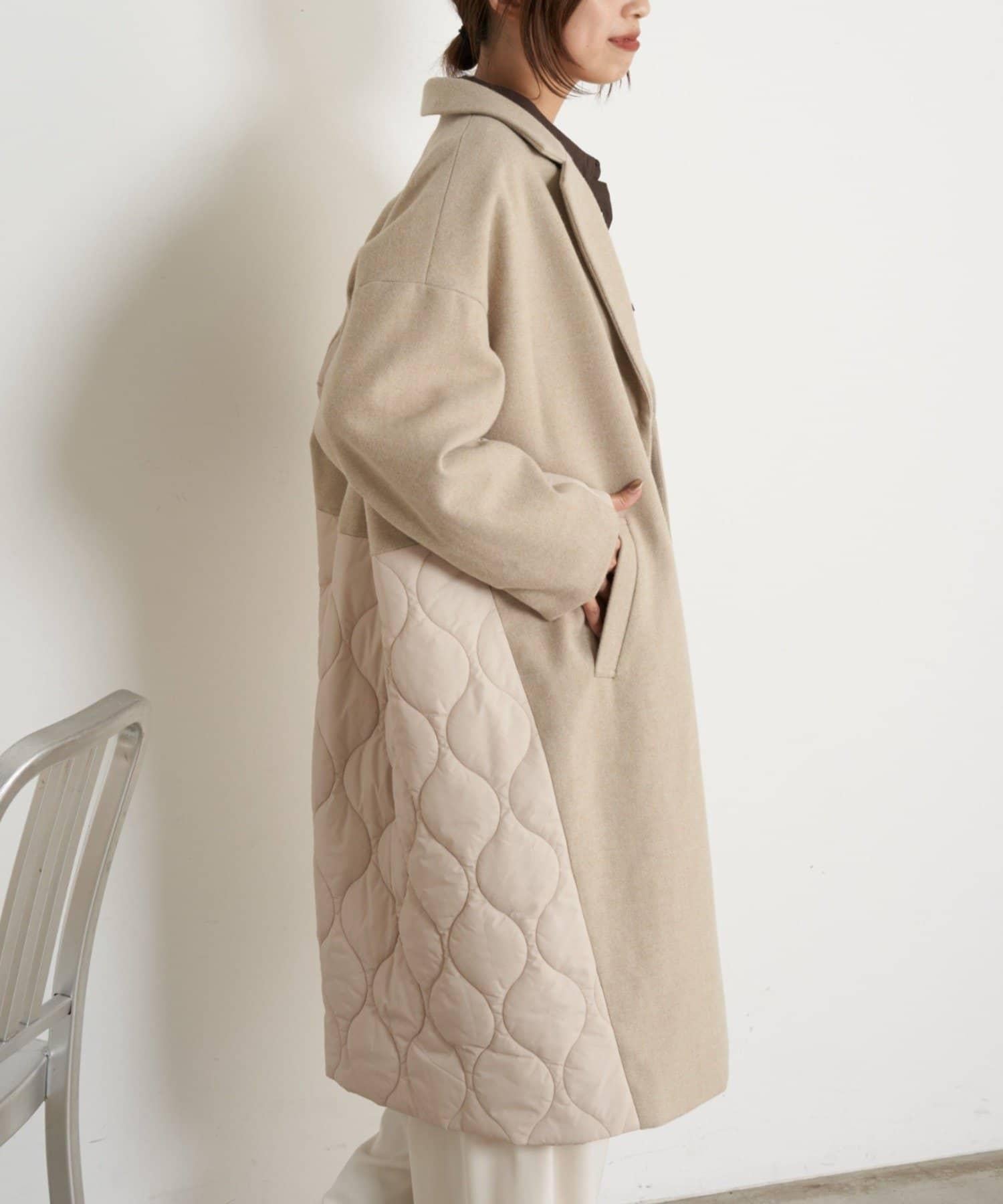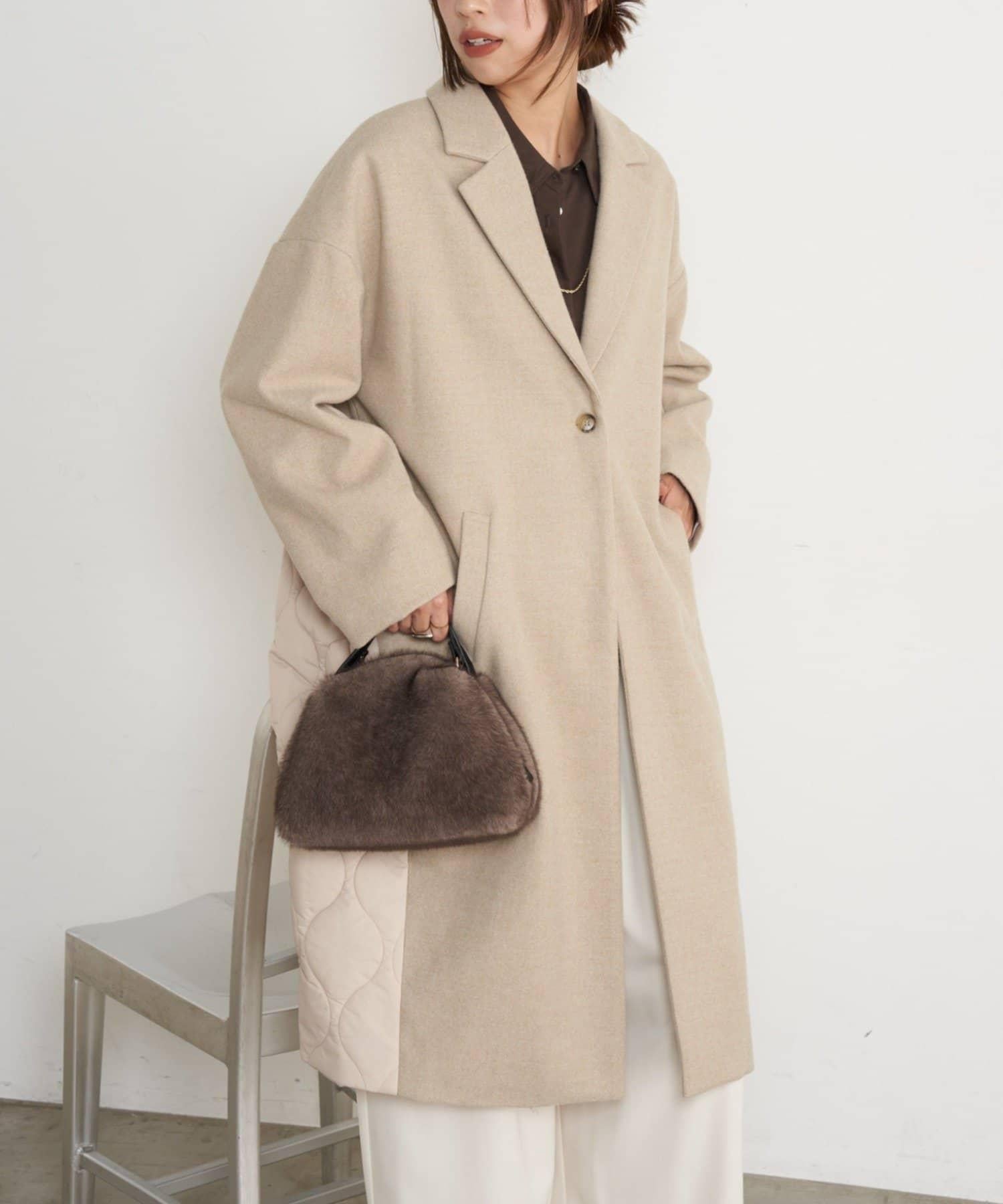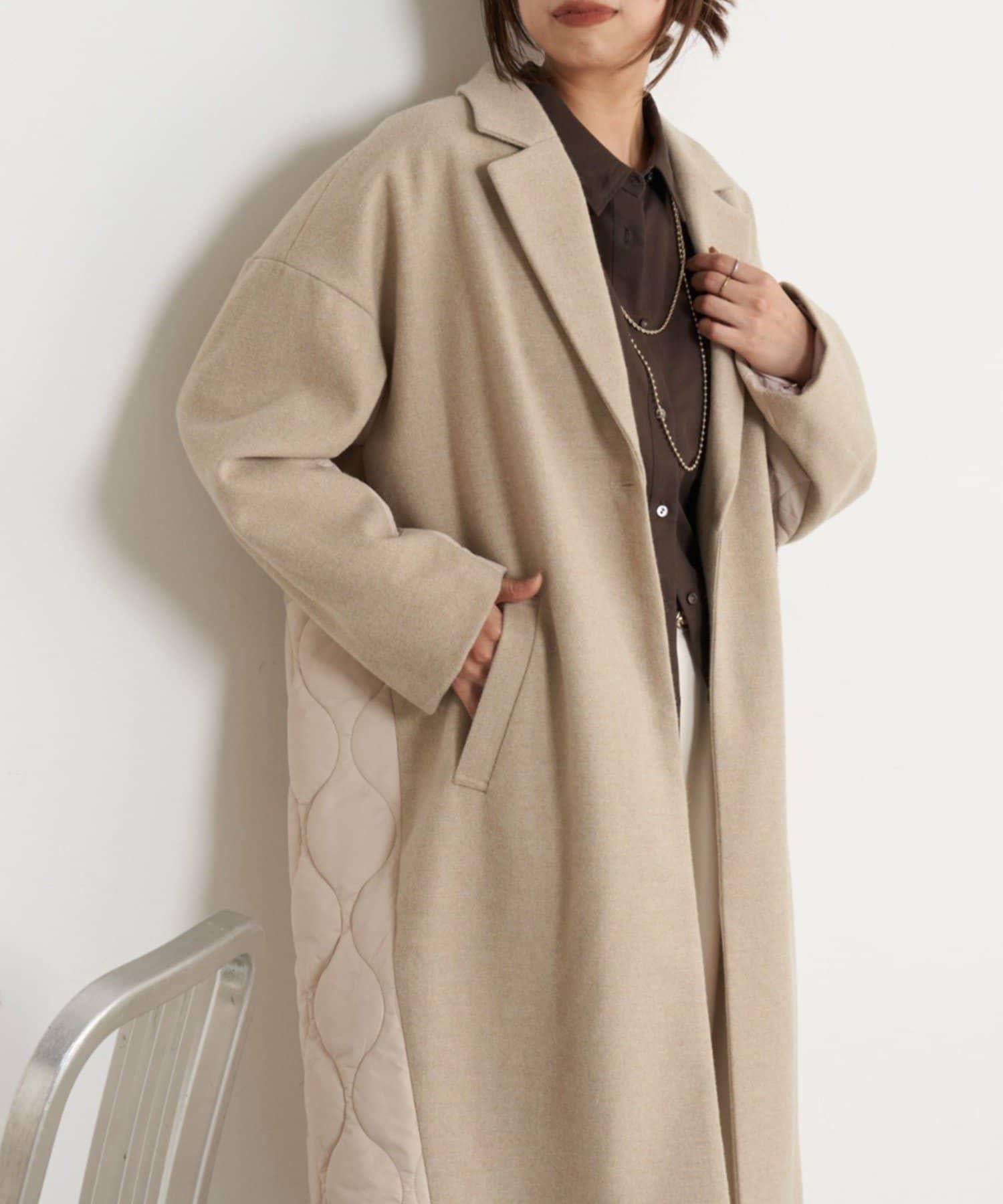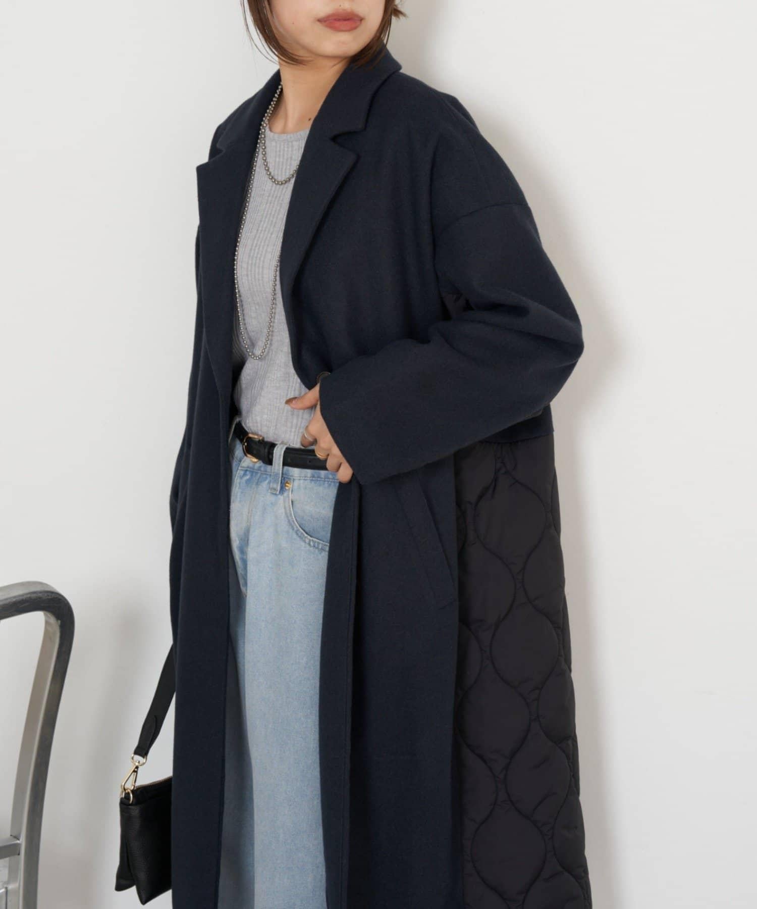 拼接絎縫長款大衣