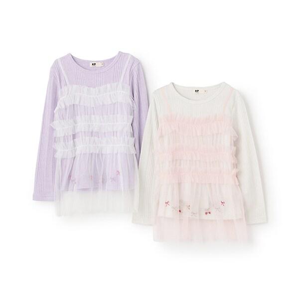 薄紗下襬飾有絲帶和草莓圖案。薄紗下襬飾有絲帶和草莓圖案。