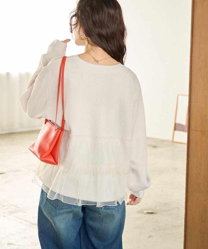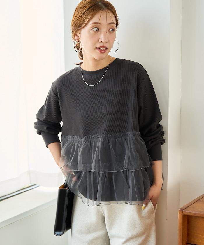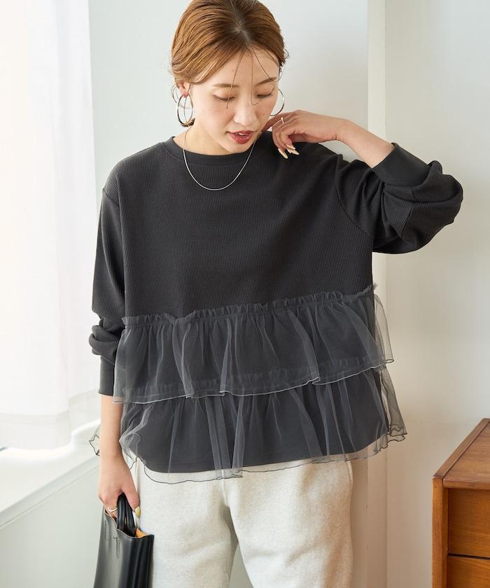 這是一款成人休閒上衣,華夫格面料的質樸外觀與薄紗對接,為這款上衣增添了一絲魅力。