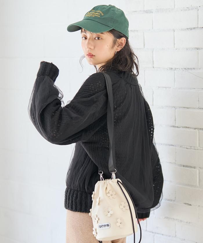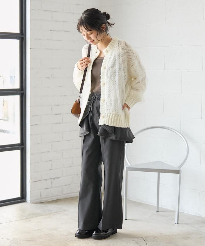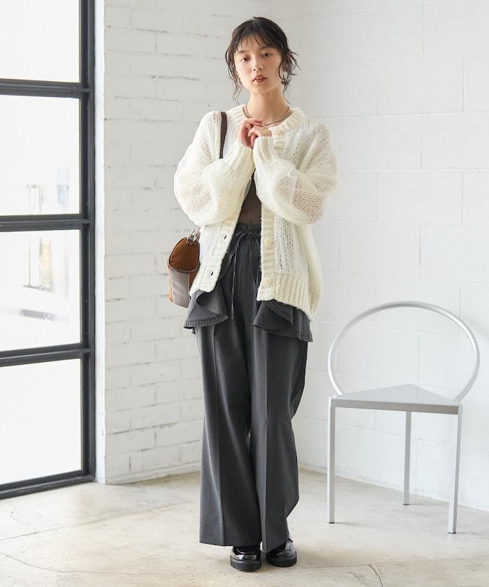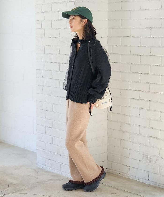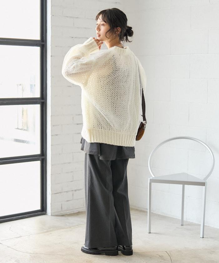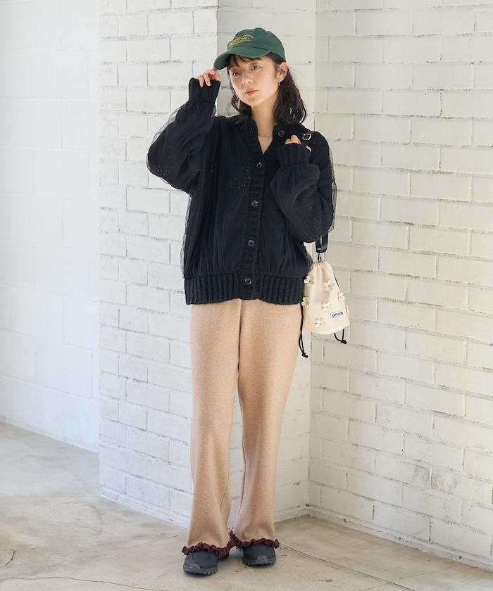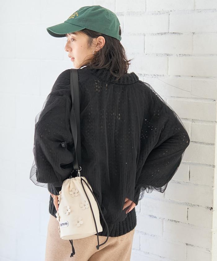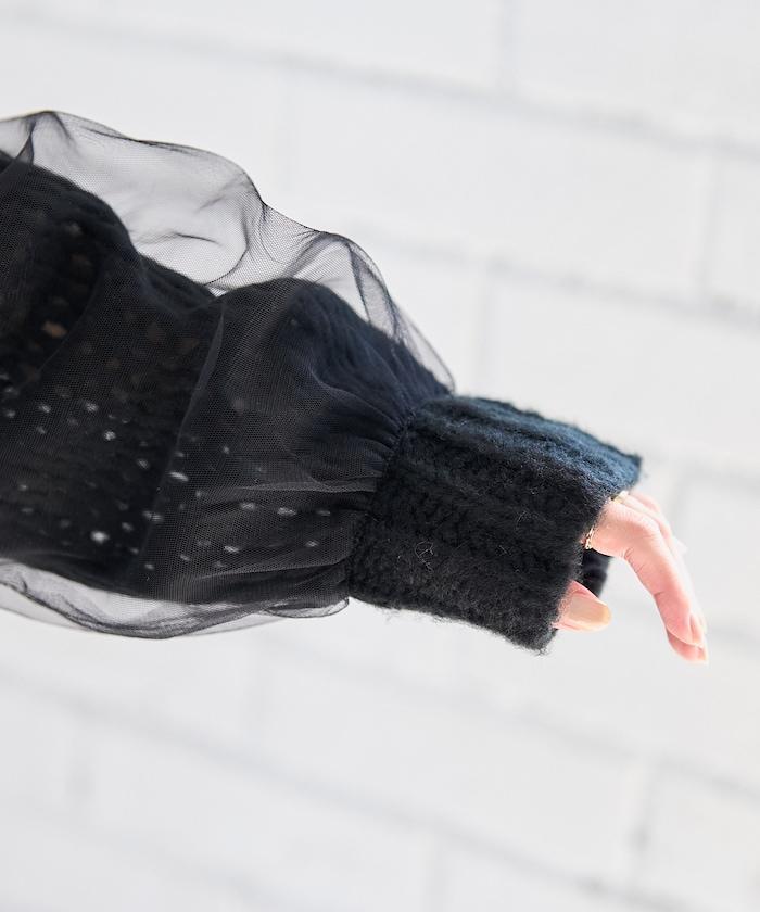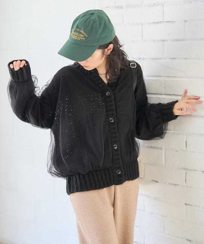 低針距針織和透明薄紗對接的開衫。