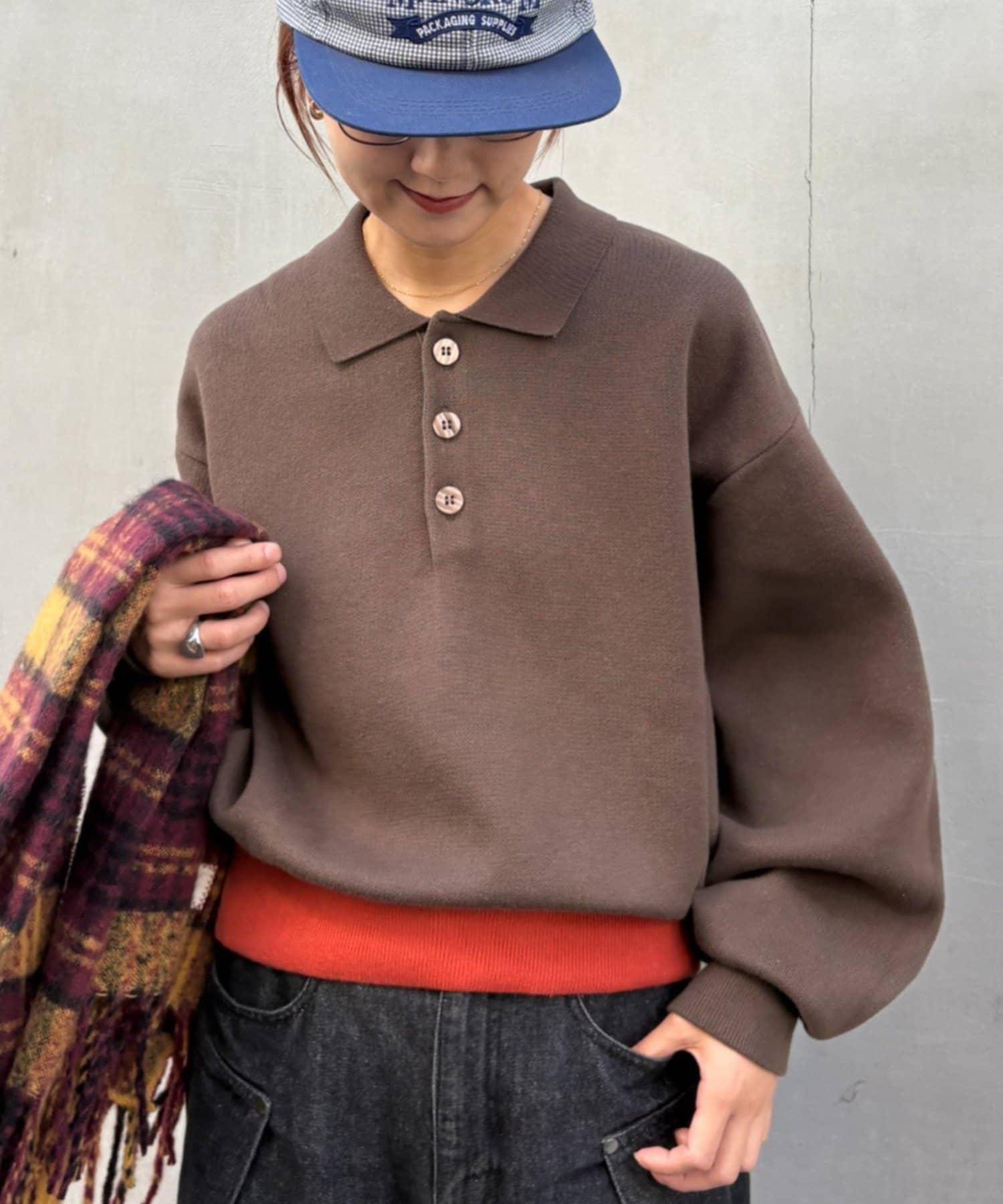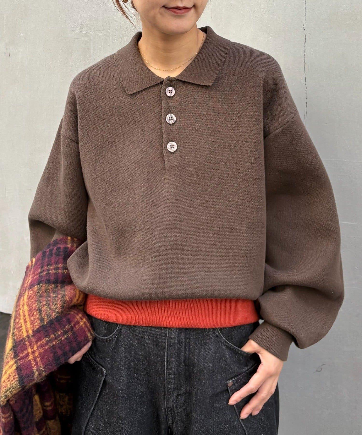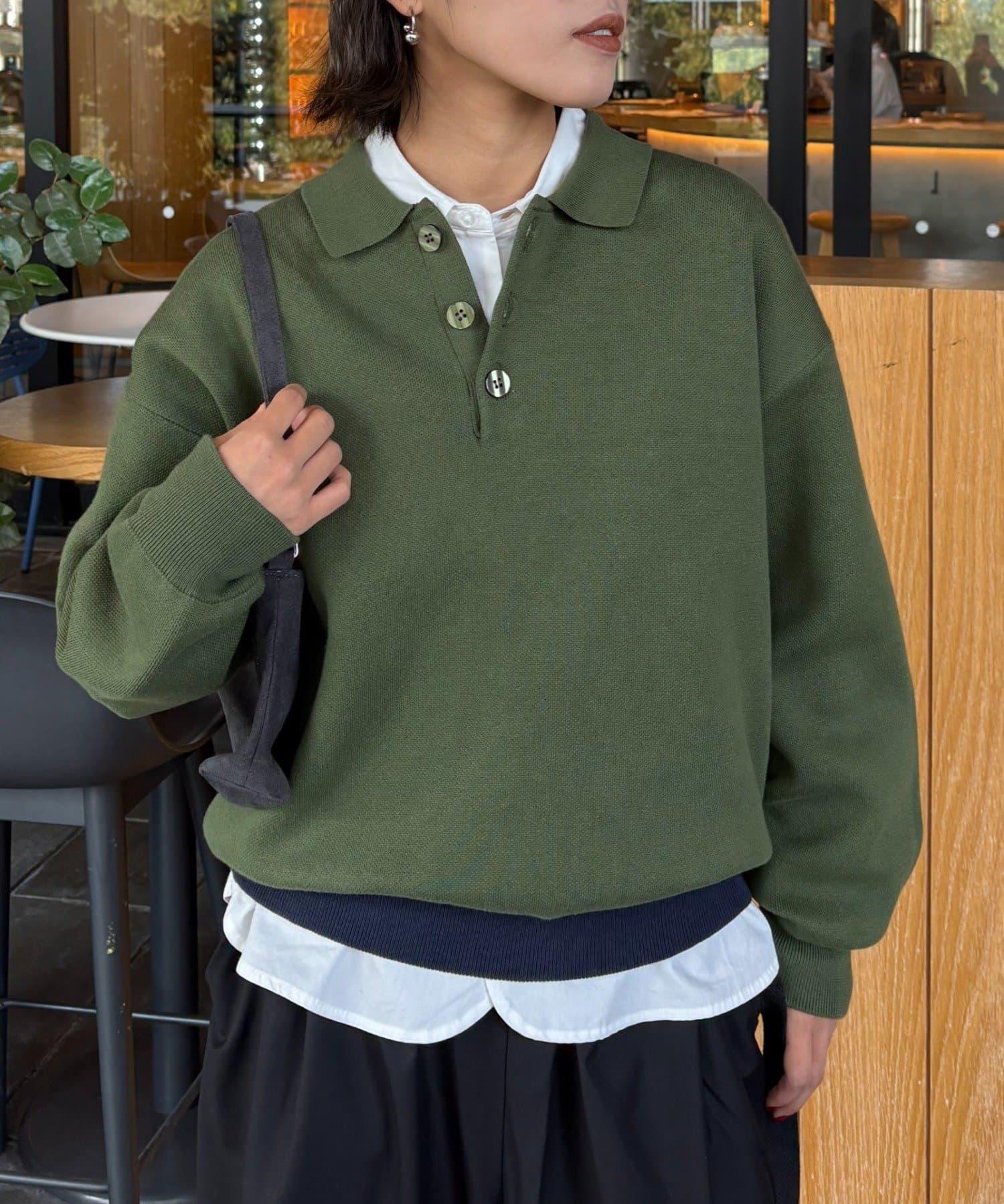 這款糯米色針織 polo 採用羅紋下襬配色方案,與周圍的